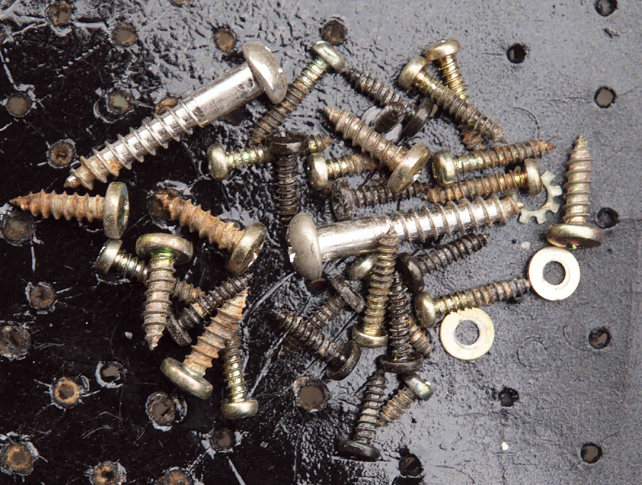 | W93. 修理前 各種止めネジ。 錆が出ている。 | ||||||||||||||||||||||||||||||