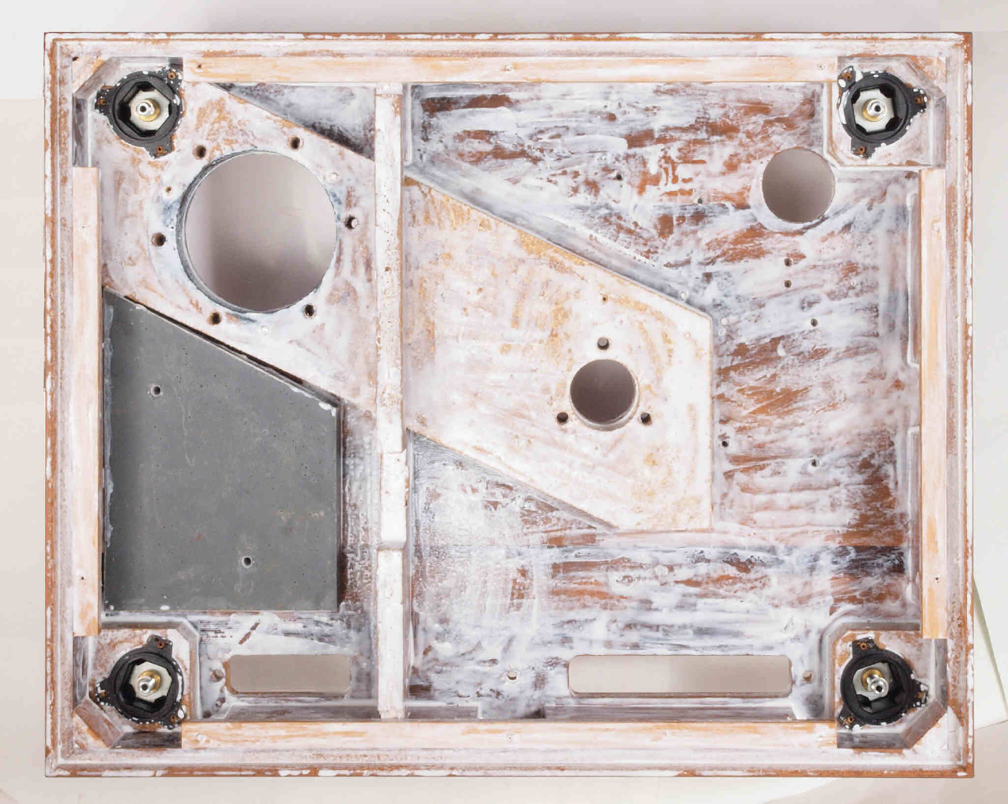 | W68. 修理中 下蓋裏後左、ボンドを染みこませる、ネジ穴も塗る。 | ||||||||||||||||||||||||||||||