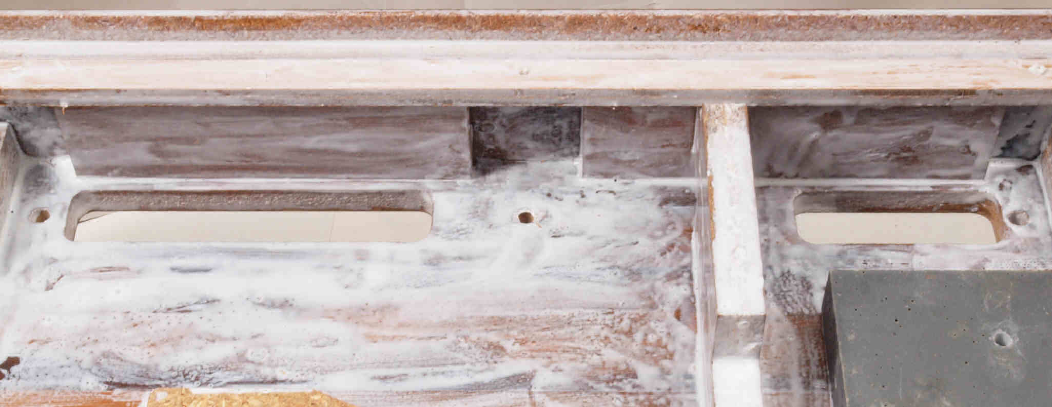| W13. 修理中 本体木枠下。 ボンドを染みこませる。 | ||||||||||||||||||||||||||||||
