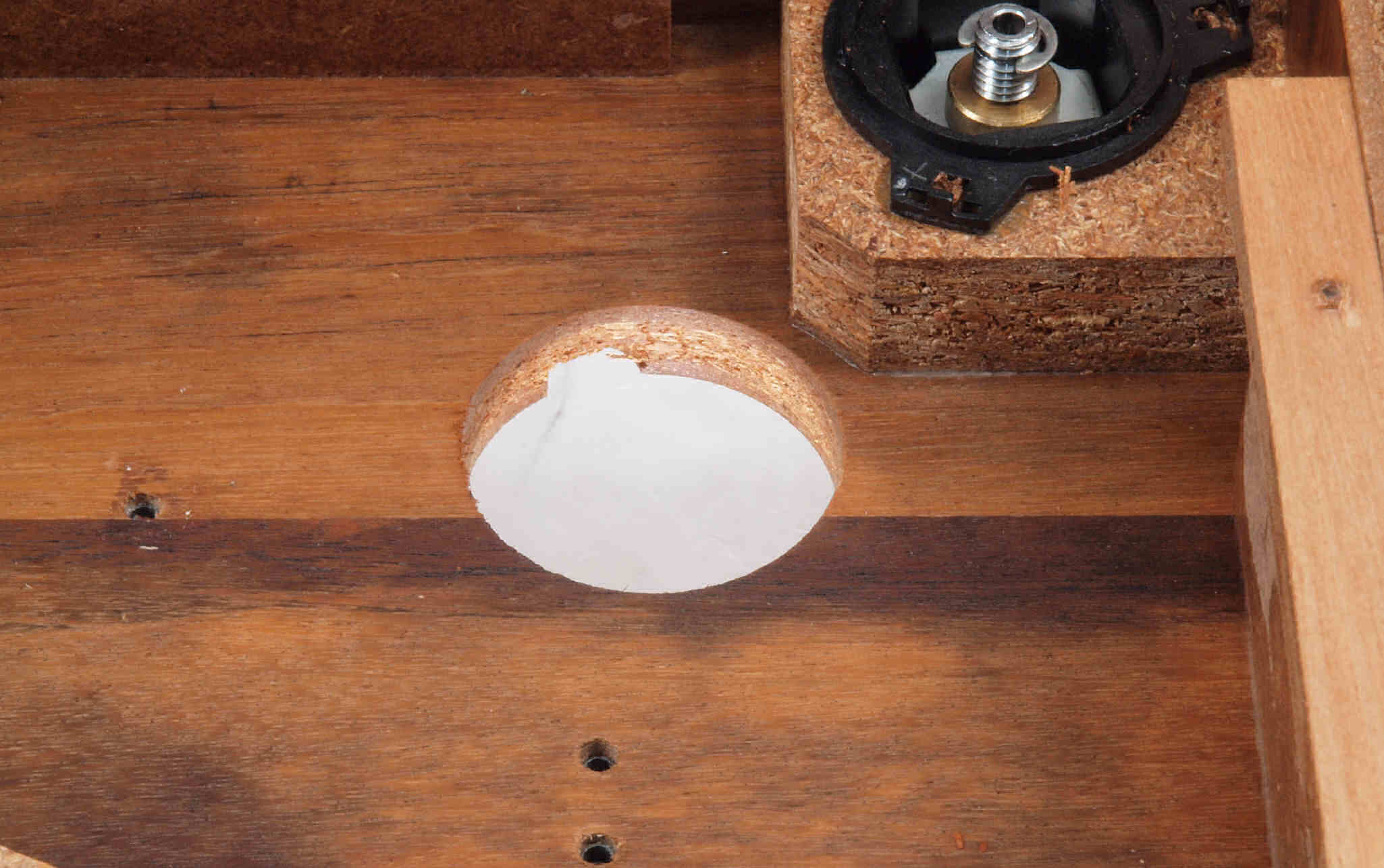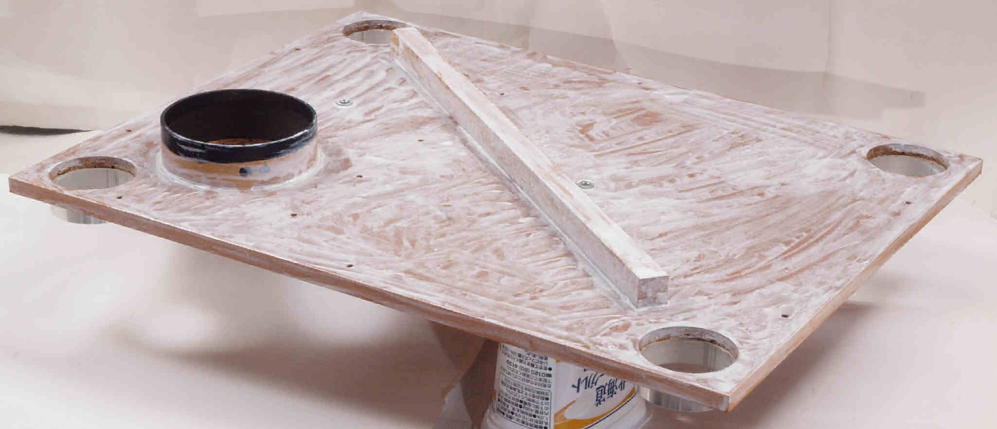 | W26. 修理後 アーム取付穴。 乾燥後さらにウレタン塗料を塗る。 | ||||||||||||||||||||||||||||||