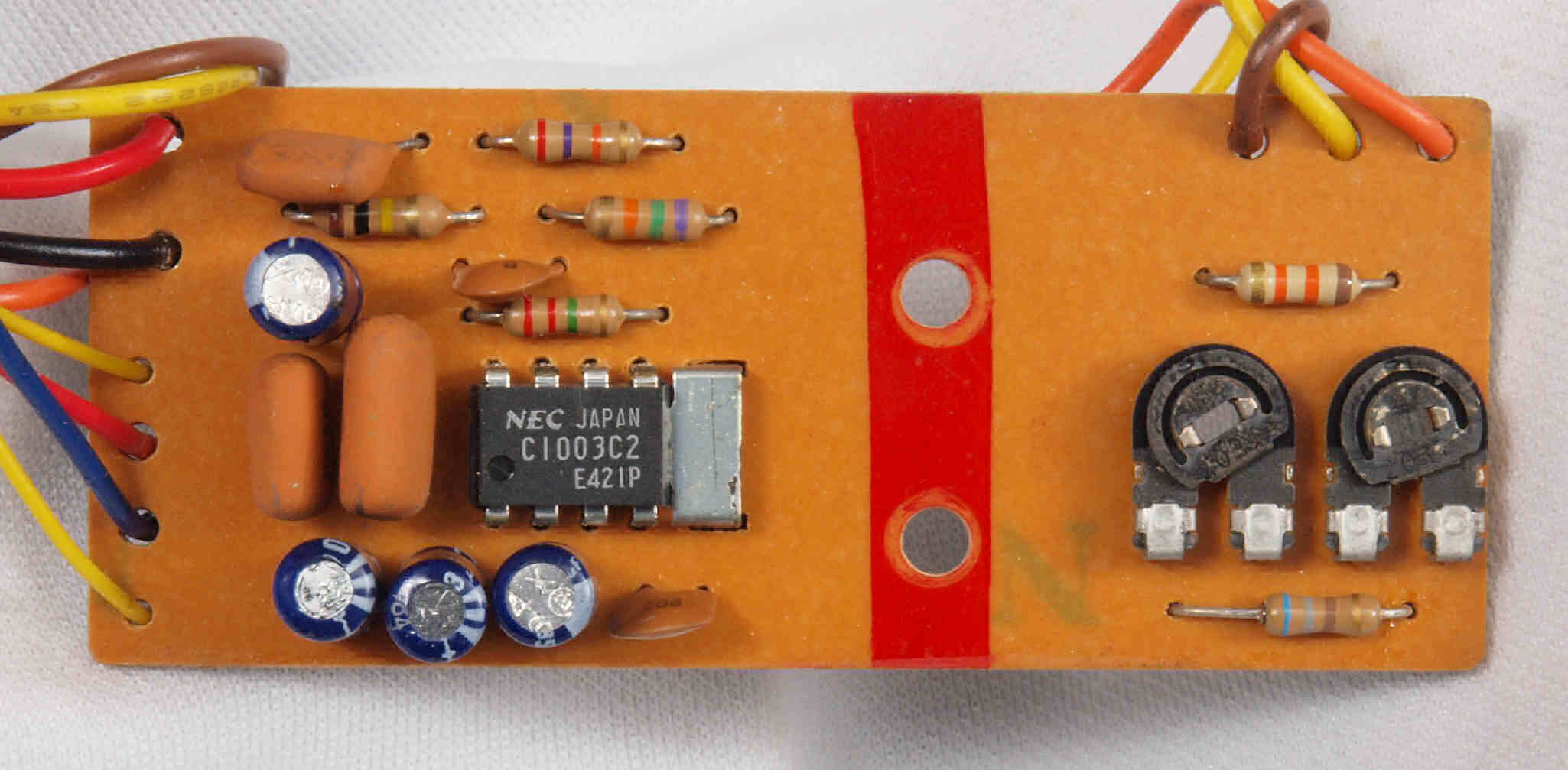 | C35. 完成ヒューズ・定電圧基板裏。 余分なフラックスを落として、コート液を塗る。 | ||||||||||||||||||||||||||||||