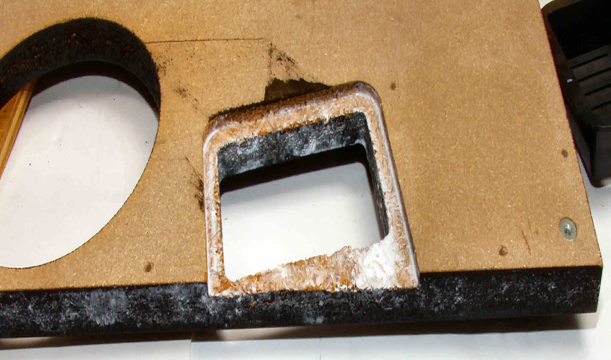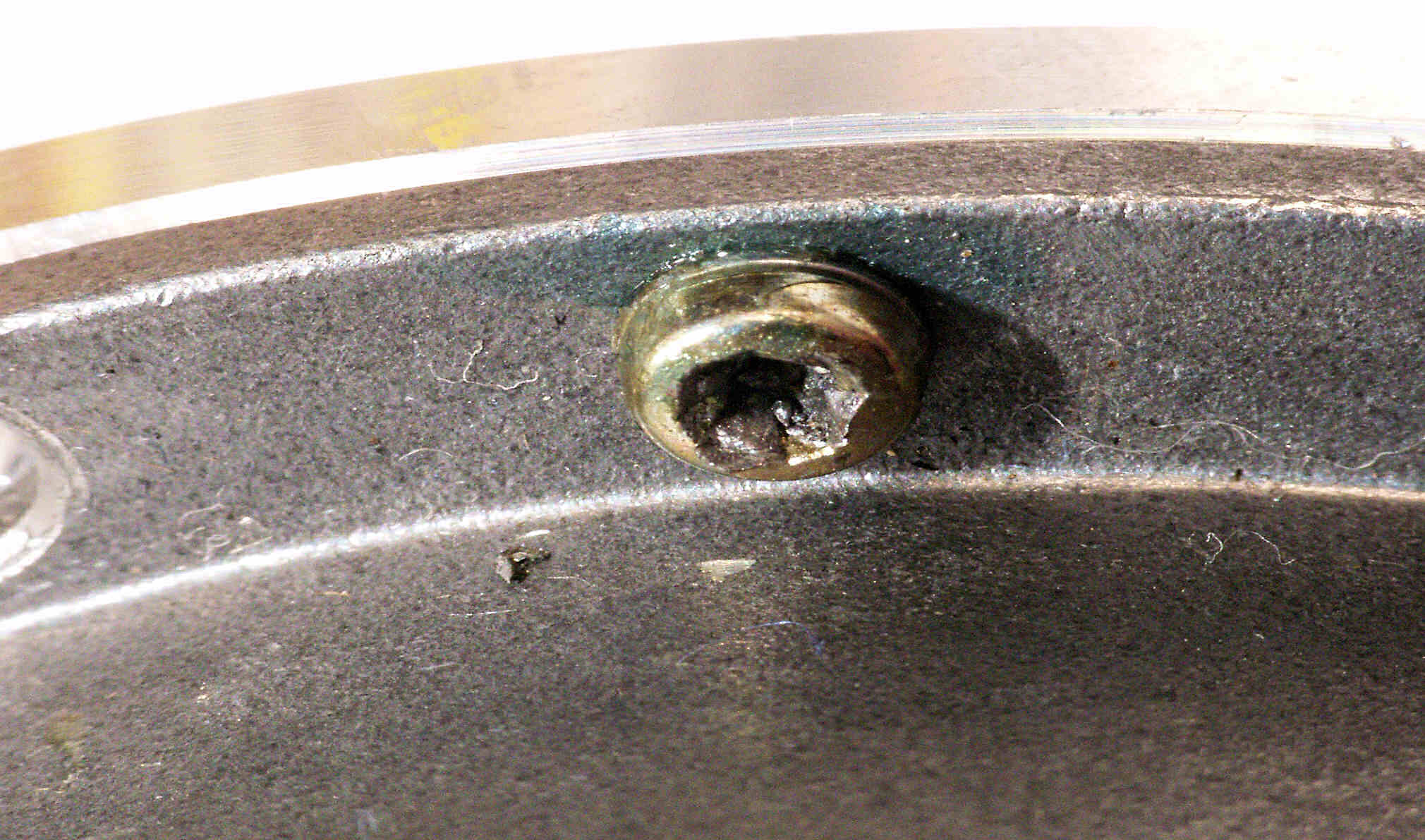 CB1. 修理前 下蓋のトランスカバー取り付け穴。
