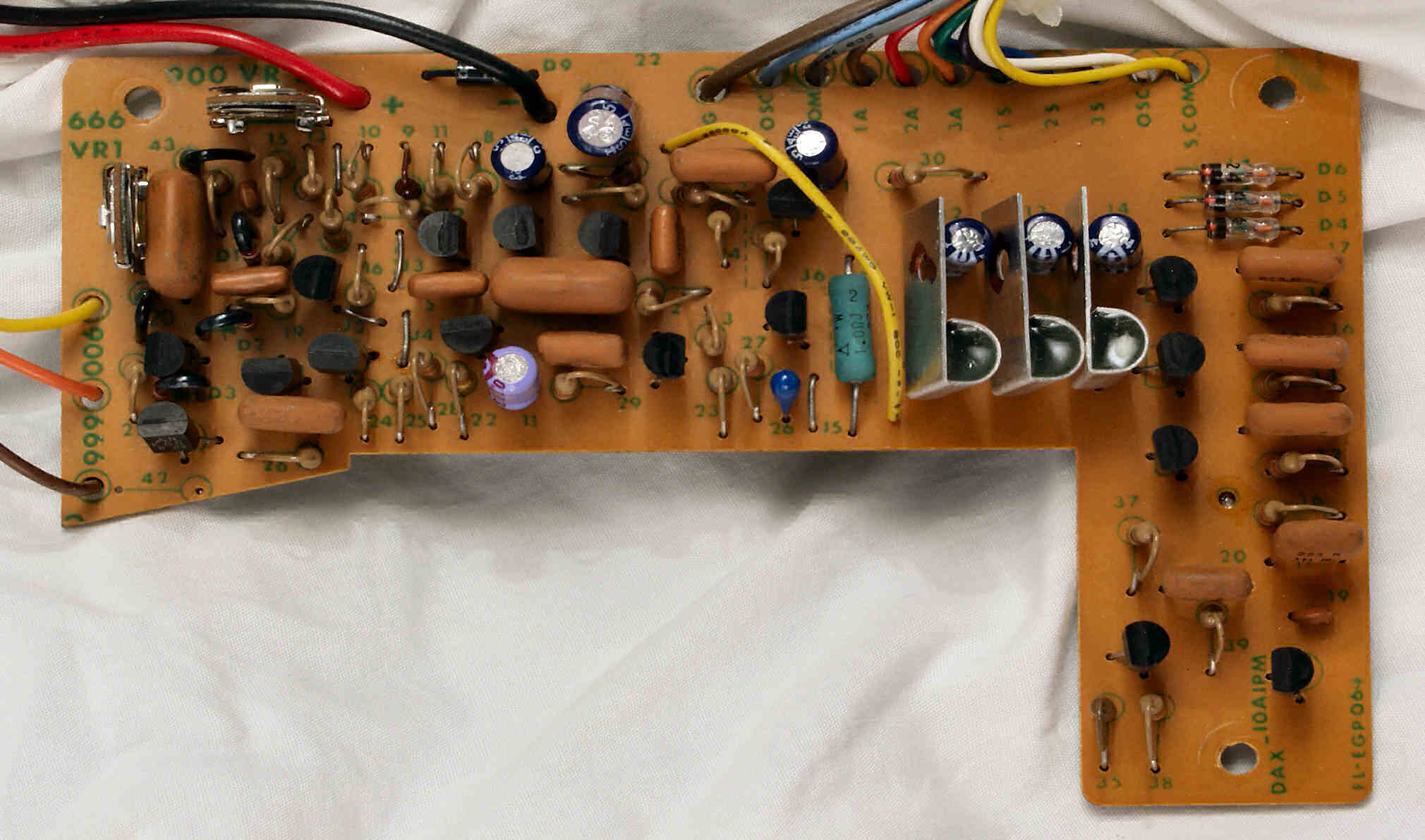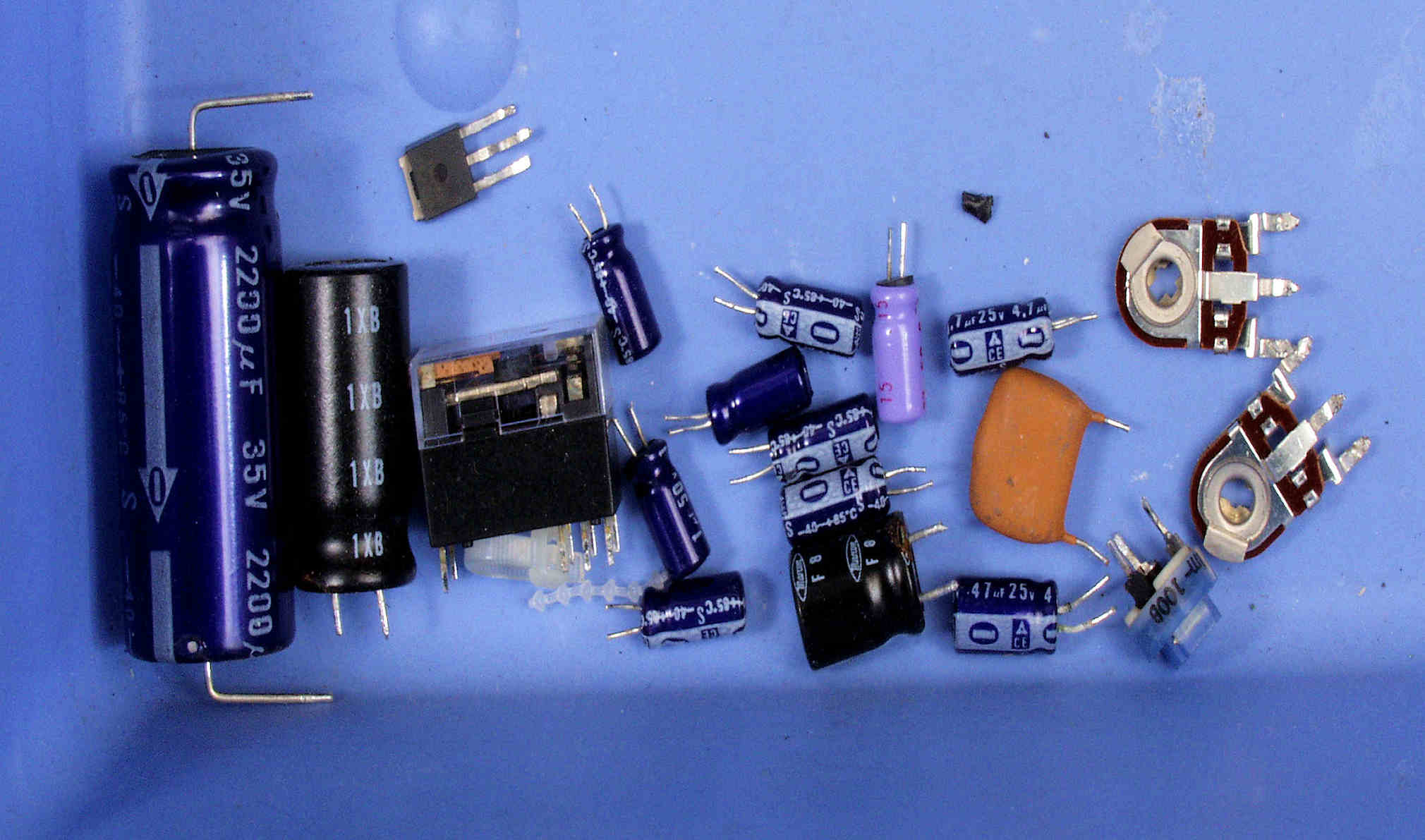 C1B. 修理後 制御基板 半固定VR2個、電解コンデンサー7個、フイルムコンデンサー1個交換