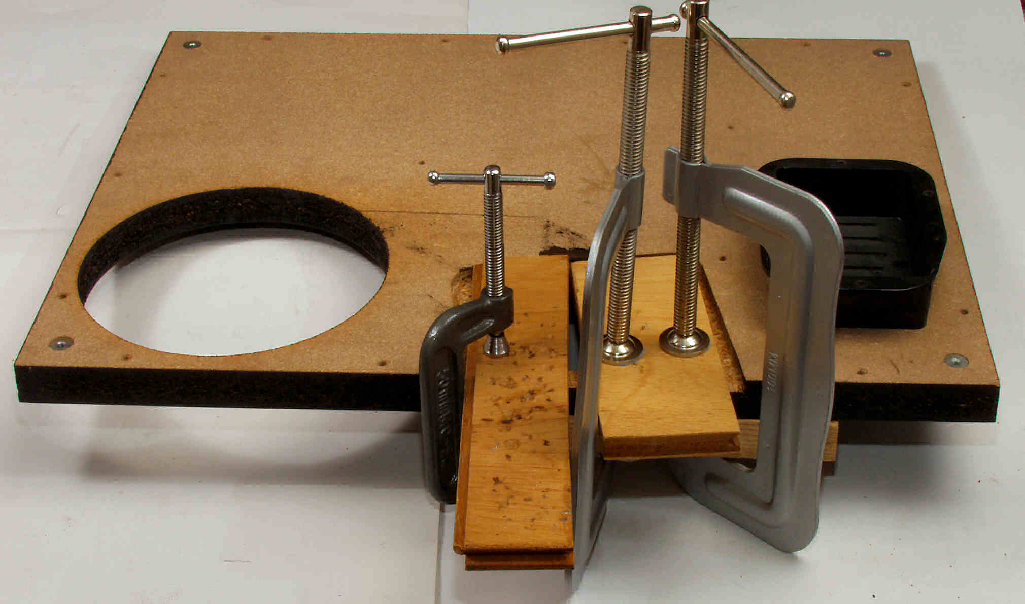 CB2. 修理中 ボンドを差し込み万力で締める。