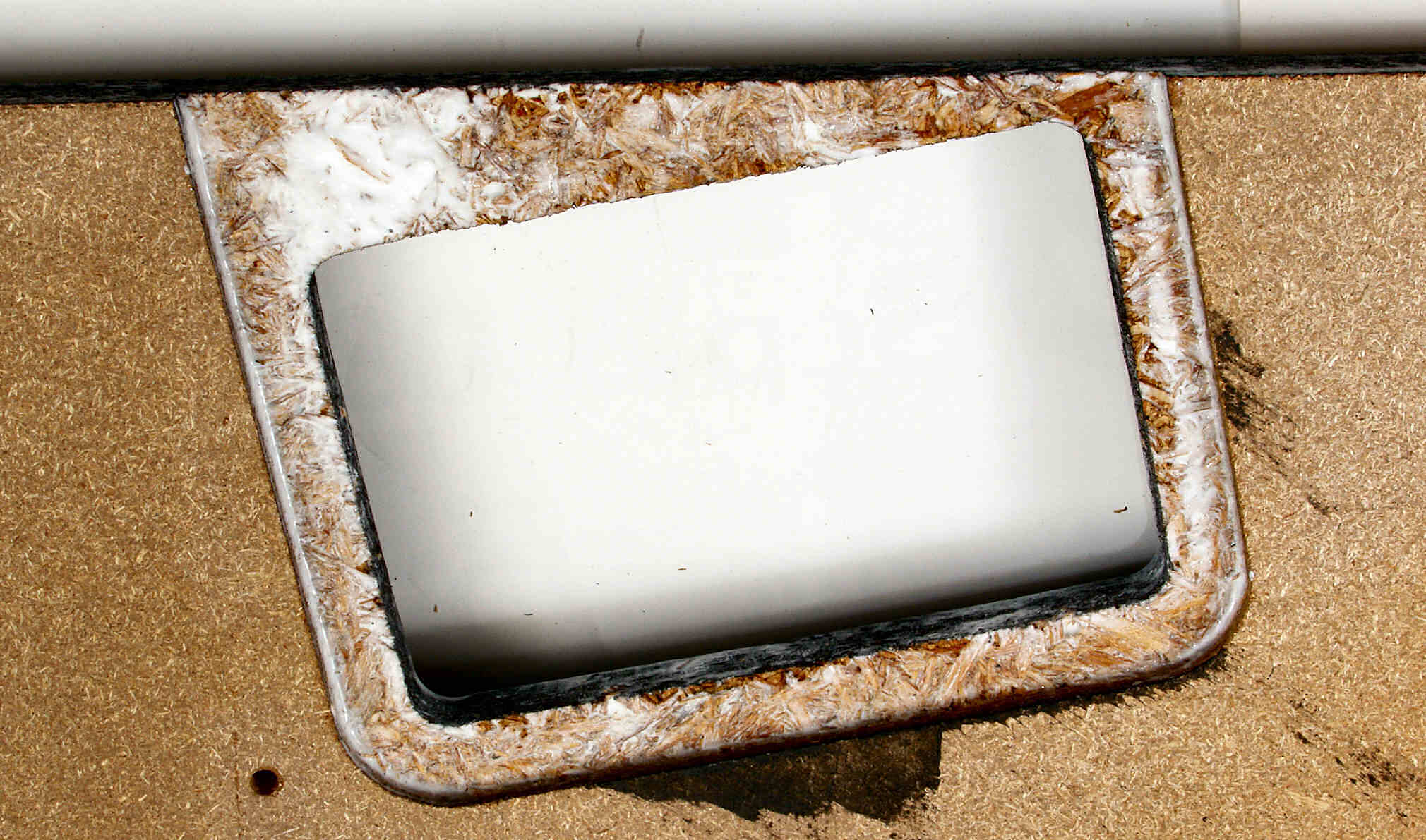 A3. 点検中 下蓋のトランスカバー取り付け穴の圧縮材の接着材が経年劣化で、効かなくなっている。