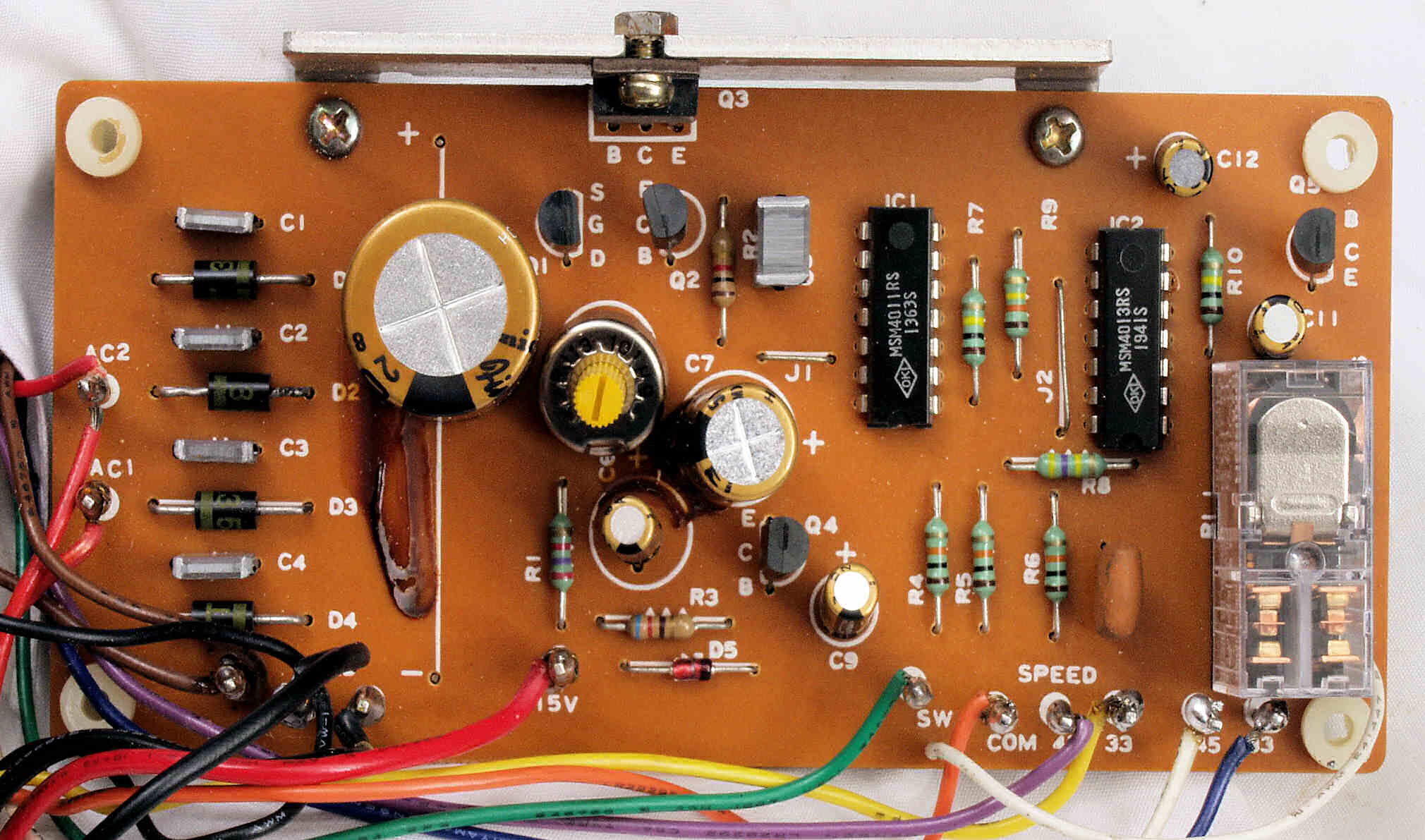 C2B. 修理後 電源・33/45切替基板 半固定VR1個、電解コンデンサー6個、リレー1個交換