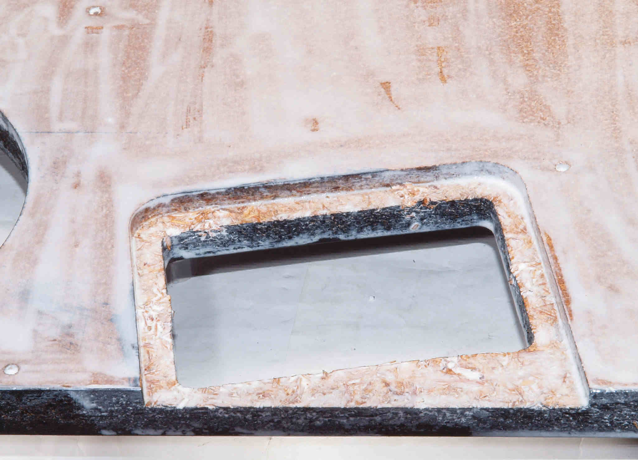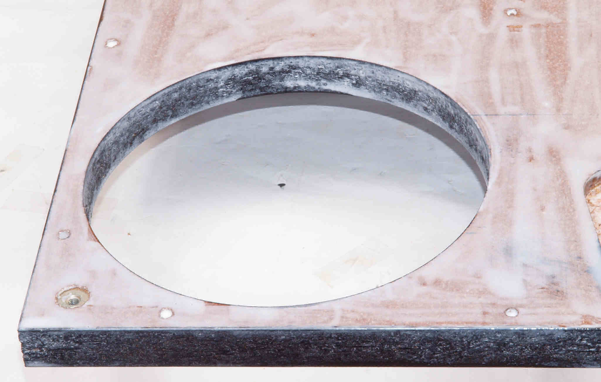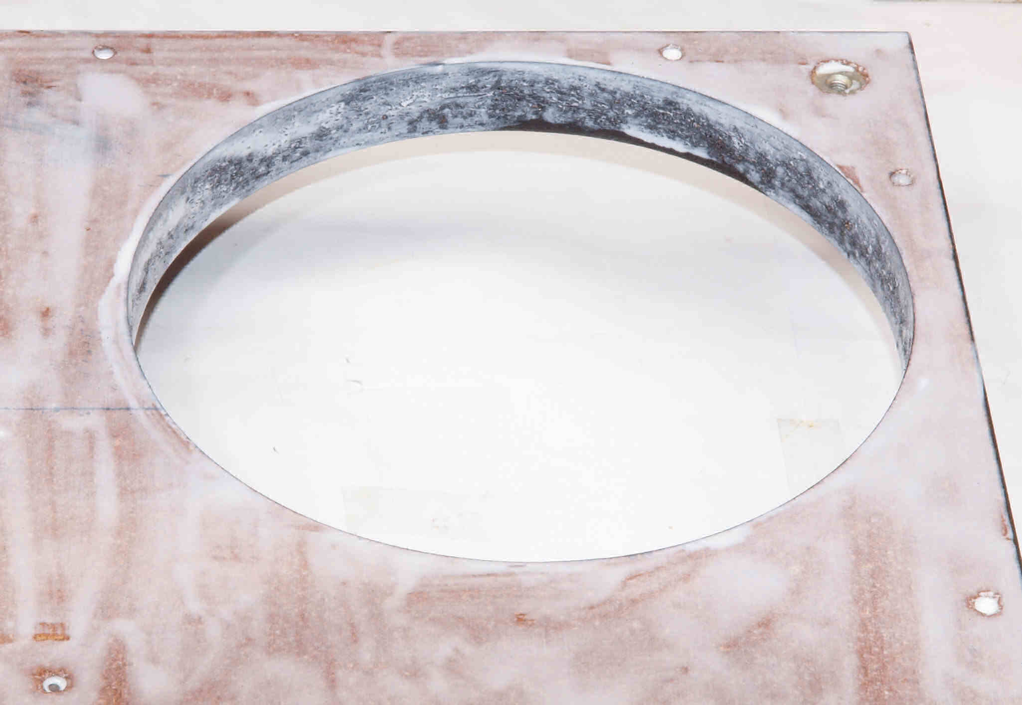 W35. 修理中 操作部取付穴、反対側。 圧縮材にボンドを染みこませる。