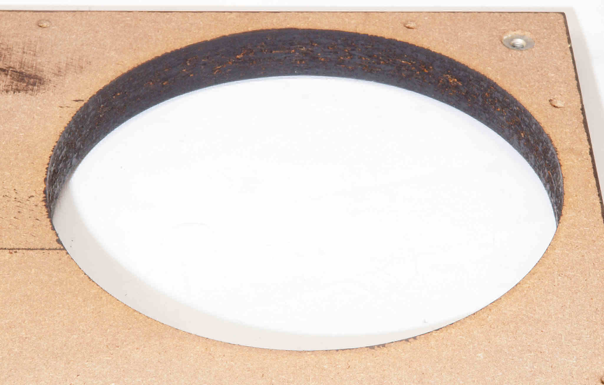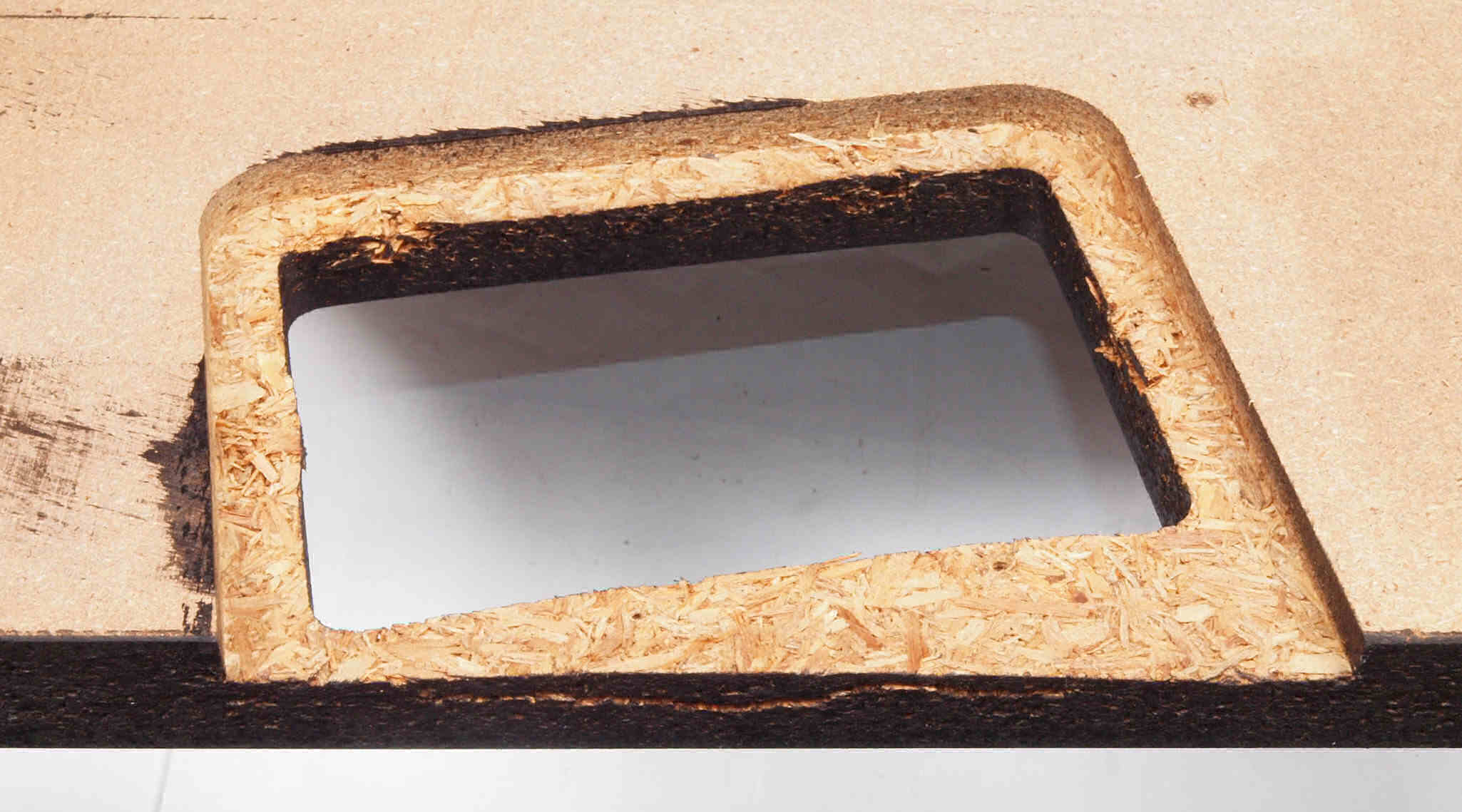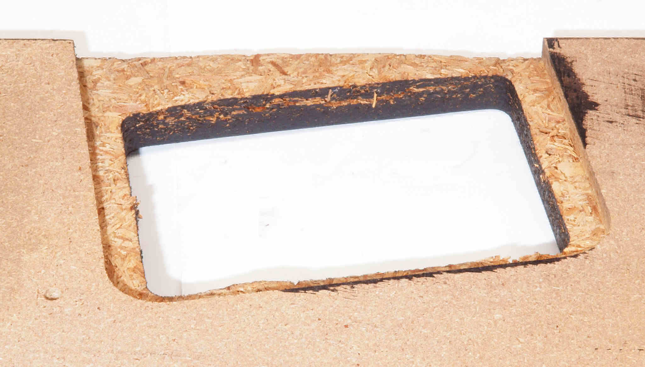 W35. 修理中 操作部取付穴、反対側。 圧縮材にボンドを染みこませる。