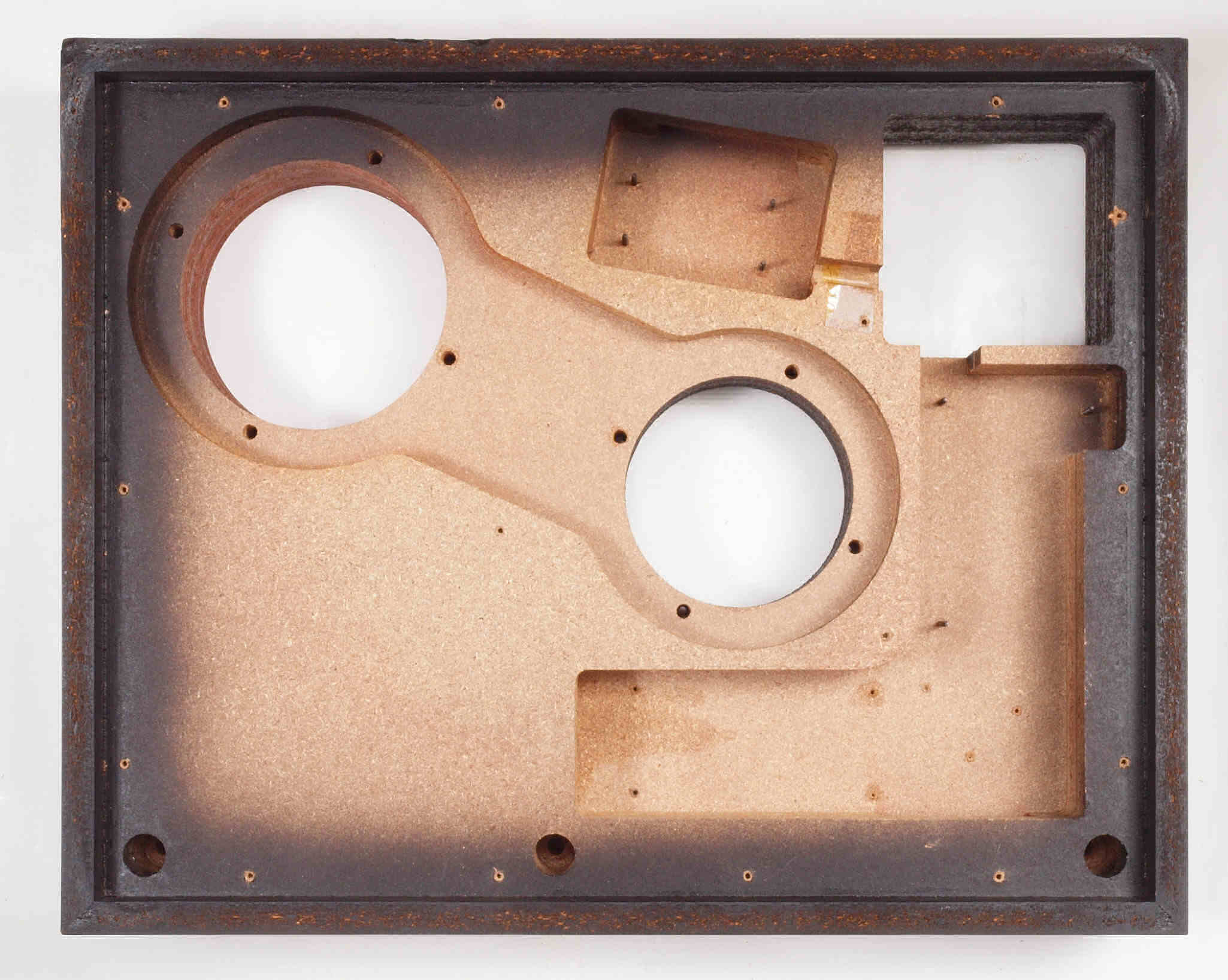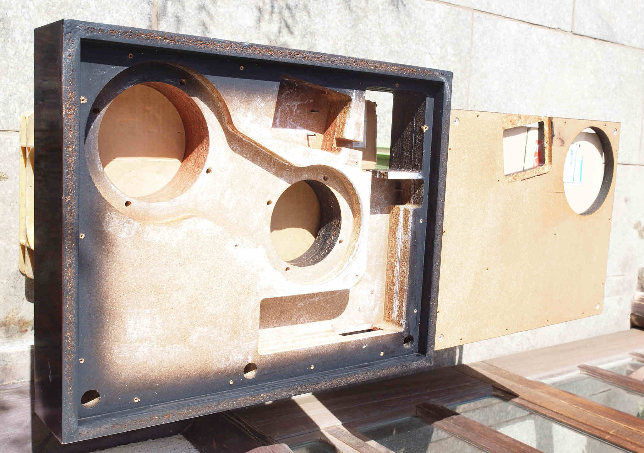 WE1. 修理中 電源ソケット取り付け板。サビと塗装剥げあり。