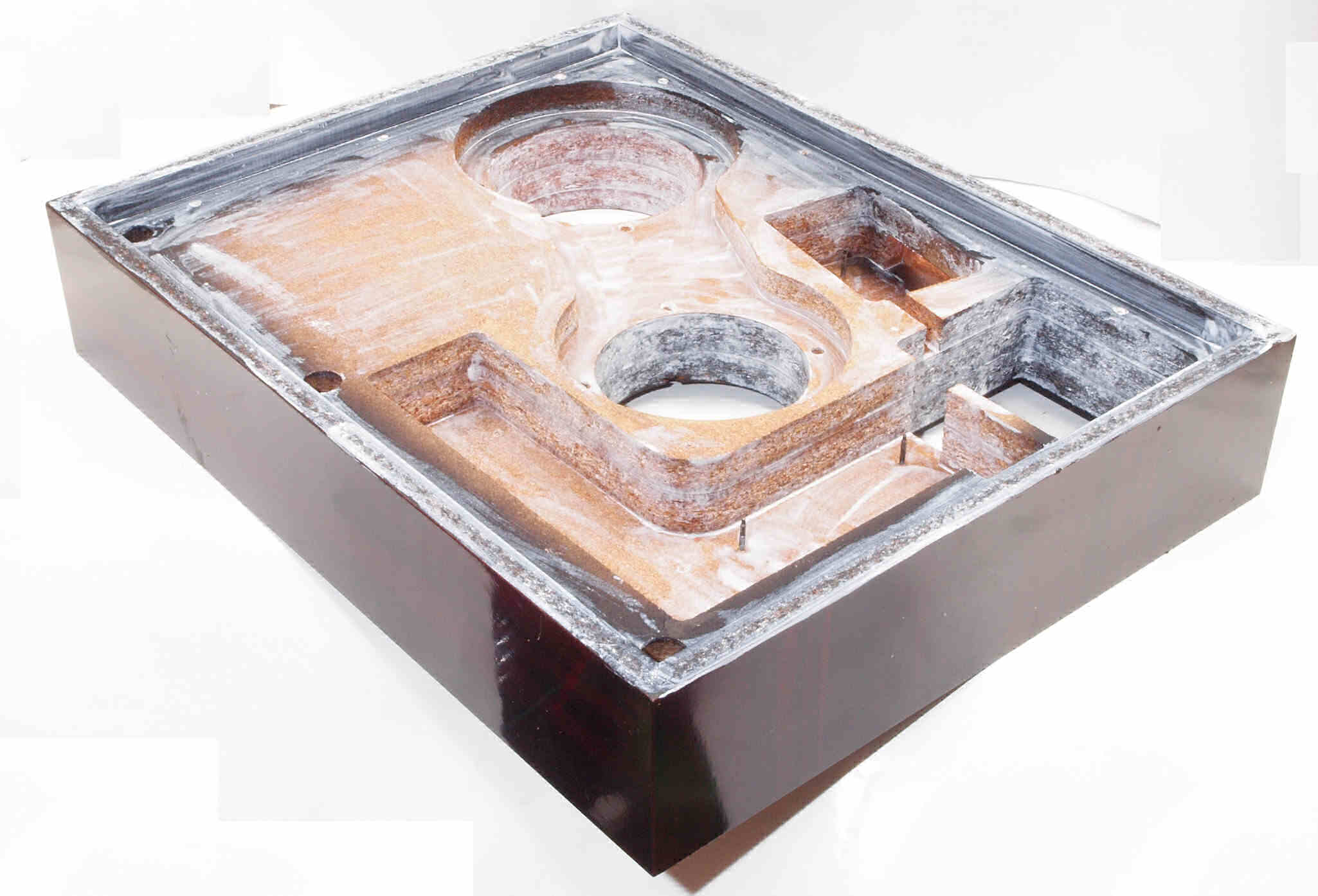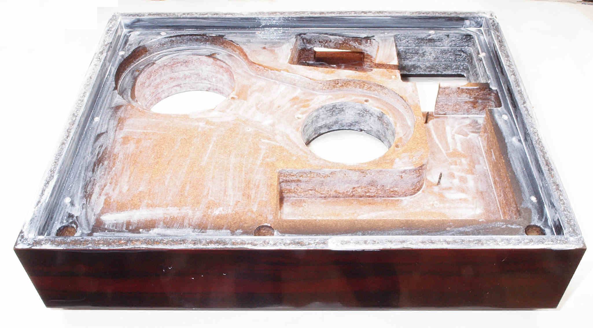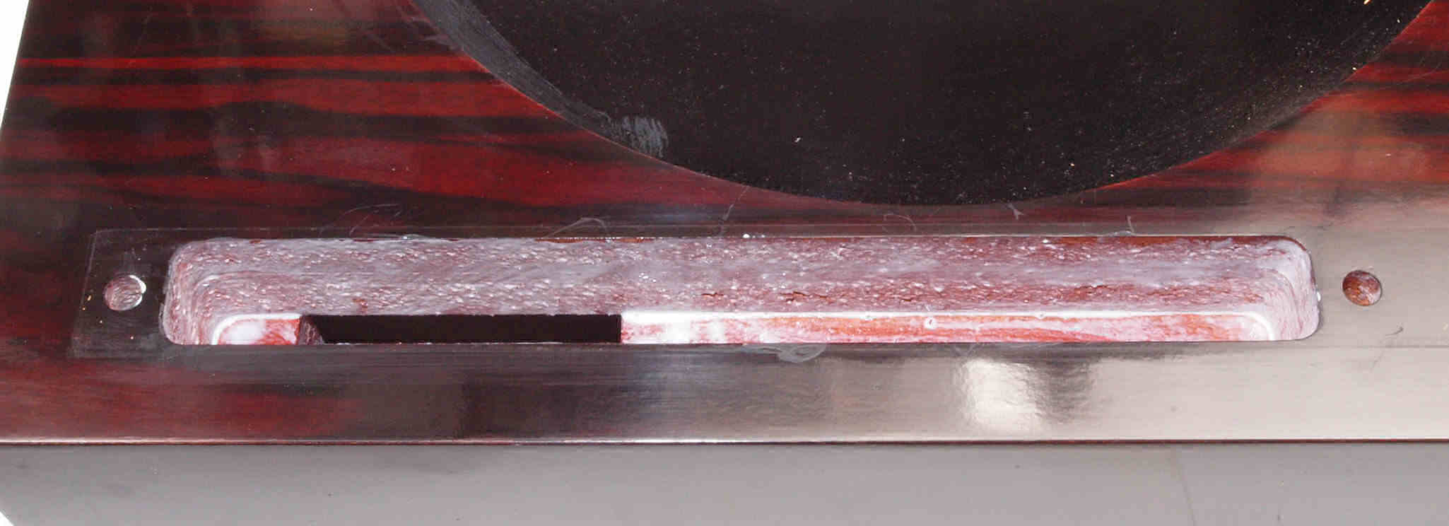 WC51. 修理中 下蓋のトランスカバー取り付穴、反対側。ヒビが大きいので2回目塗布。