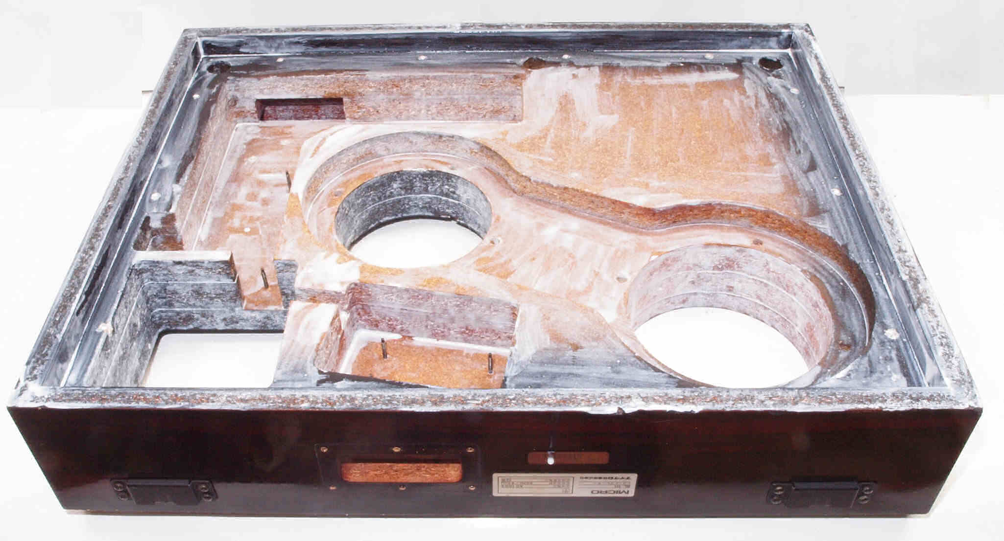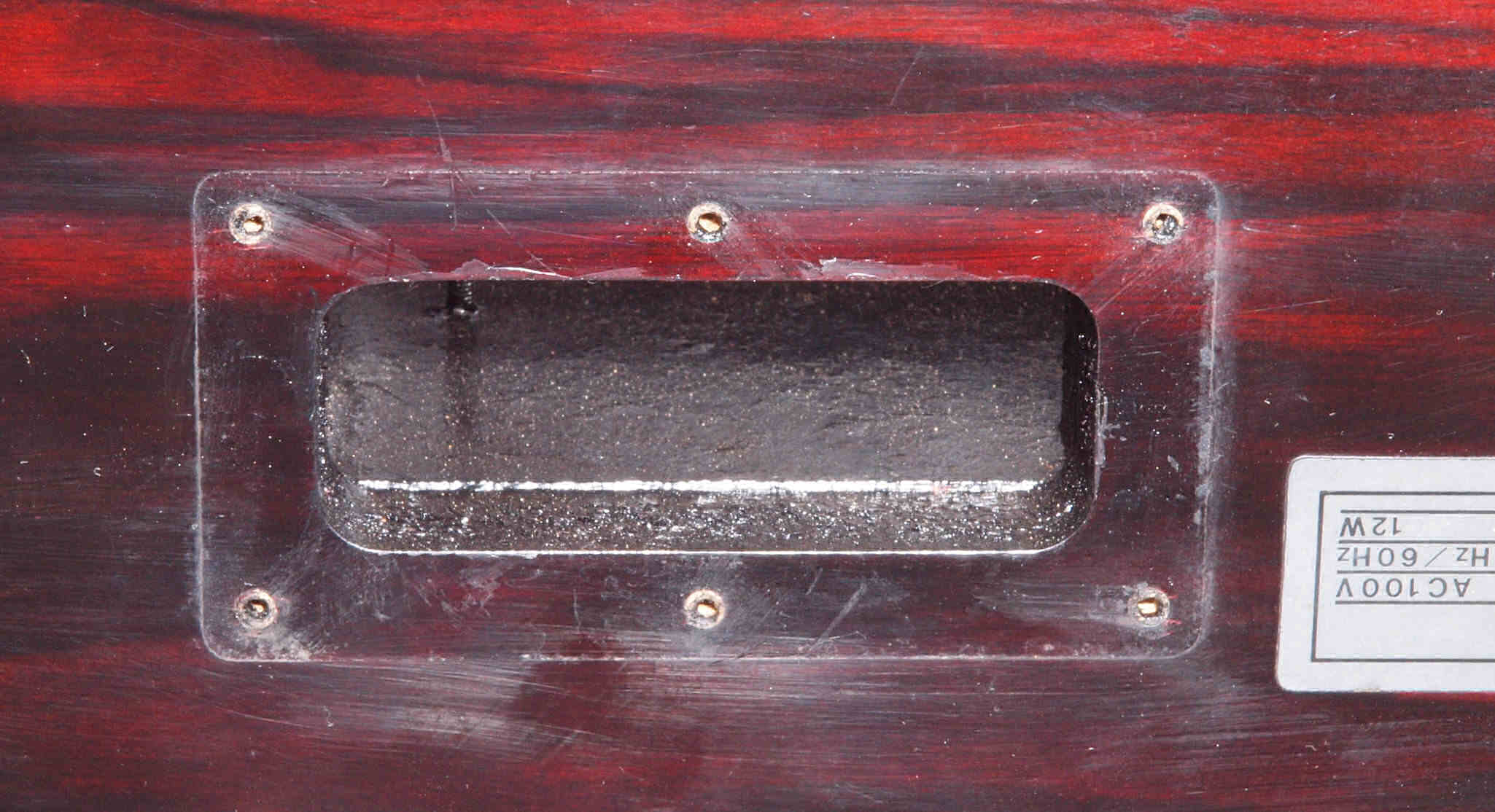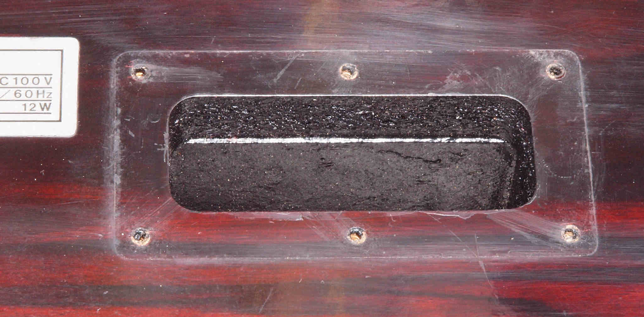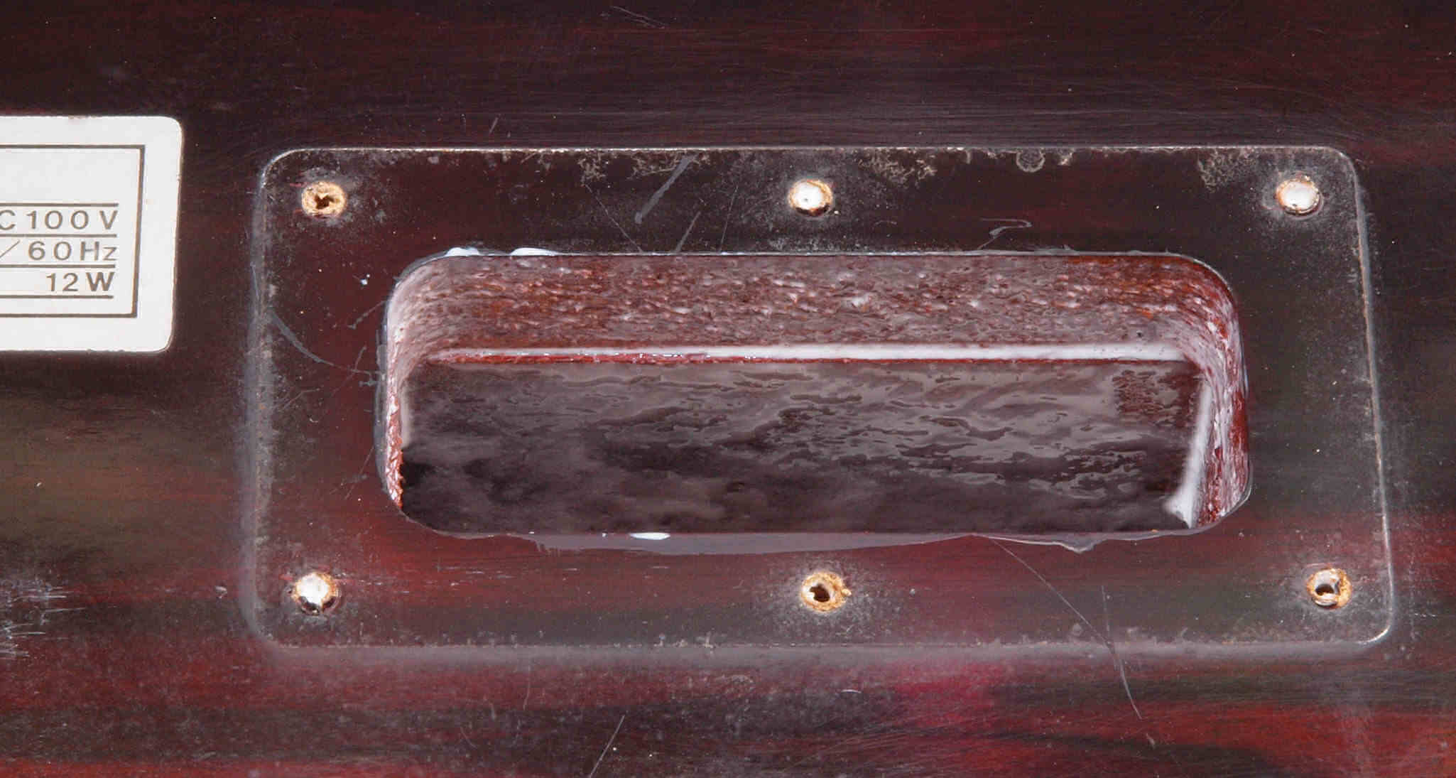 W92. 修理前 下蓋裏。 トランスカバーを取り、ボンドを染みませ乾燥後。