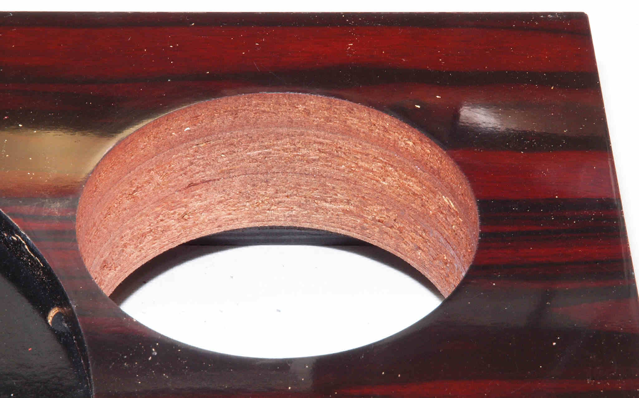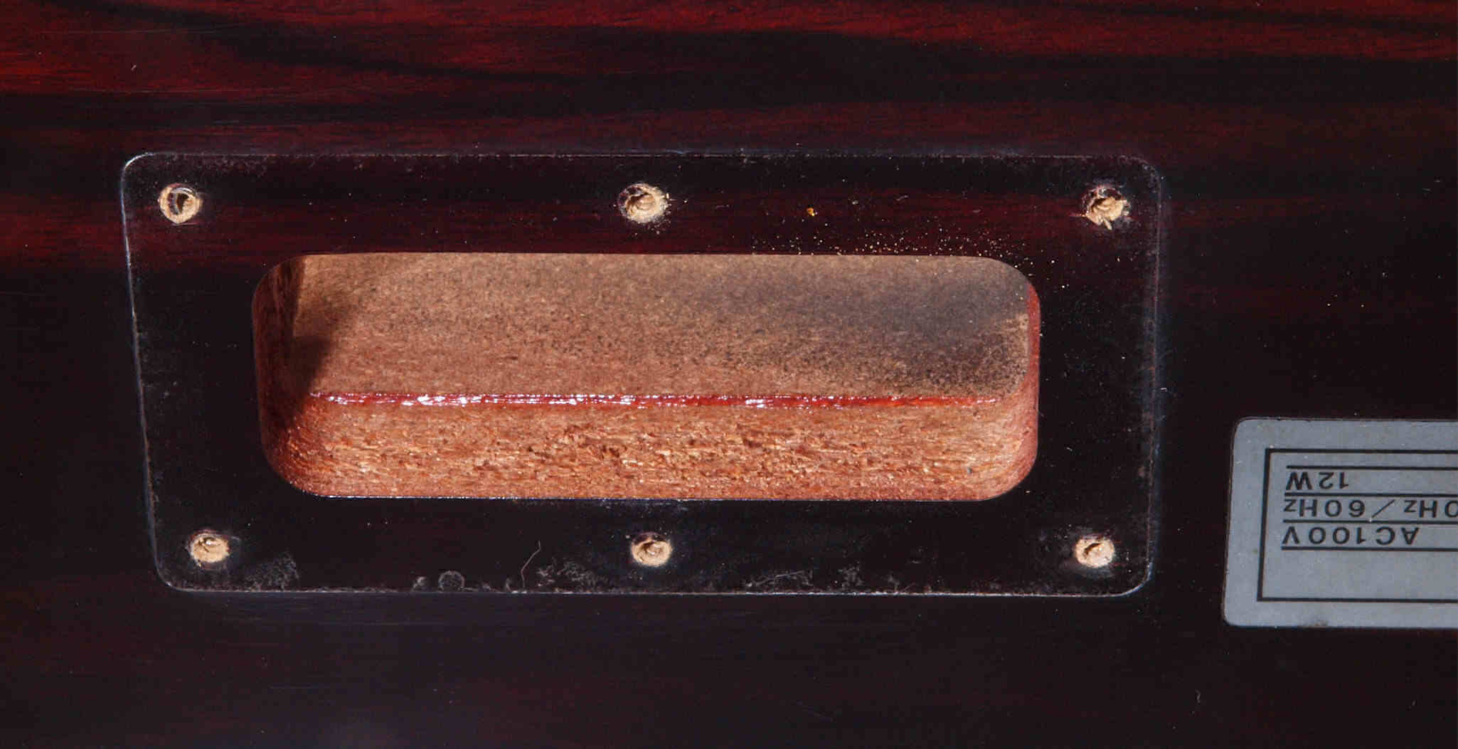 WC5. 修理中 下蓋のトランスカバー取り付穴、反対側。ボンドを染みこませる、ネジ穴も塗る。