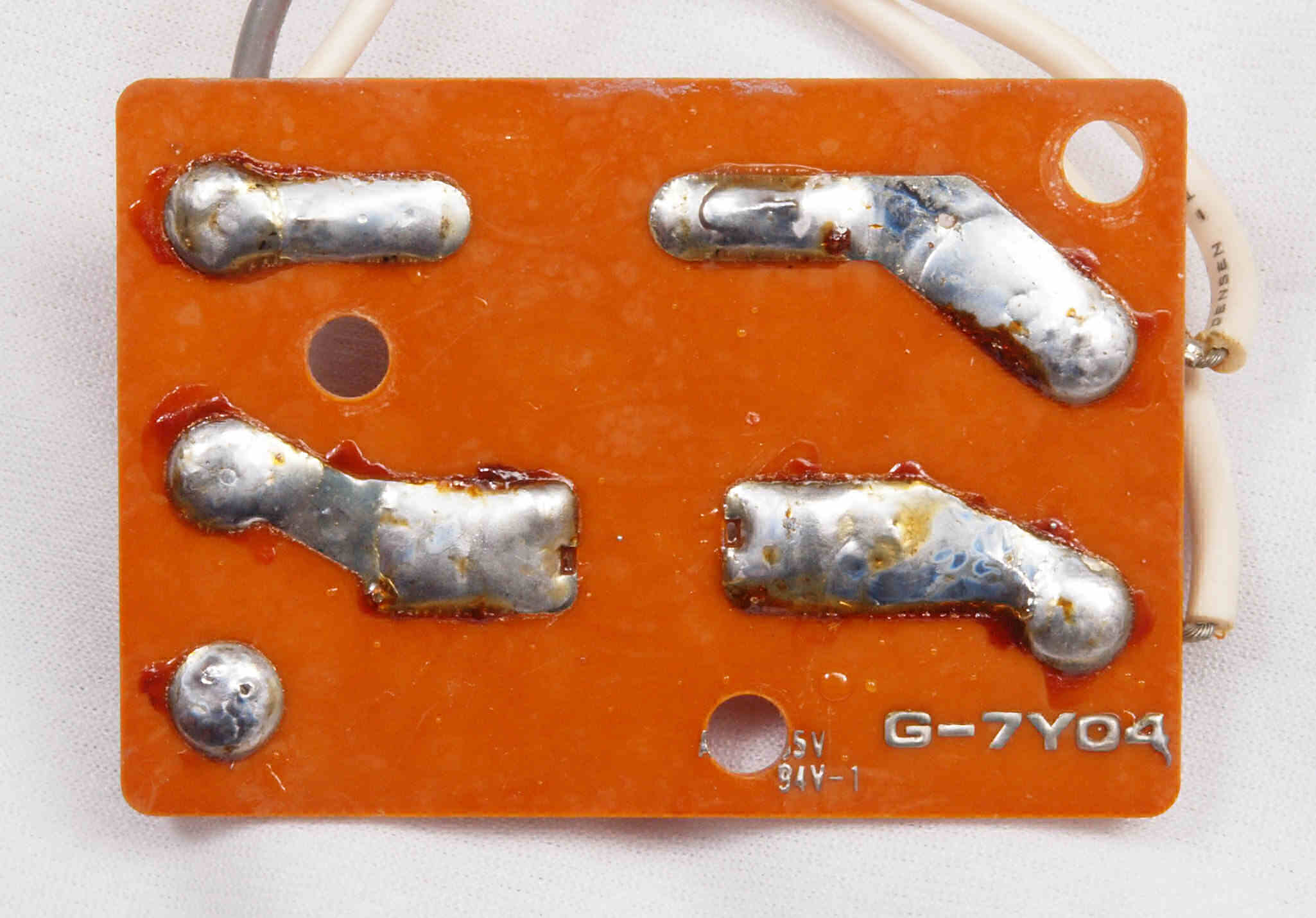 W74. 修理前 電源ソケット、端子板取付け穴、反対側。
