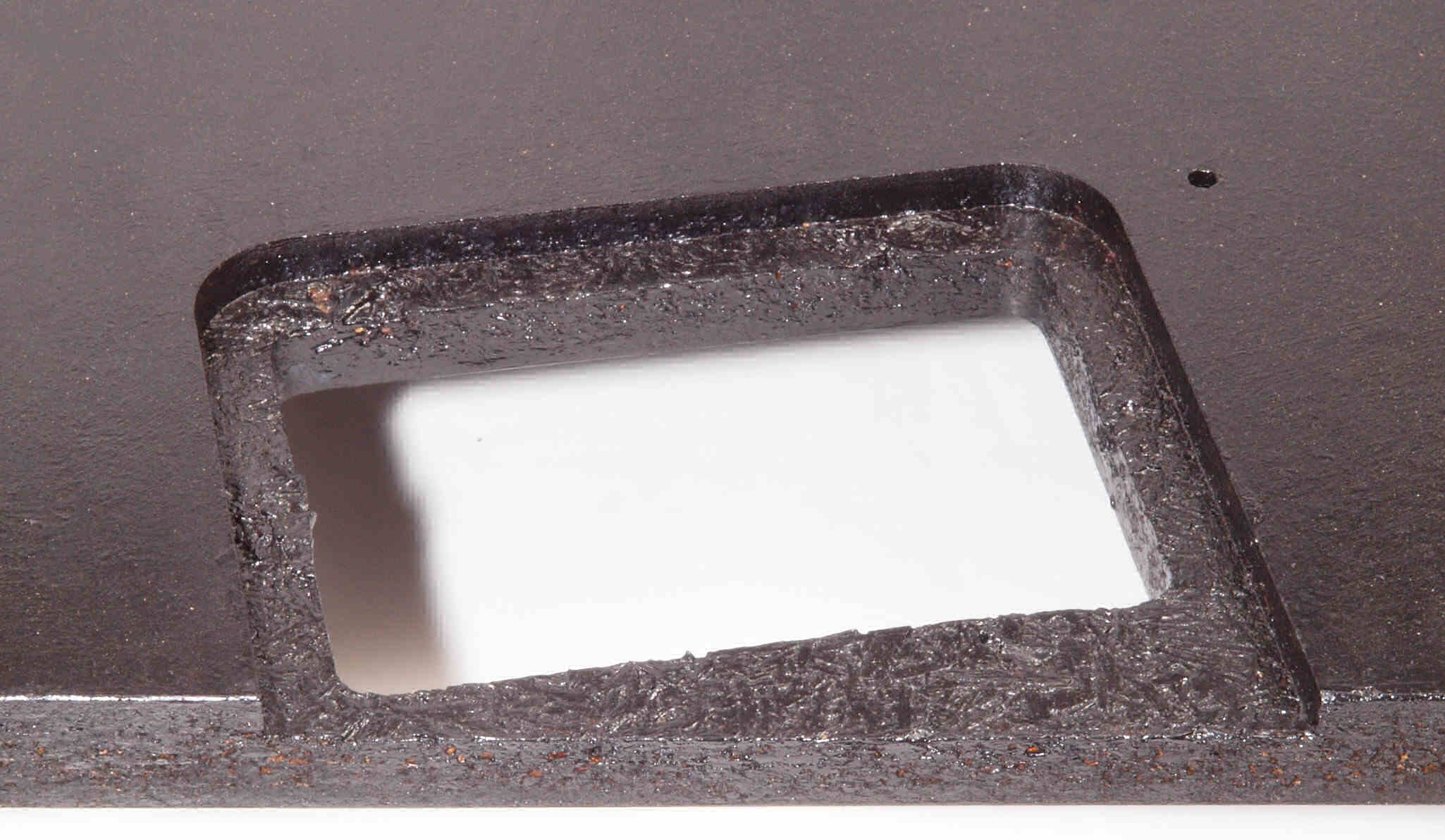 WC3. 修理後 下蓋のトランスカバー取り付穴。 乾燥後さらにペンキを塗る。