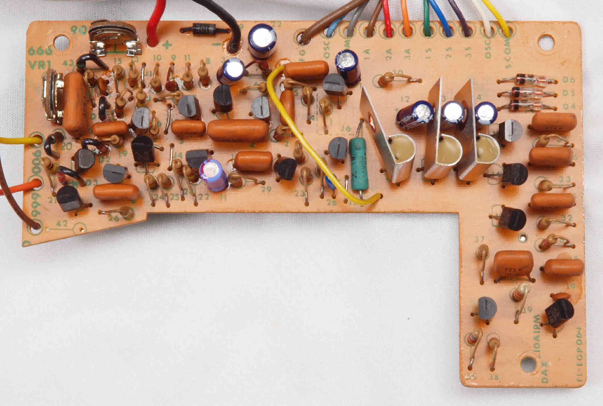 C23. 修理後 電源・33/45切替基板。 トルエン溶媒の接着剤を取り去り、コートを塗布後。