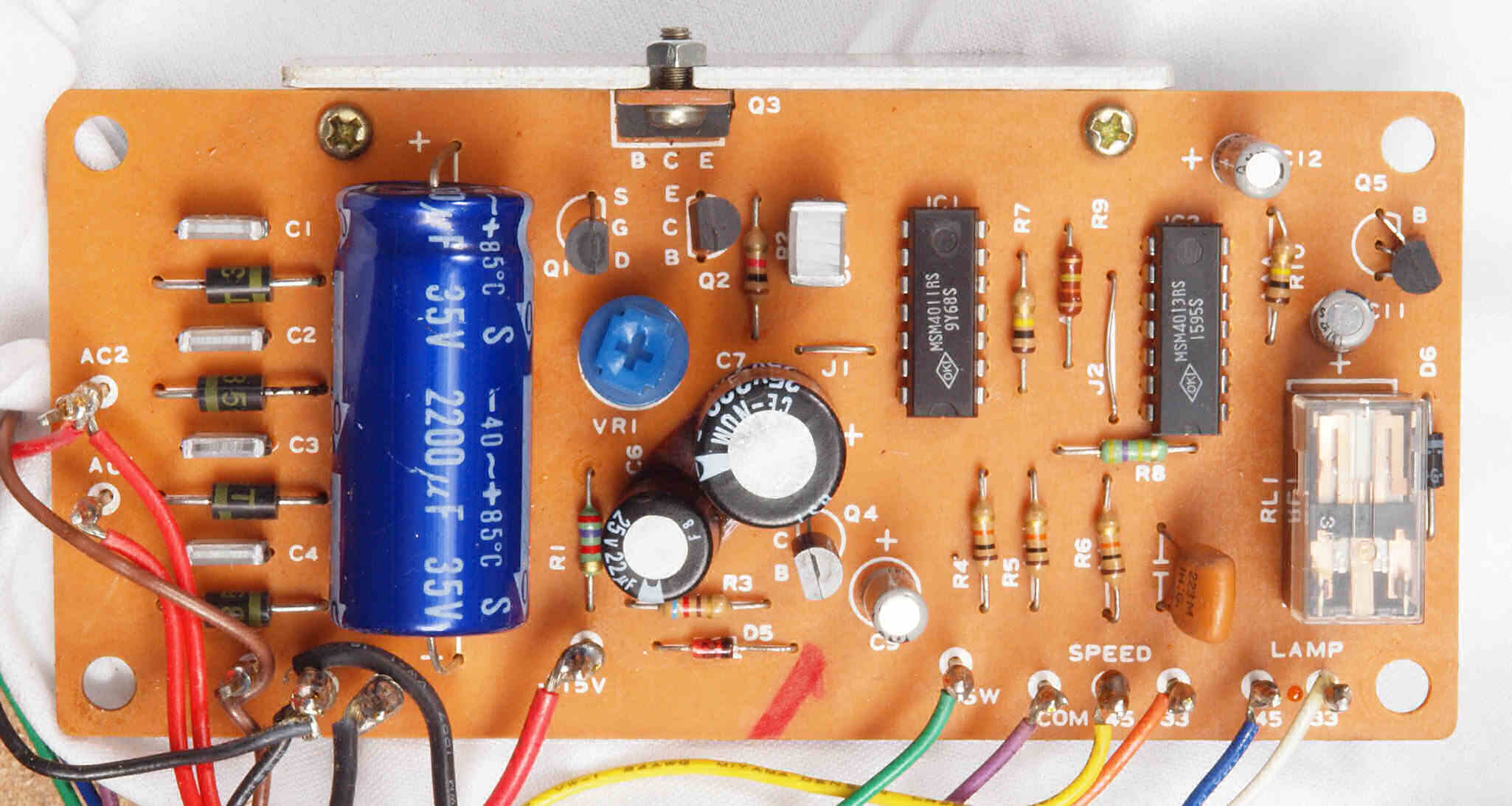 C12. 修理後 制御基板 半固定VR2個、電解コンデンサー7個、フイルムコンデンサー1個交換
