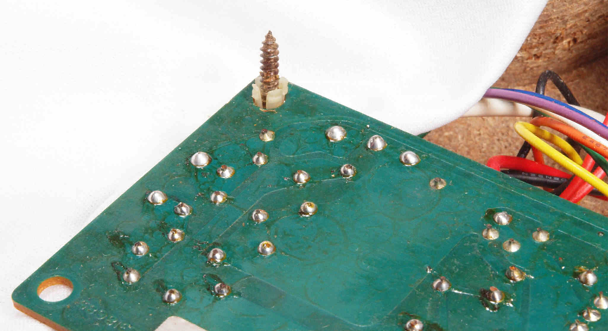 C34. 完成ヒューズ基板裏。 余分なフラックスを落として、コート液を塗る。