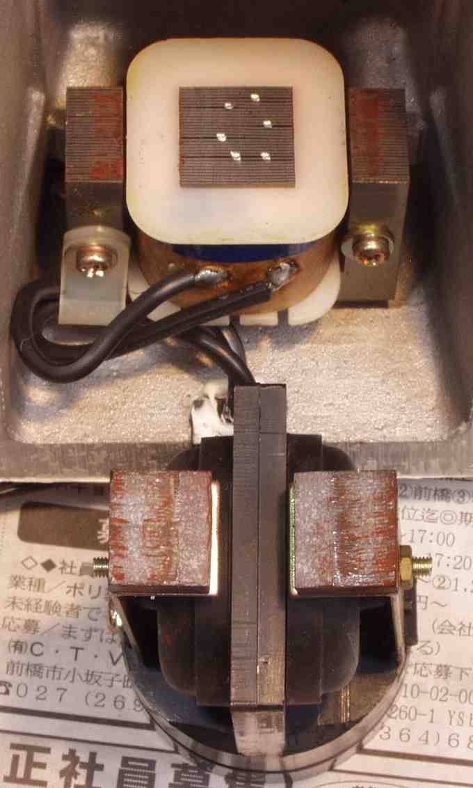C2A. 修理中  手前が磁石 奥が鉄心 錆び付いていたのか?