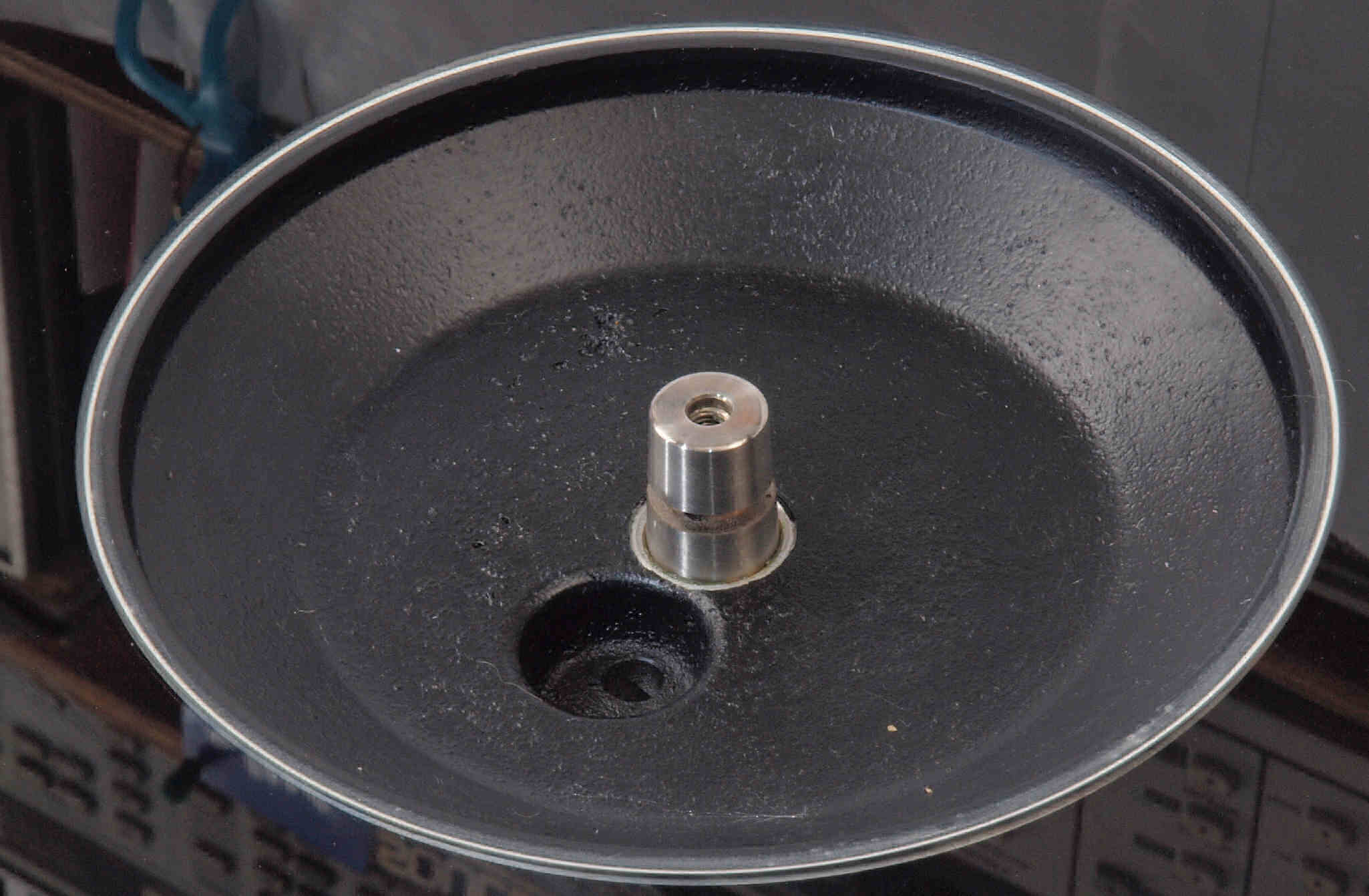 A54. 点検中 タンテーブル(プラッター)軸穴を見る。