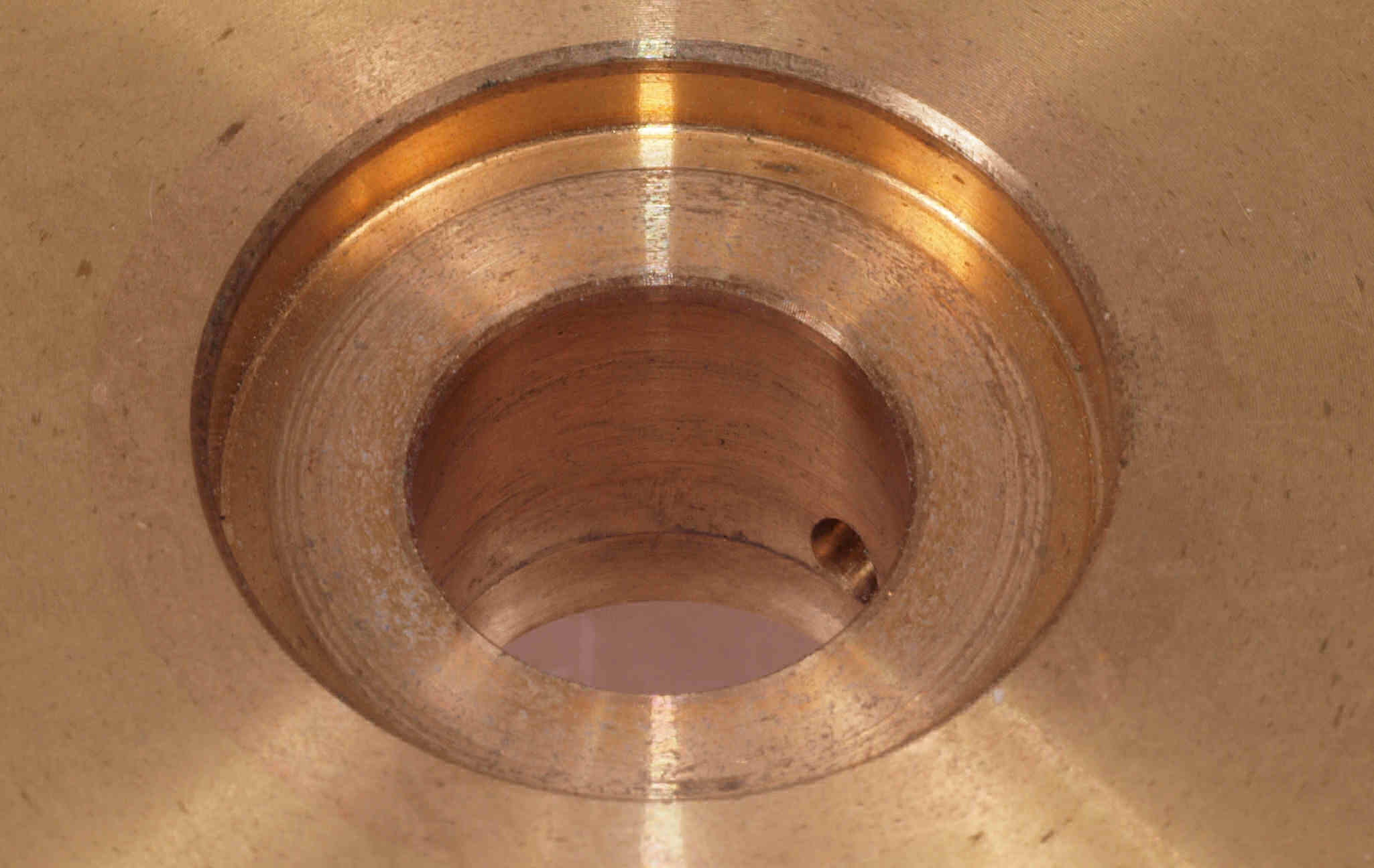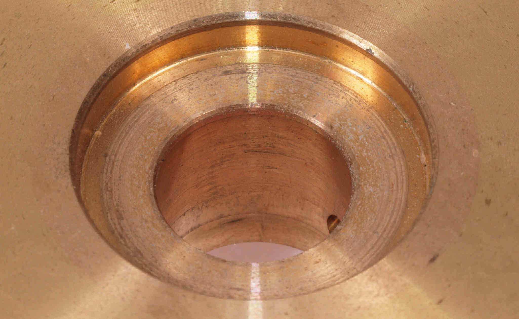 A55. 点検中 タンテーブル(プラッター)軸穴を見る、反対側。
