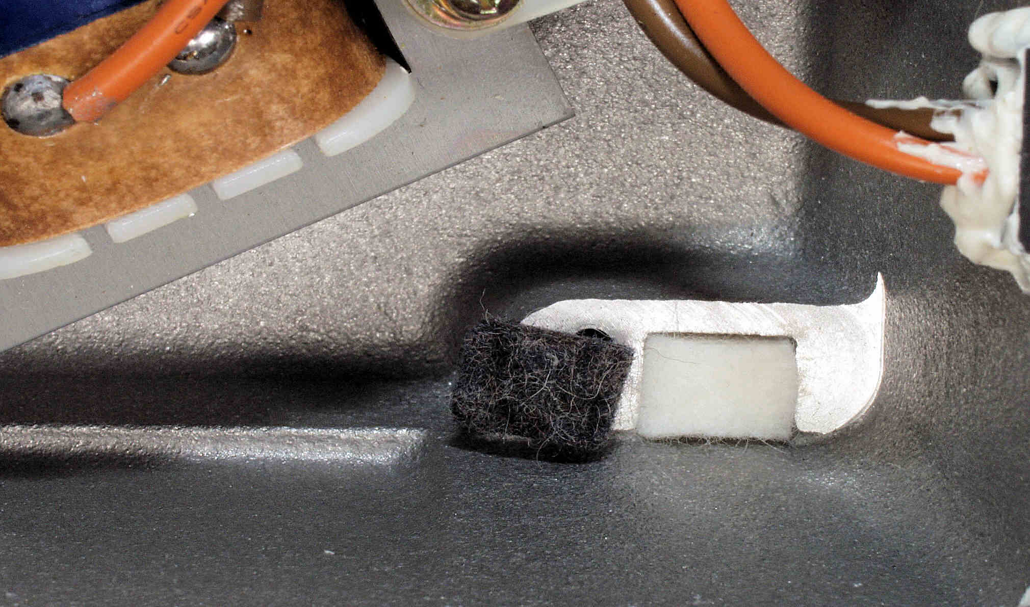 C65. 修理前 接着材が劣化したフューズ取付圧縮板。