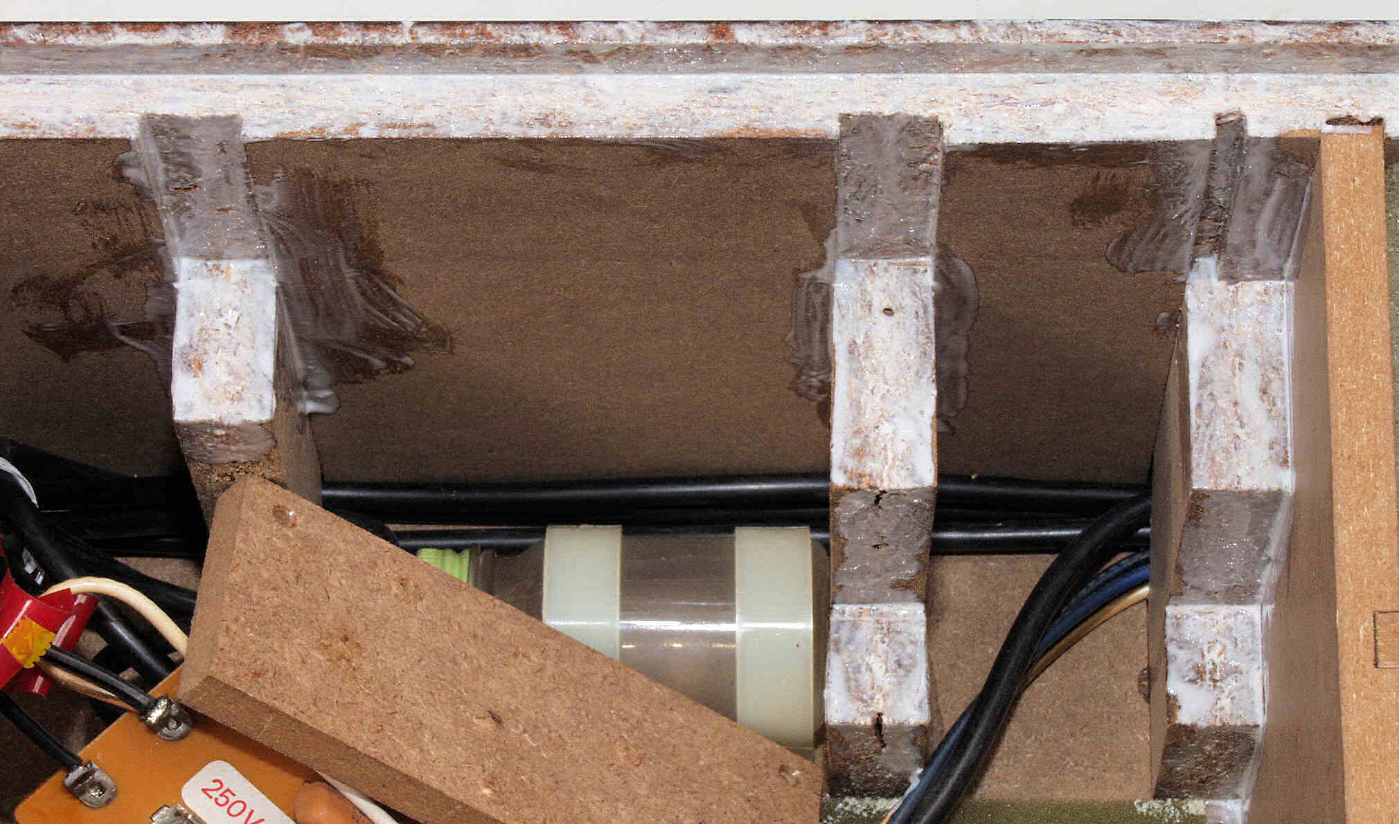 CA2. 修理中 圧縮板にボンドを塗って固めた所。