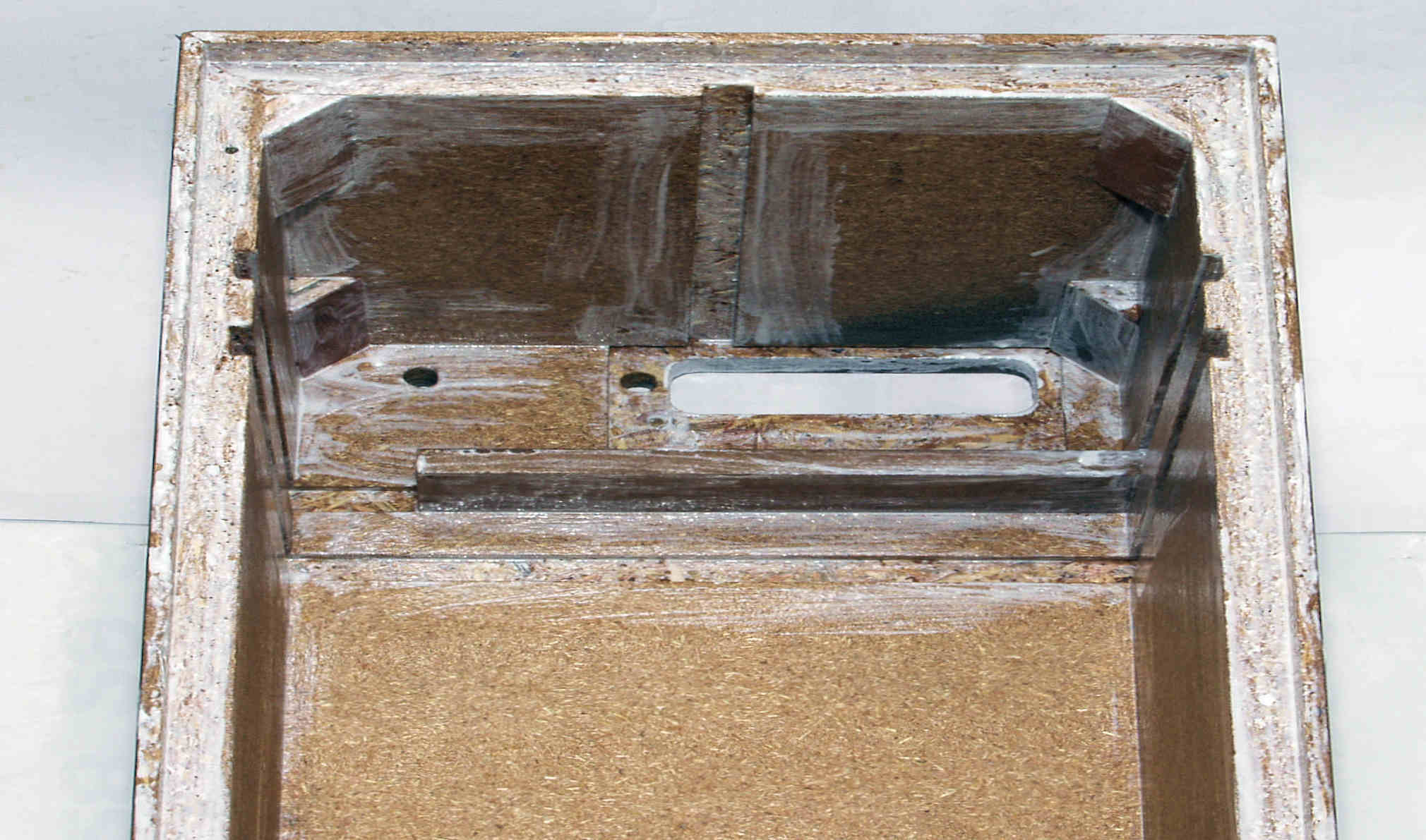| CB2. 修理後 下蓋(底板)裏、ボンドを染みこませ、乾燥後。 | ||||||||||||