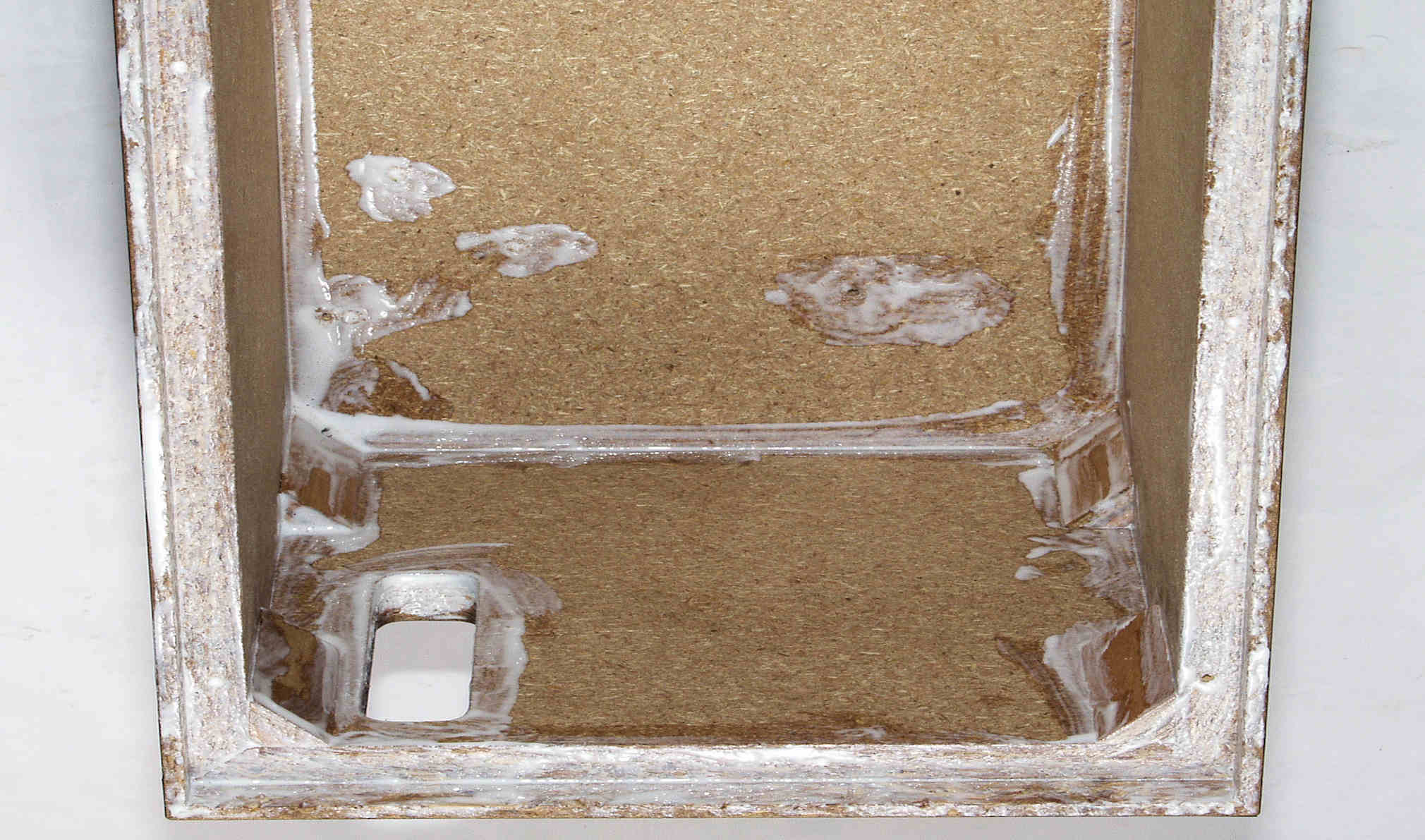 | C51. 修理前 接着材が劣化した木箱圧縮板上側。 | ||||||||||||