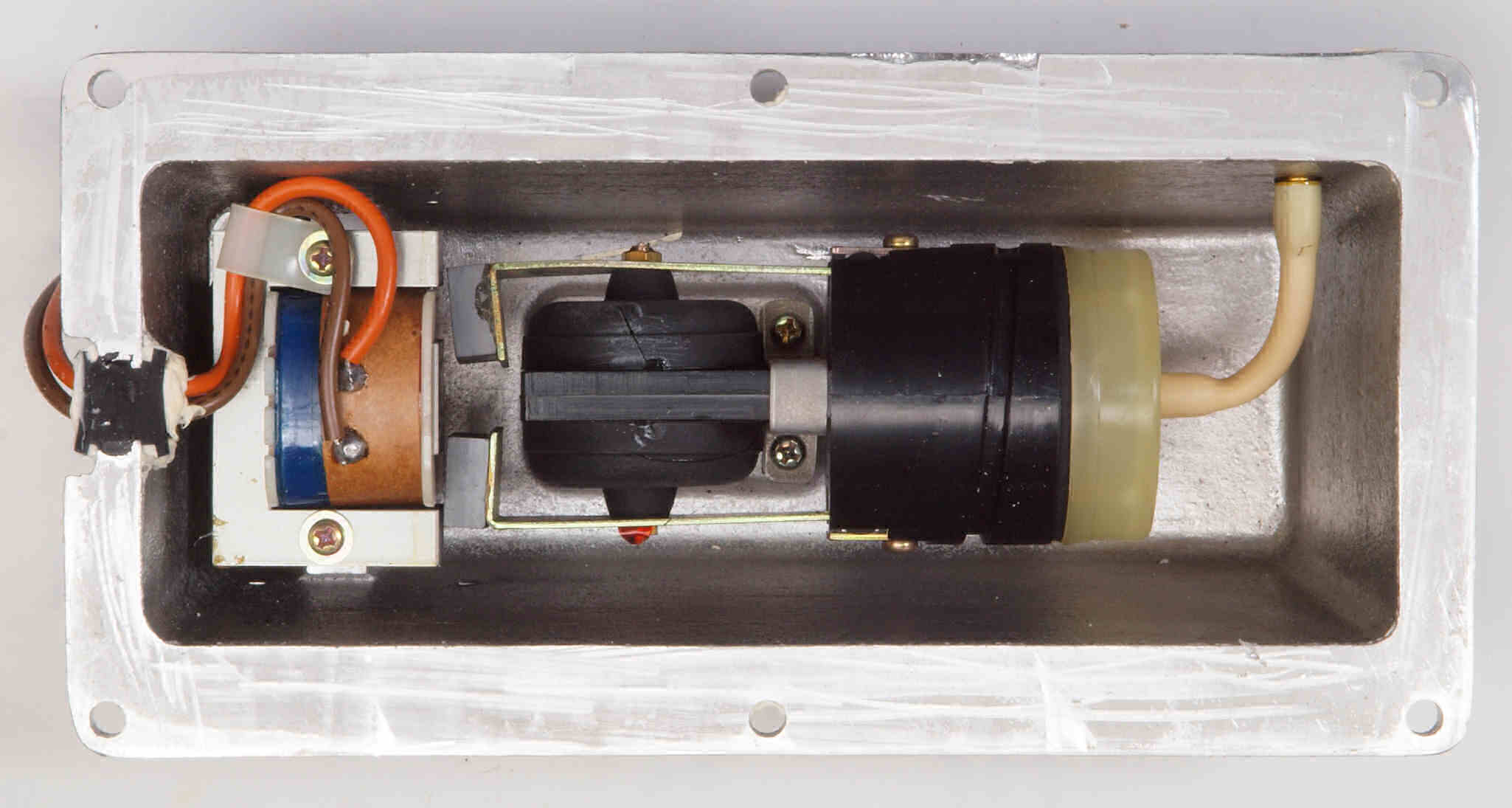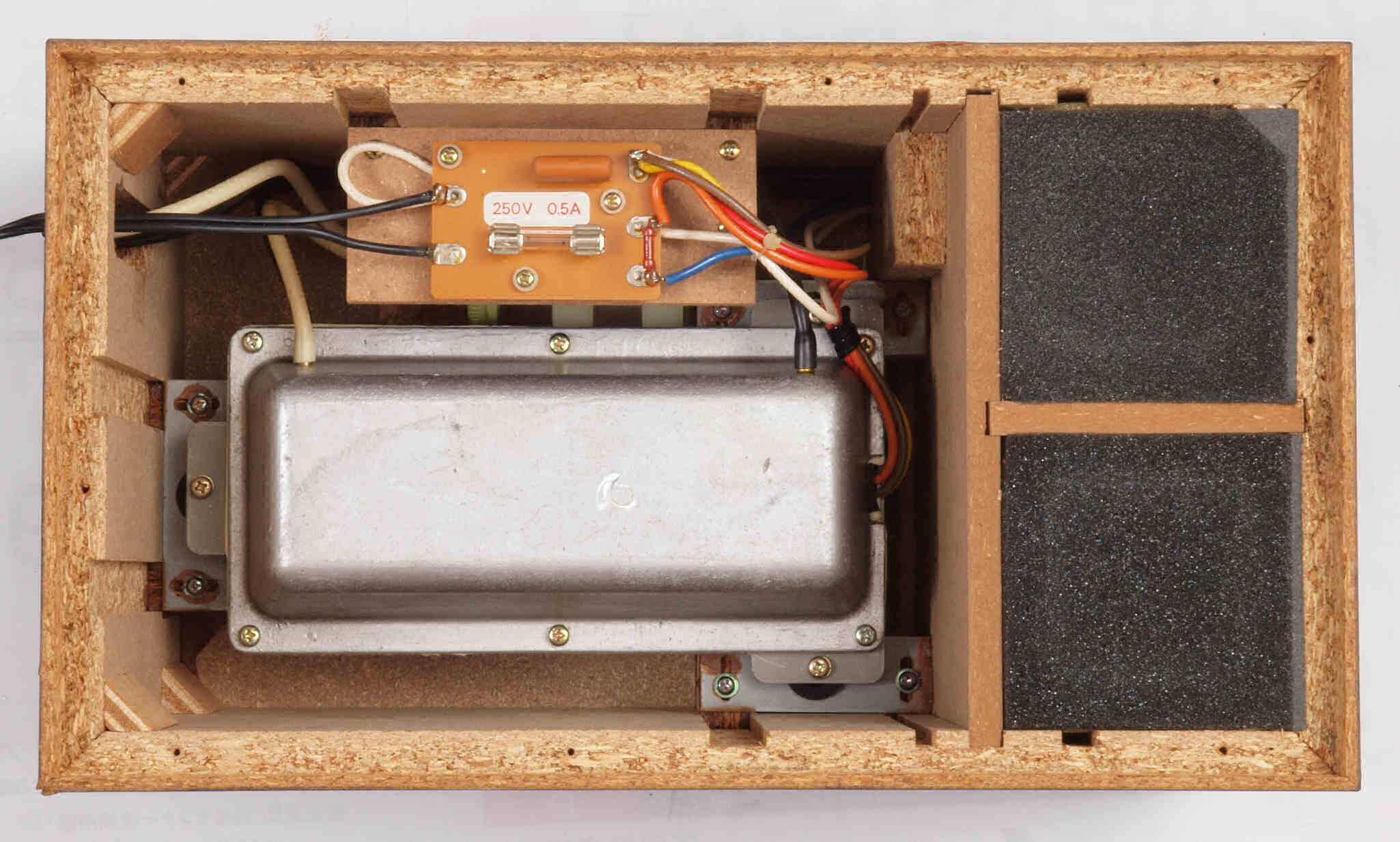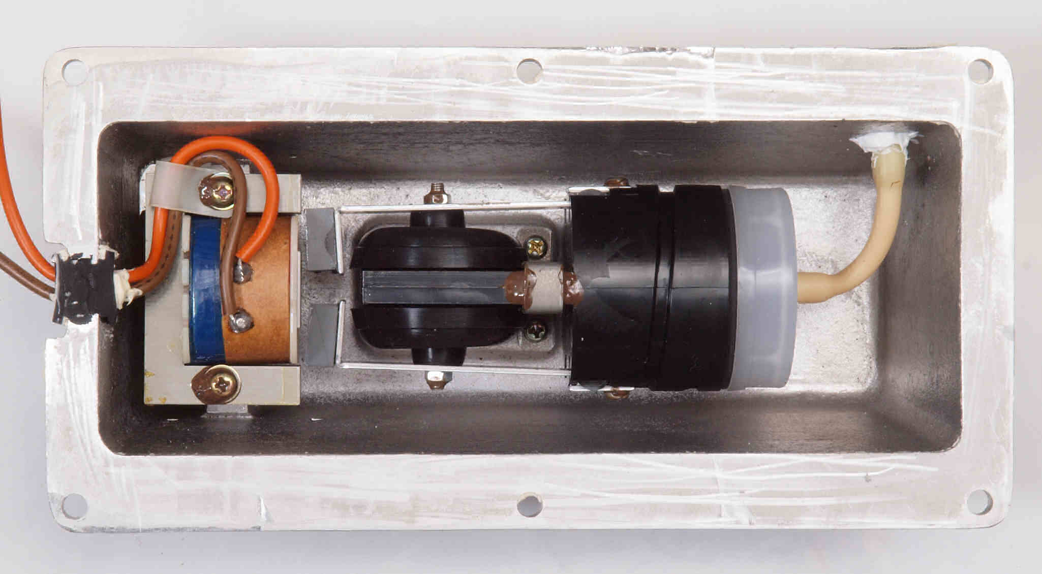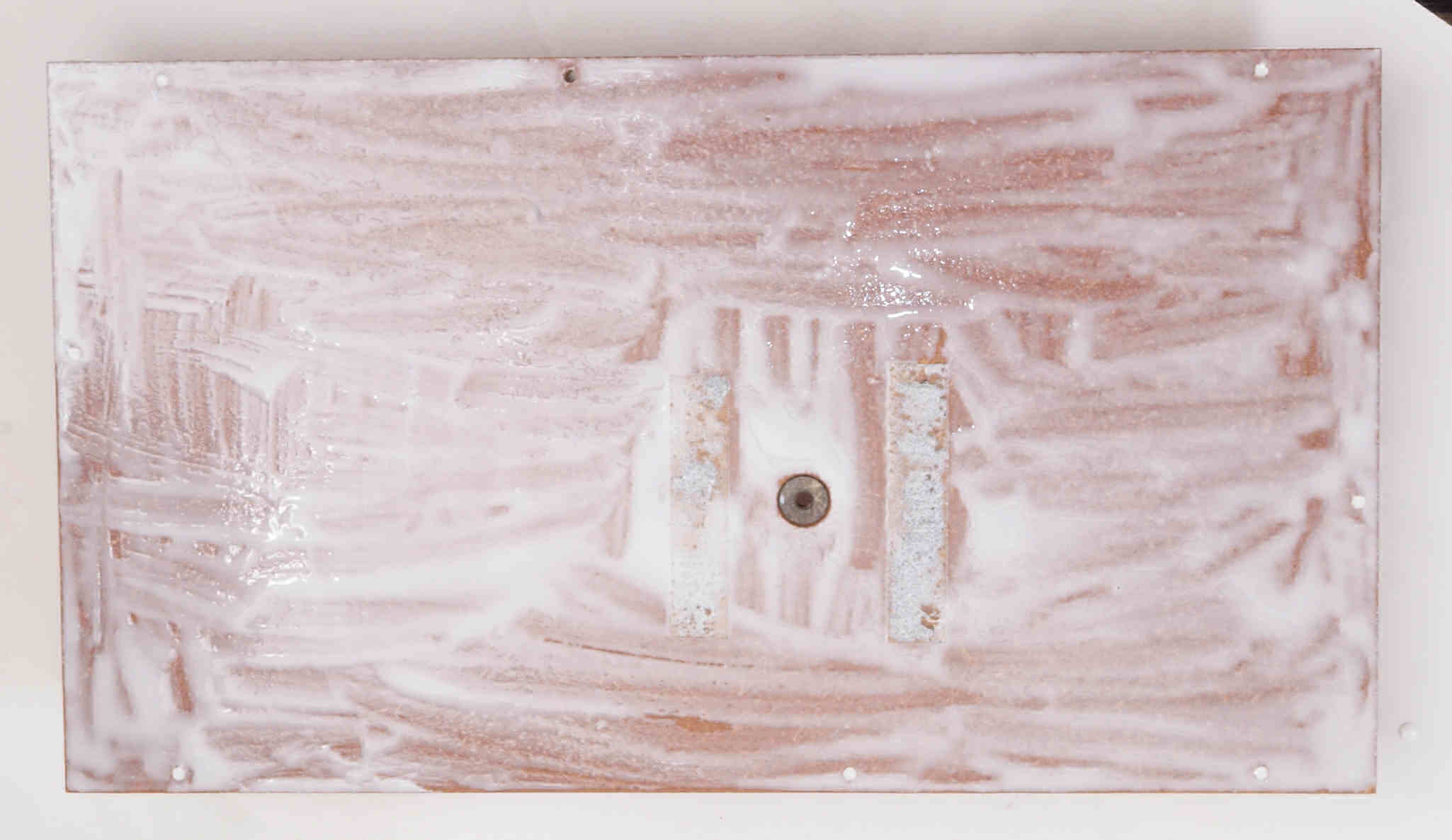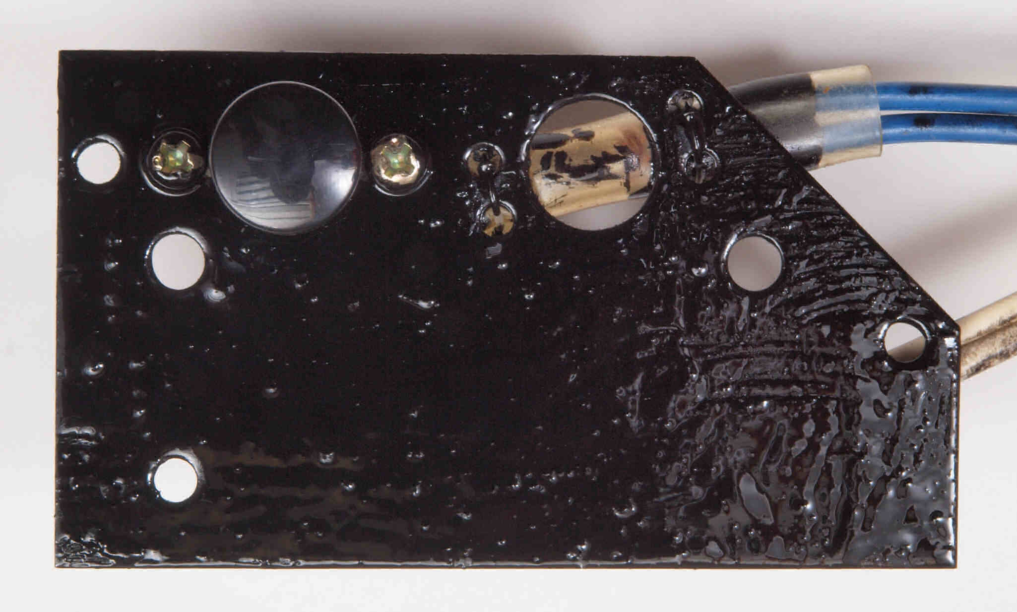C52. 修理中 フューズ取付圧縮板表。 圧縮板にボンドを塗って固めている、フューズ取付圧縮板表。
