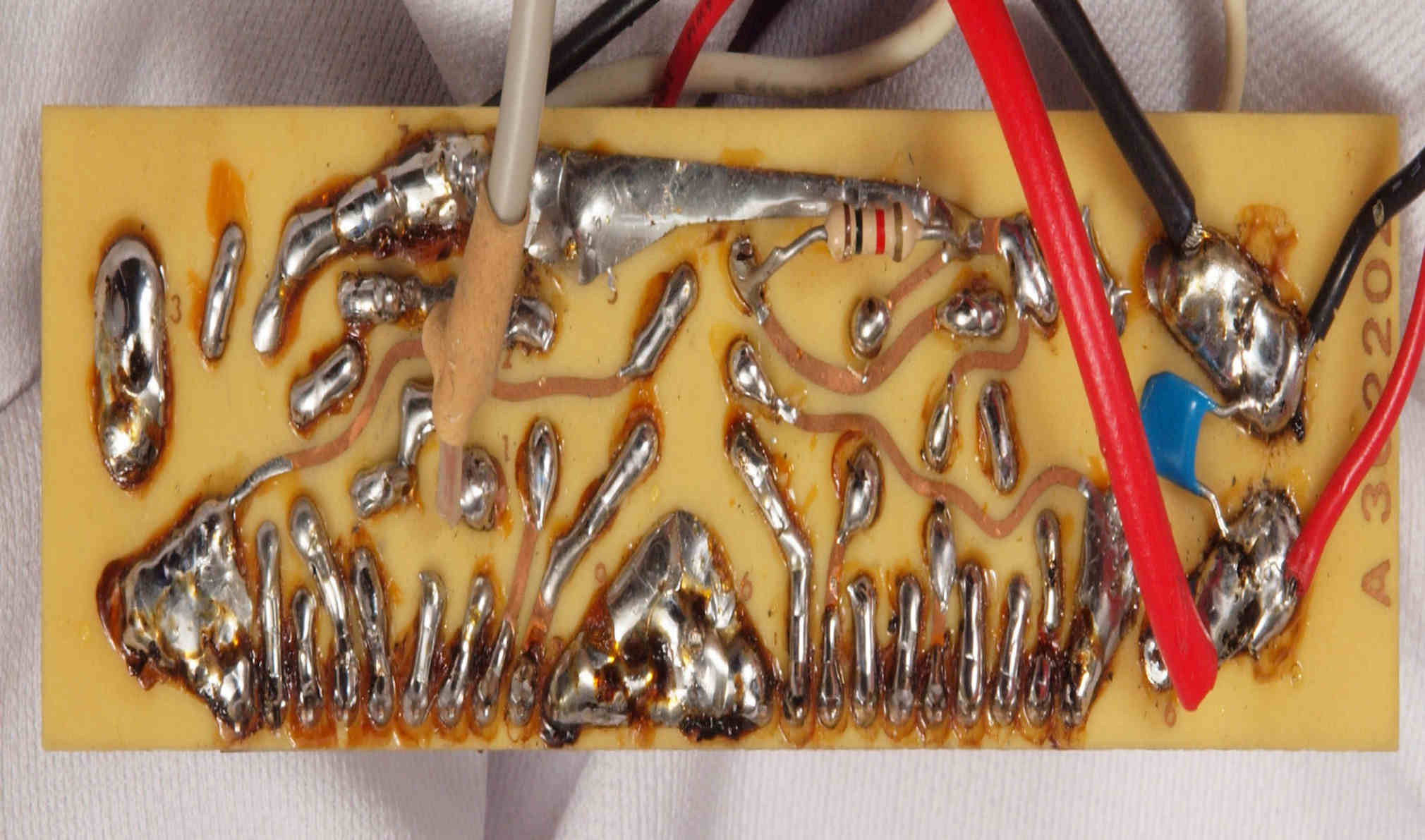 | C15. 洗浄後 電源部整流基板裏。余分なフラックスを落とす。 |