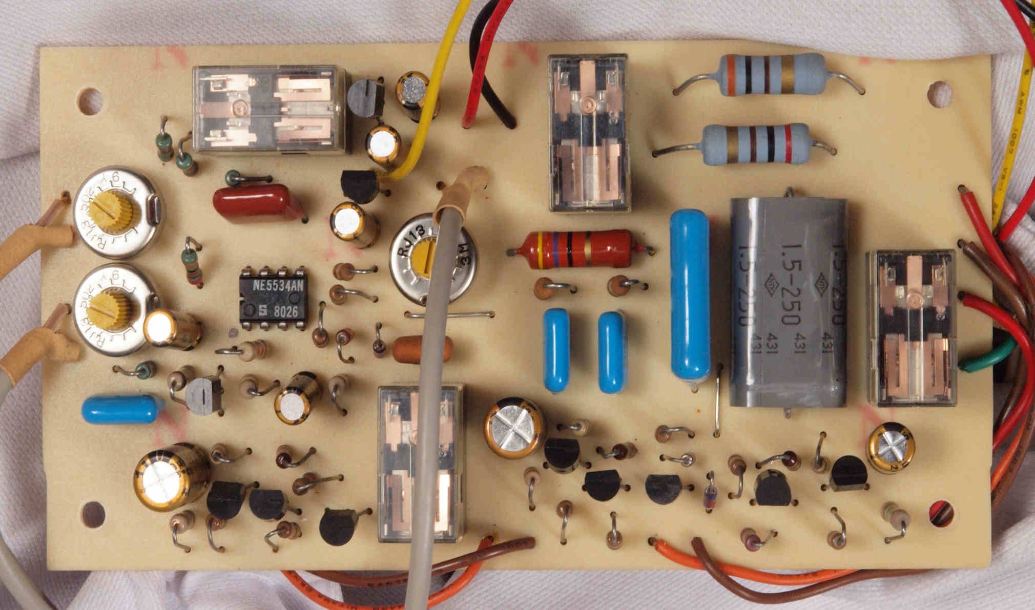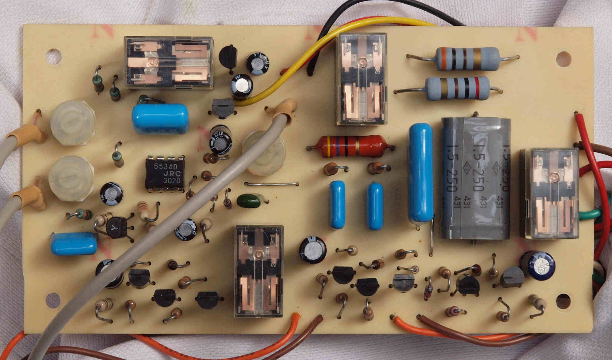 | C22. 修理後 モーター部コントロール基板、 半固定VR3個、電解コンデンサー8個、OP−AMP1個FET(電解トランジスター)1個交換 |