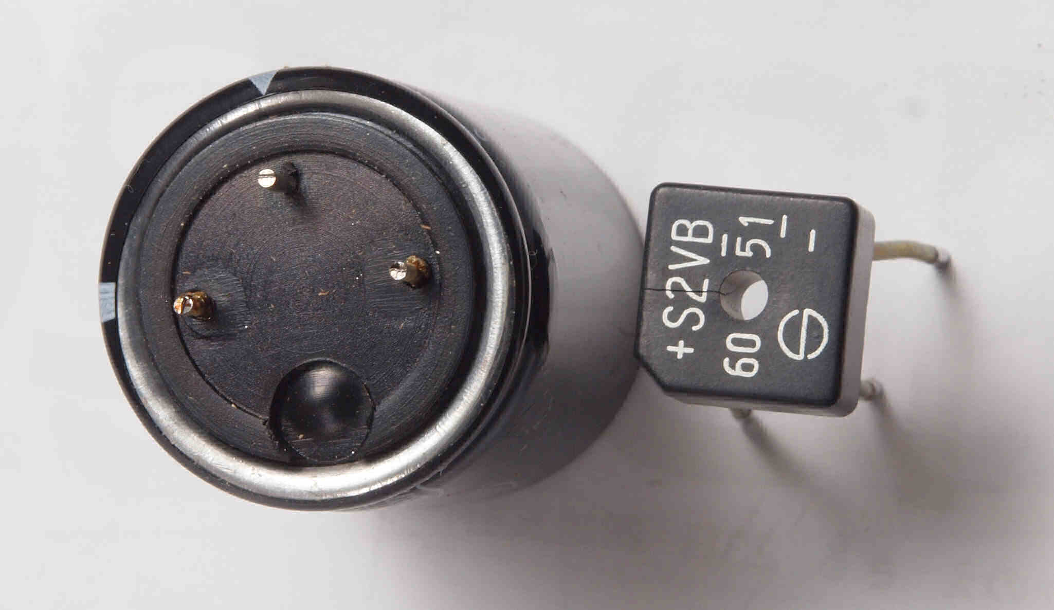 | C92. 交換部品。 熱でビニールが後退し、防爆弁が膨らんだ電解コンデンサー。過電流でヒビが入った整流ブリッジダイオード。 | ||||||||||||||||||||||||||||||||||||||||||||||