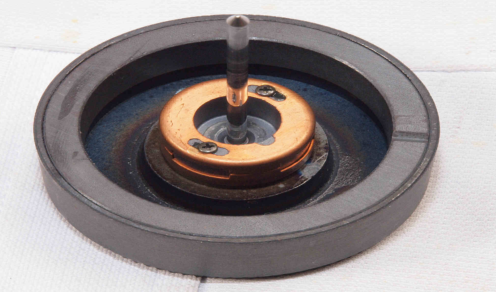 C61. 修理中、モータ回転子上側軸受を上から見る。 油分が無し。