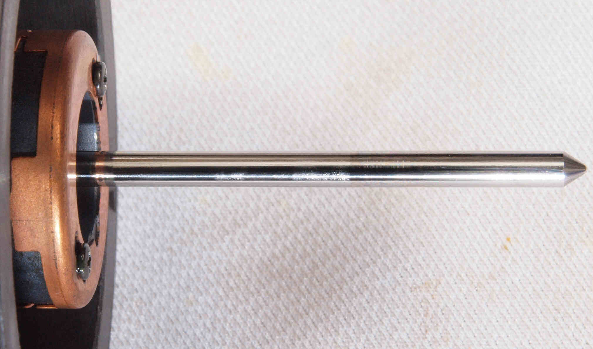 C58. 修理中 モーター回転子(アマチュア)軸、拡大。 オイル切れで少しキズ有り。