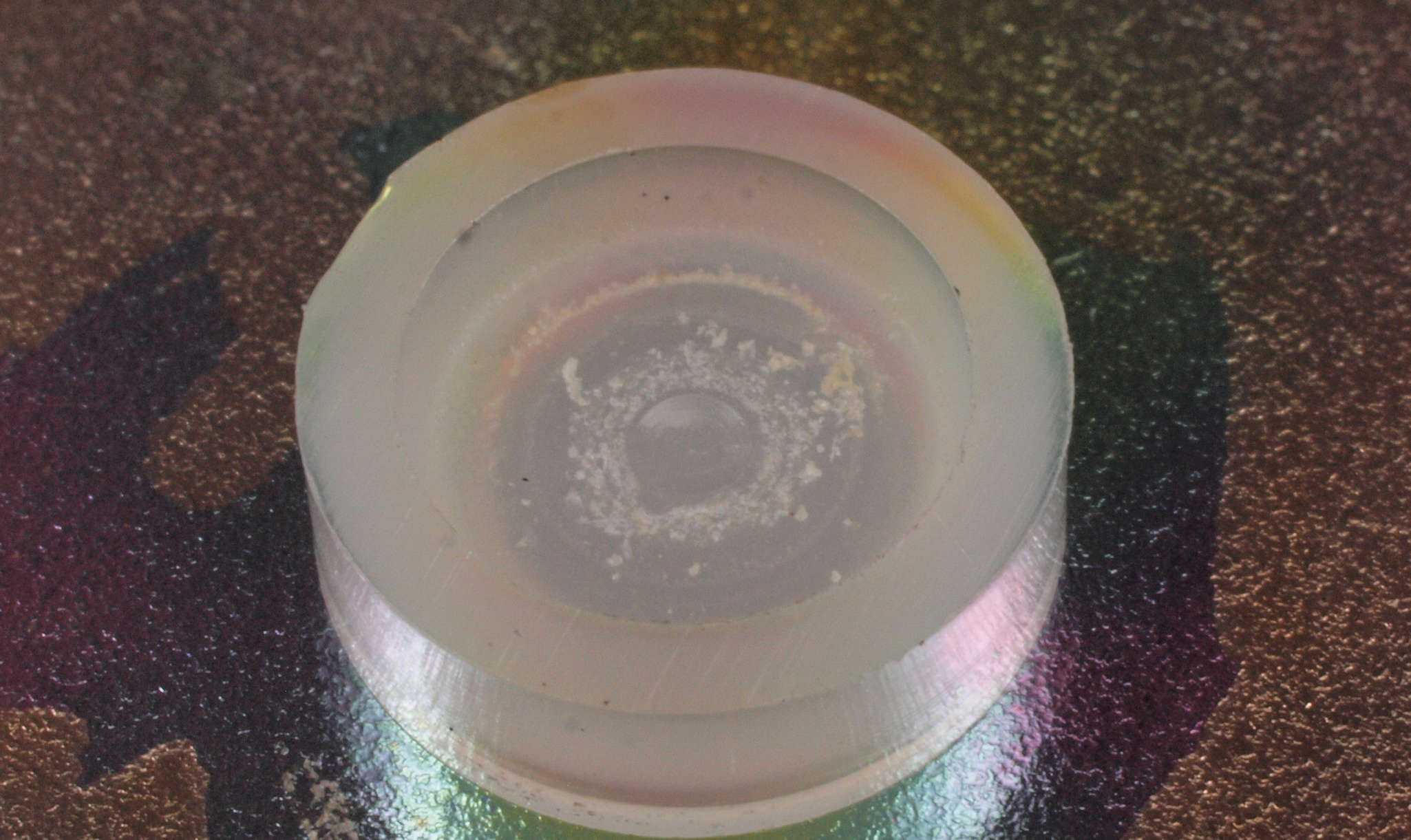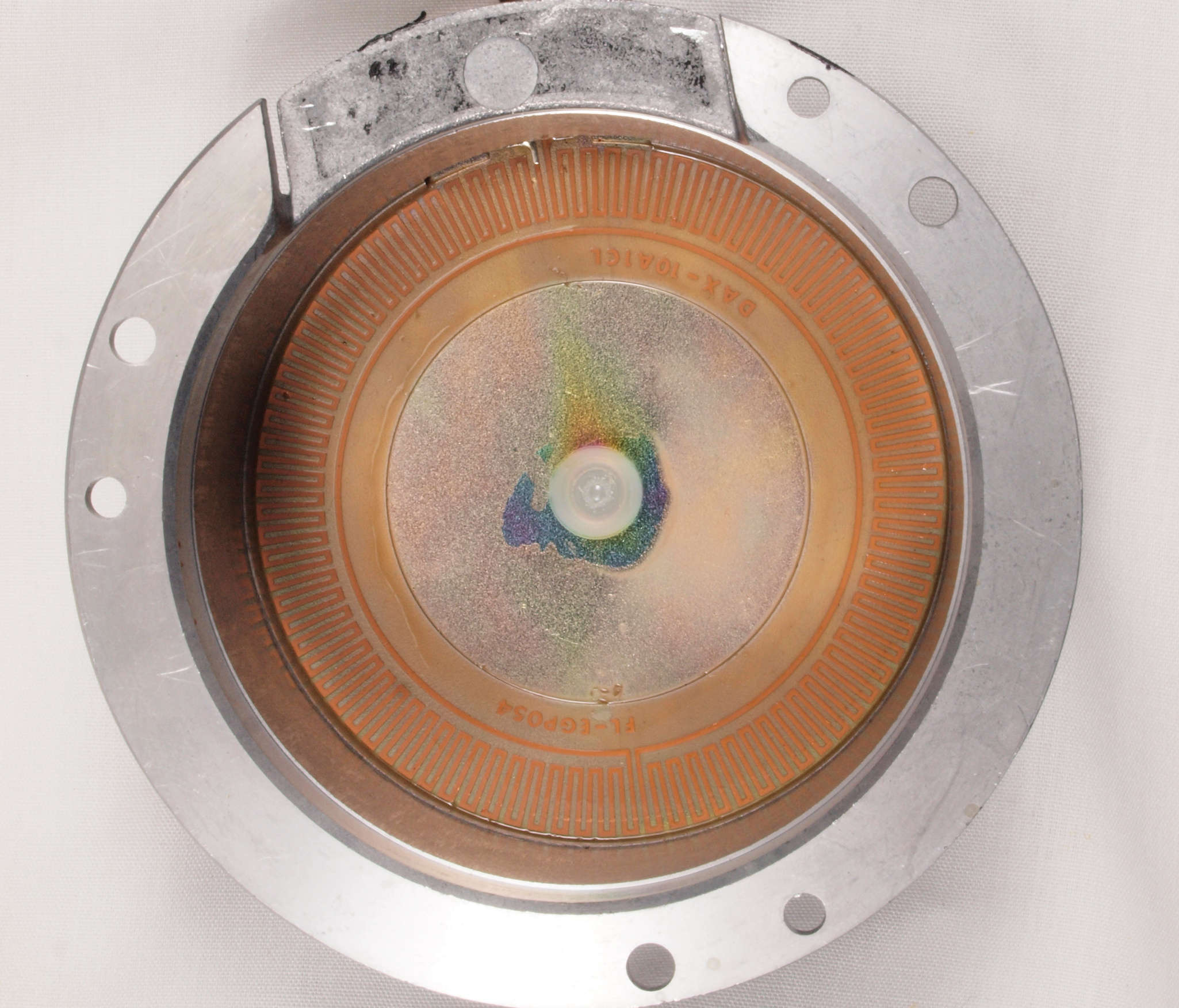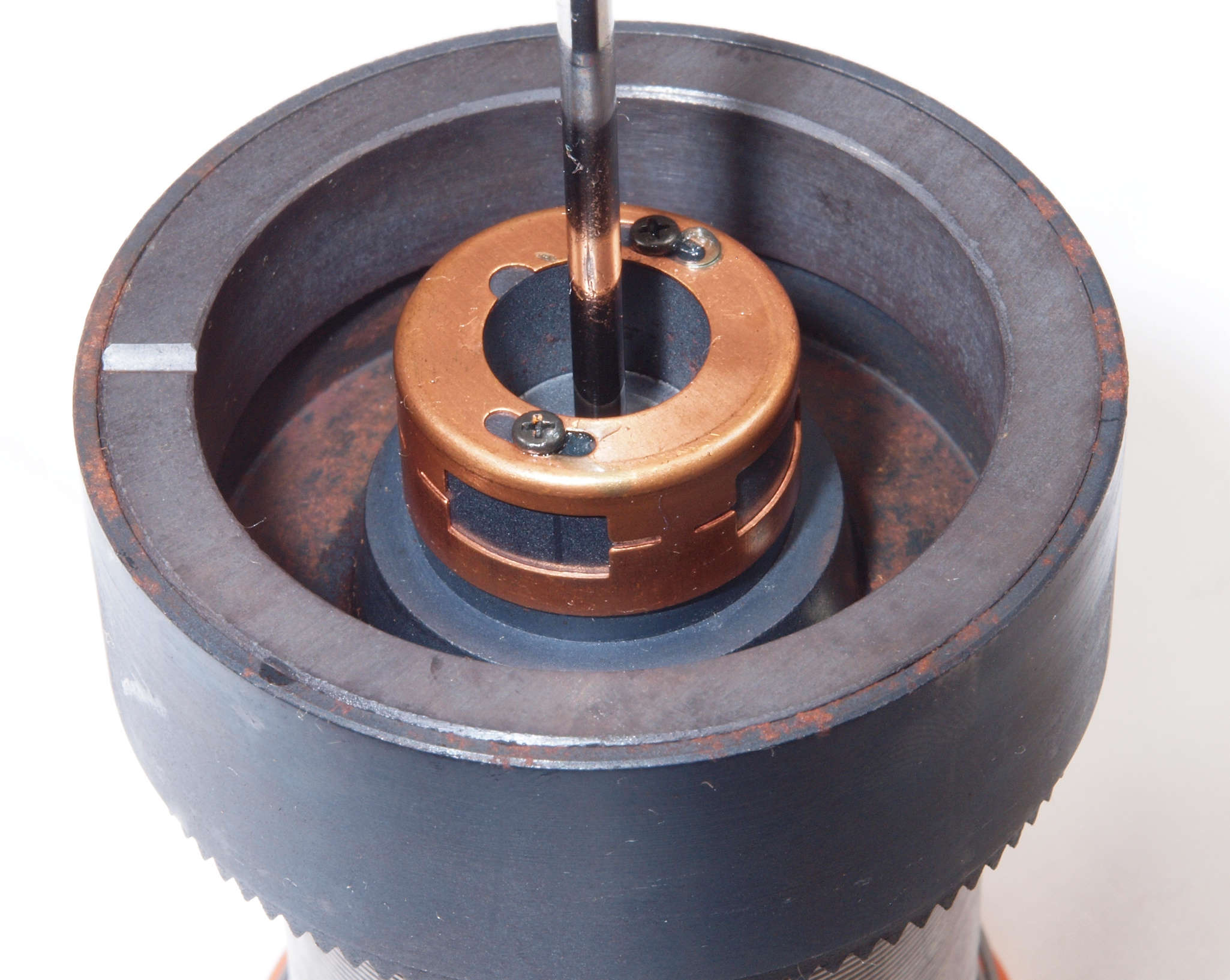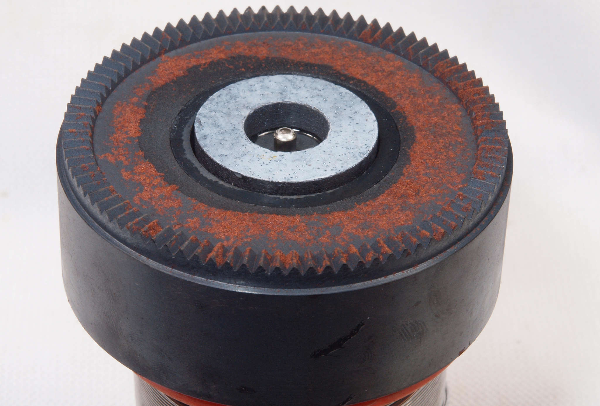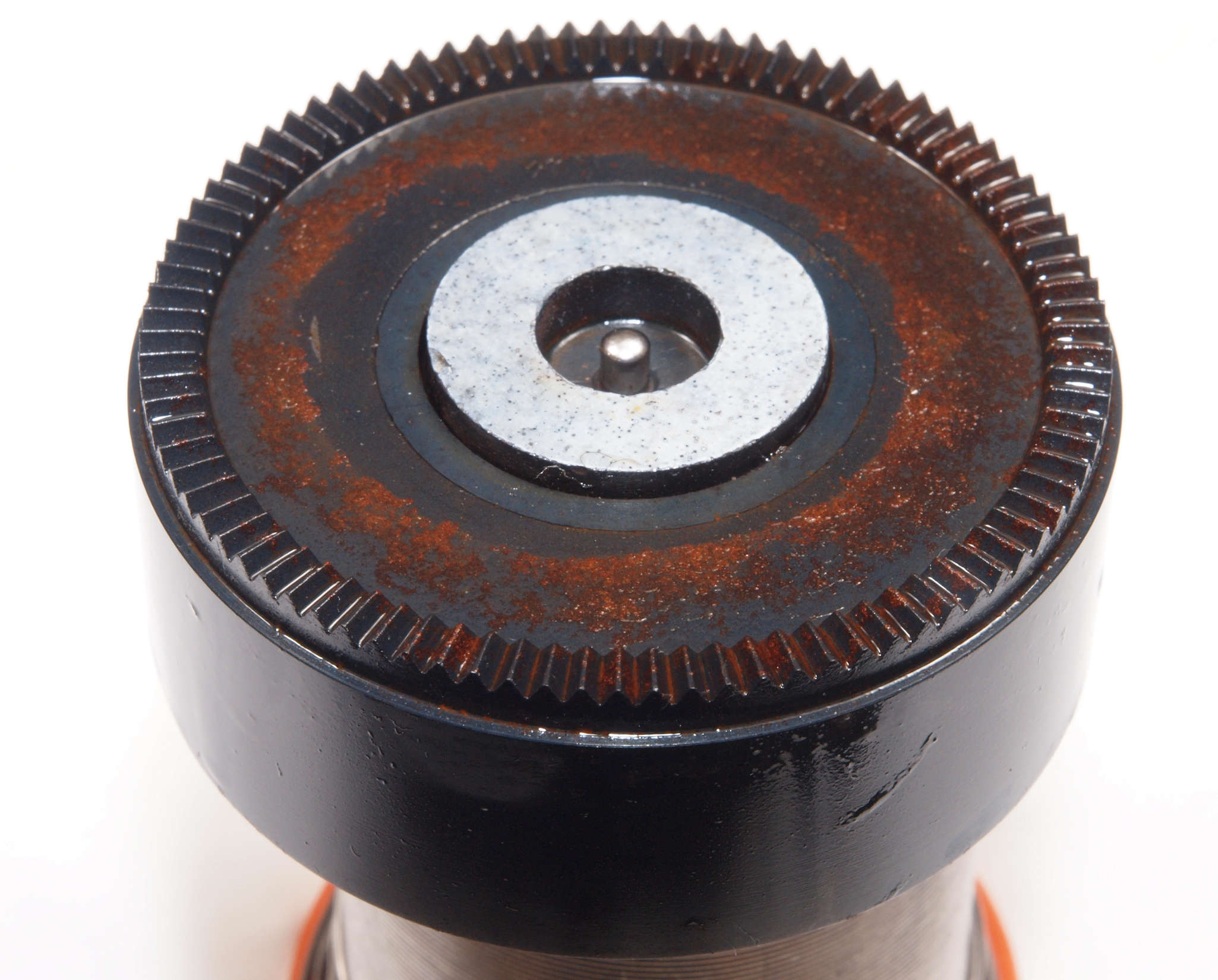 C64. 修理中、モータ回転子上側軸受を下から見る。 油分が無し。