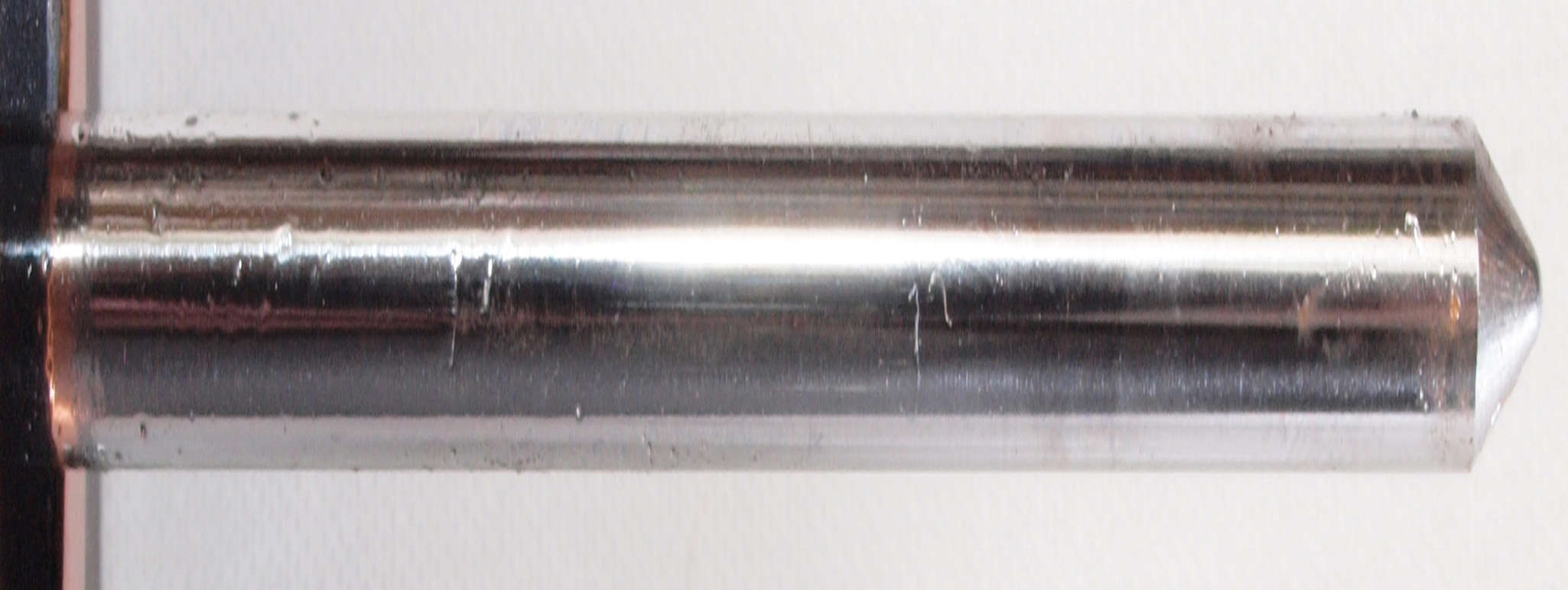 C58. 修理中 モーター回転子(アマチュア)軸、拡大。 オイル切れで少しキズ有り。