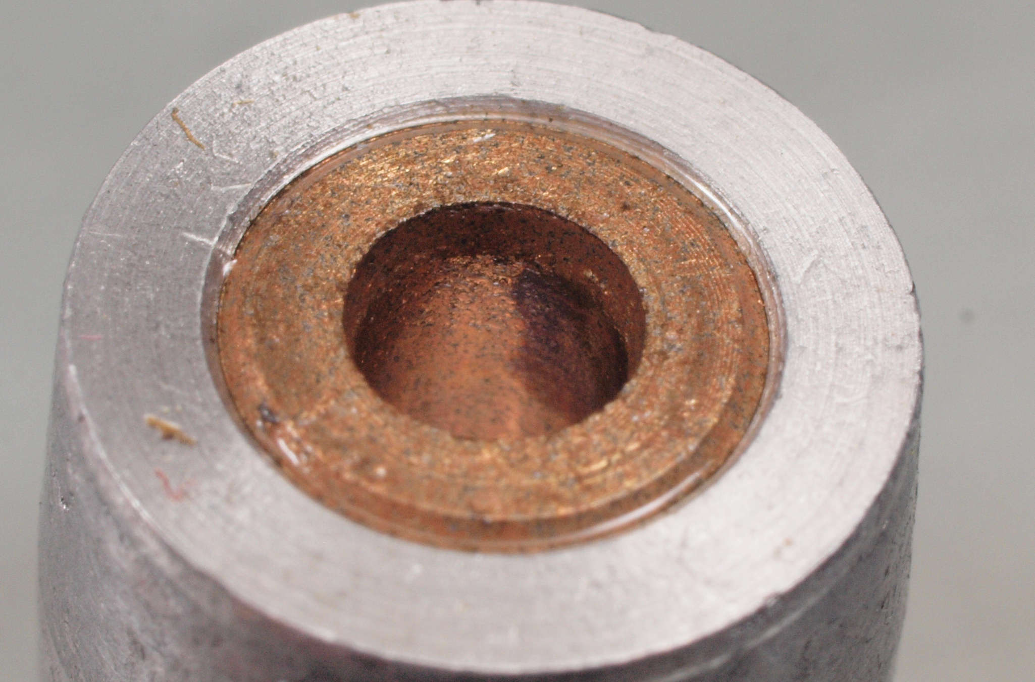 C46. 修理中 モータ回転子軸受。 大部削られている。