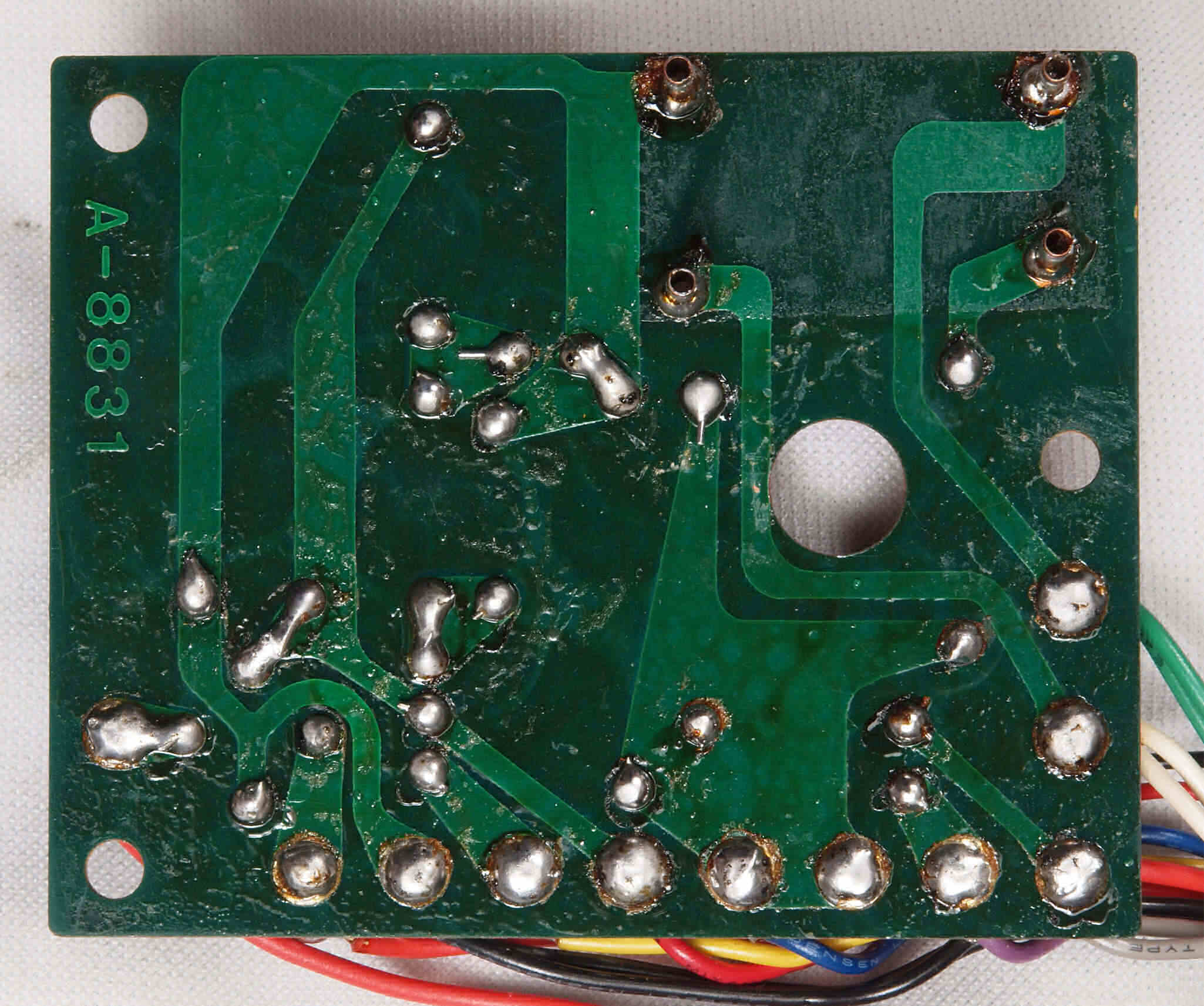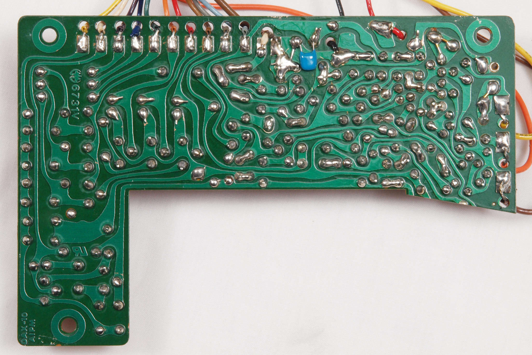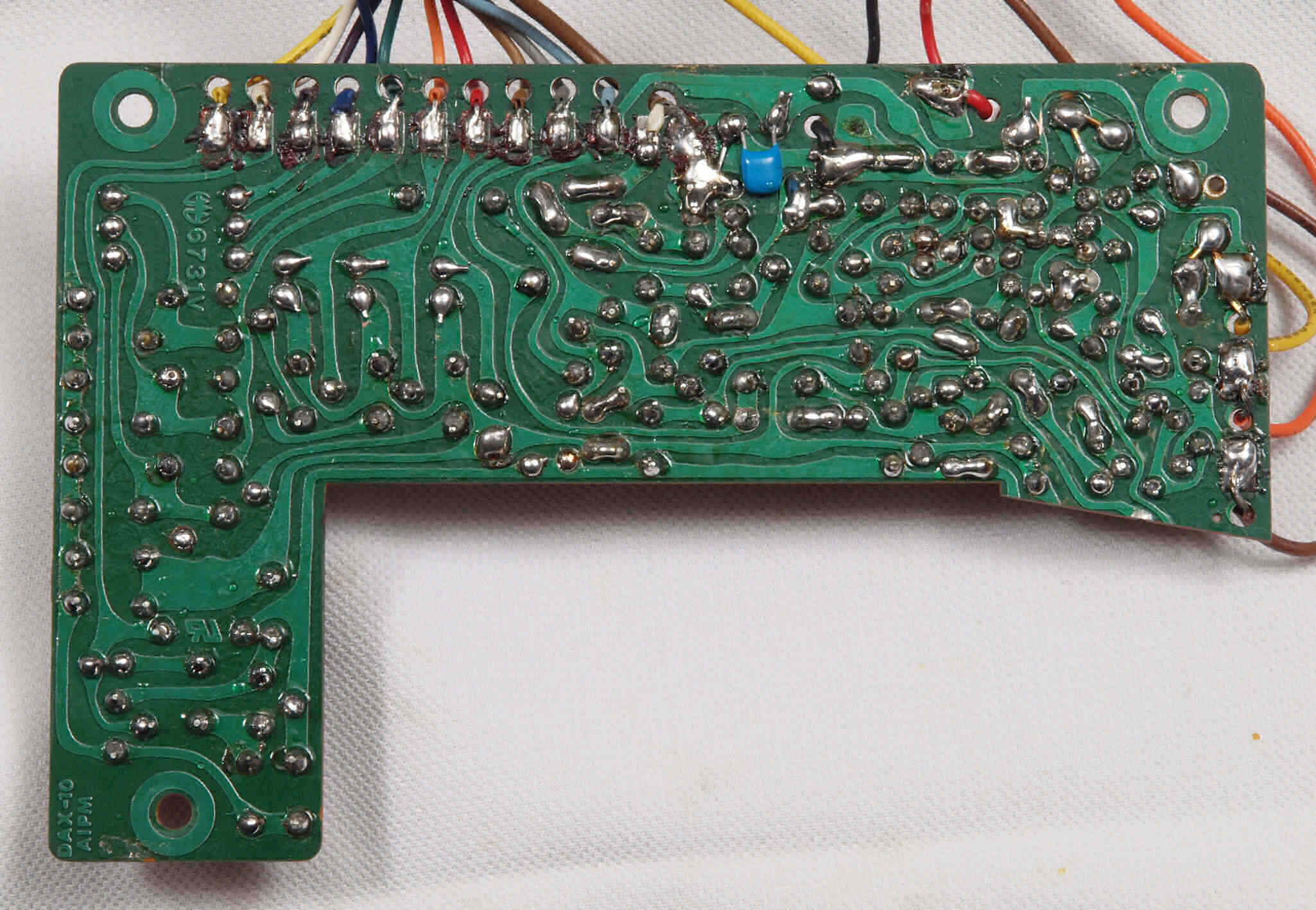 C24. 修理(再半田)後 メイン基板裏。 半田を全部やり直す。フイルムコンデンサー1個追加。