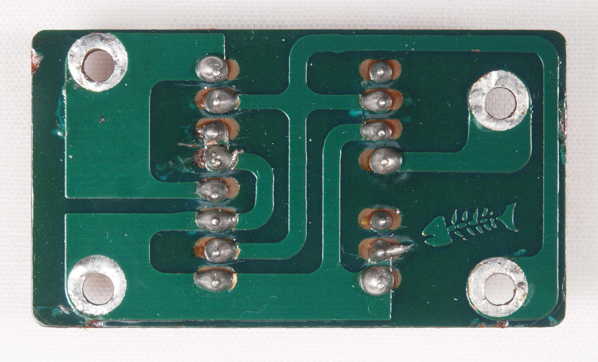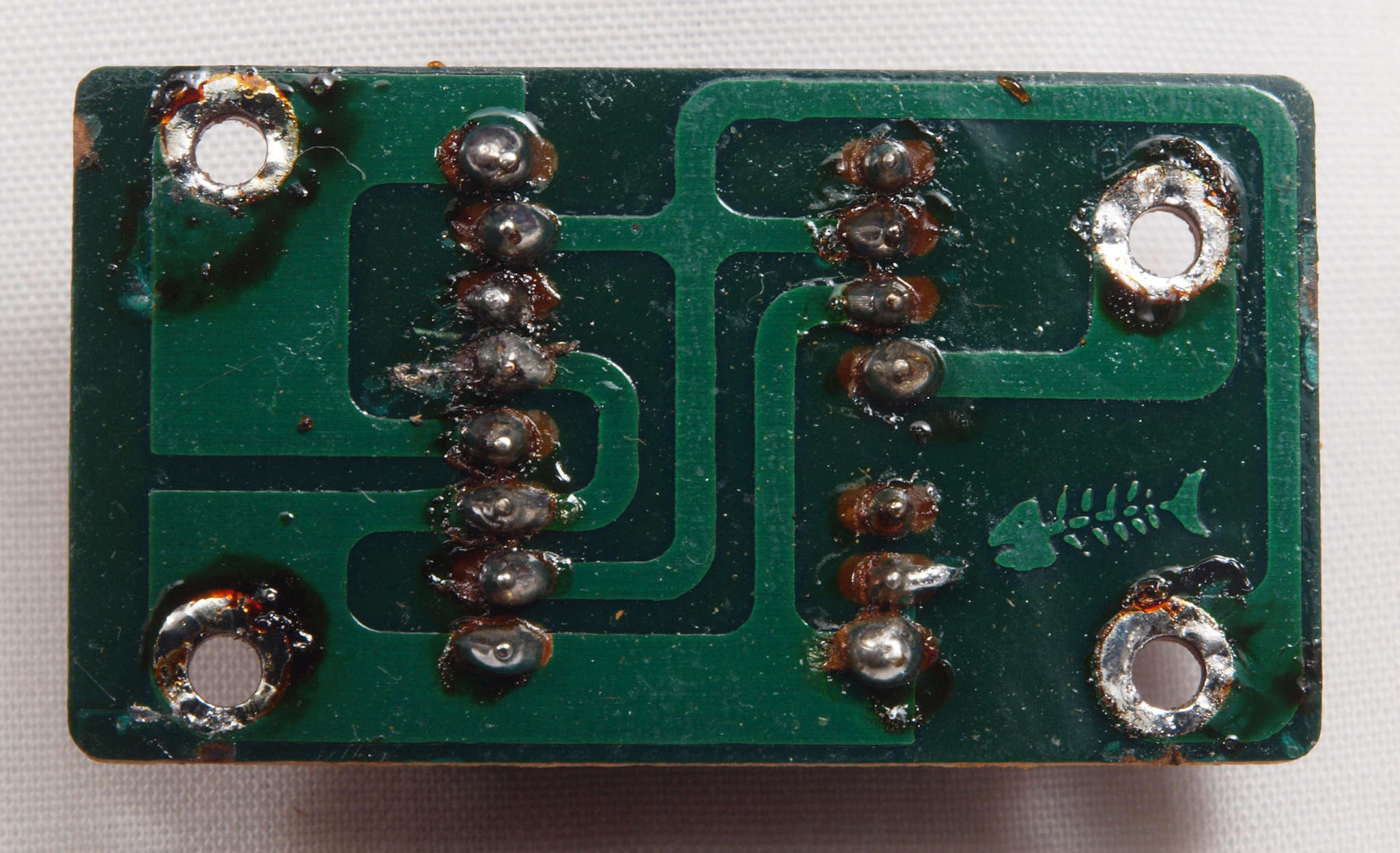 C14. 修理(再半田)後 電源・LED表示基板裏。 半田を全部やり直す。