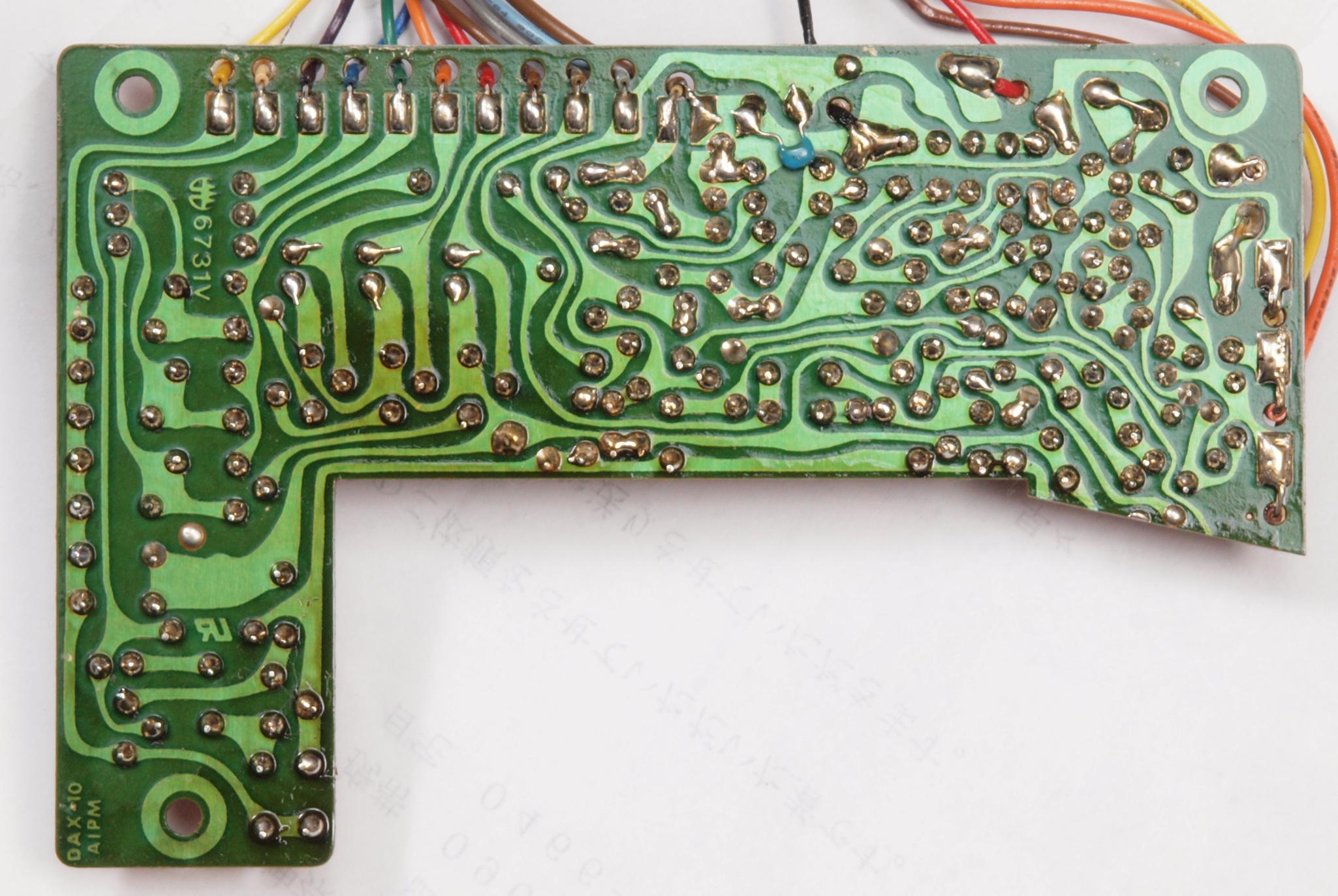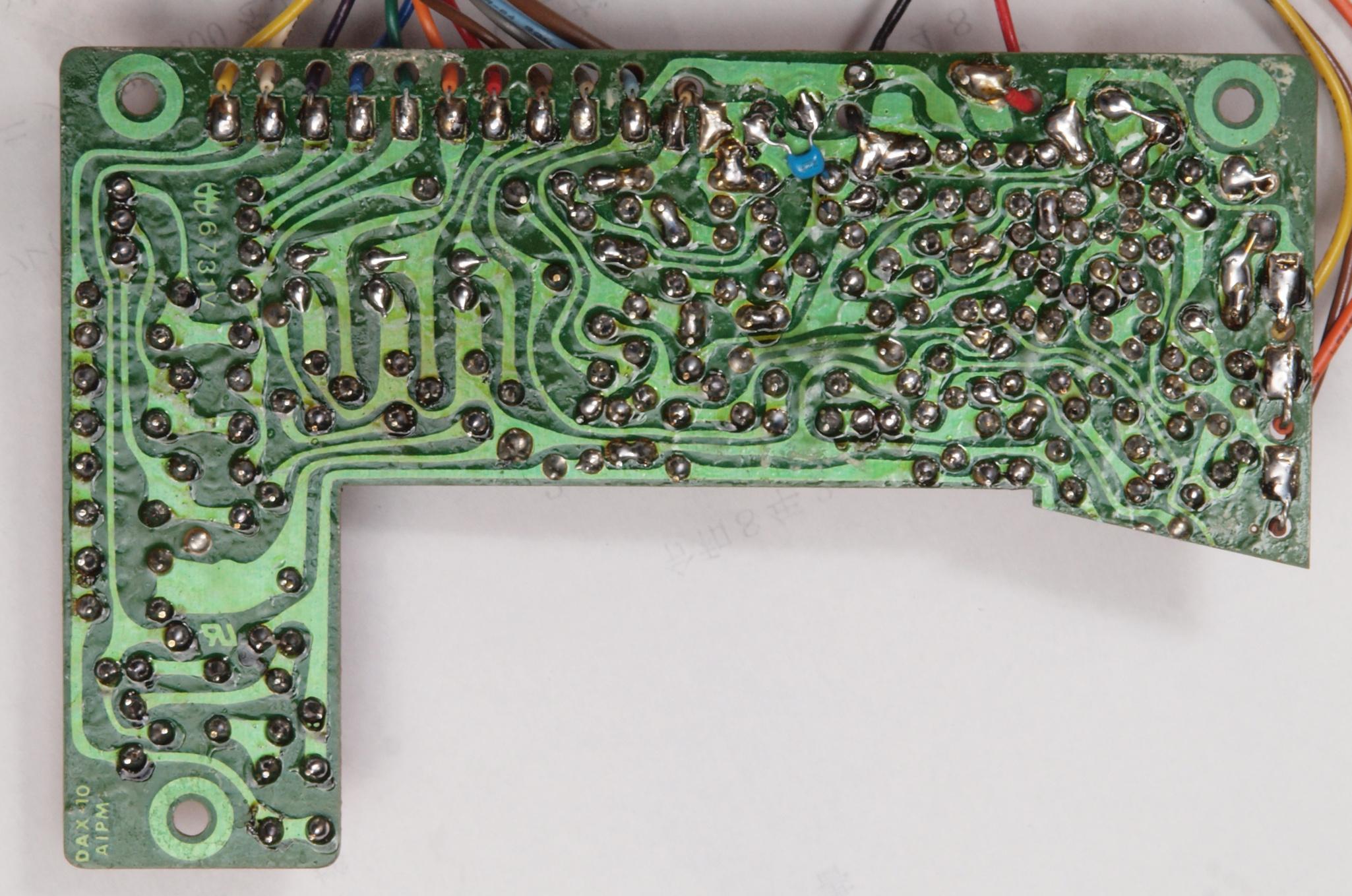 | C34. 修理(再半田)後 メイン基板裏。 半田を全部やり直す。フイルムコンデンサー1個追加。 | ||||||||||||||||||||||||||||||||||||||||