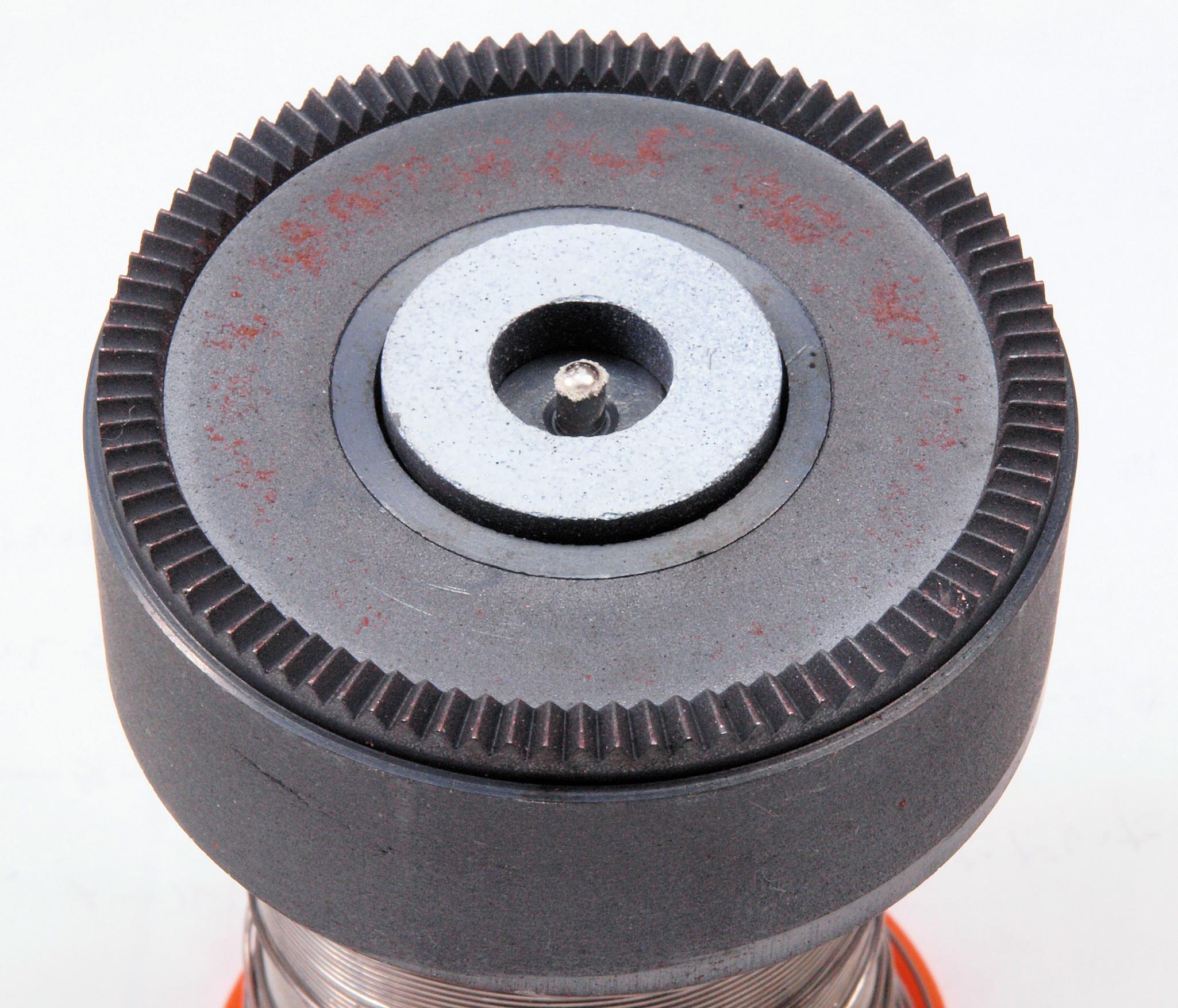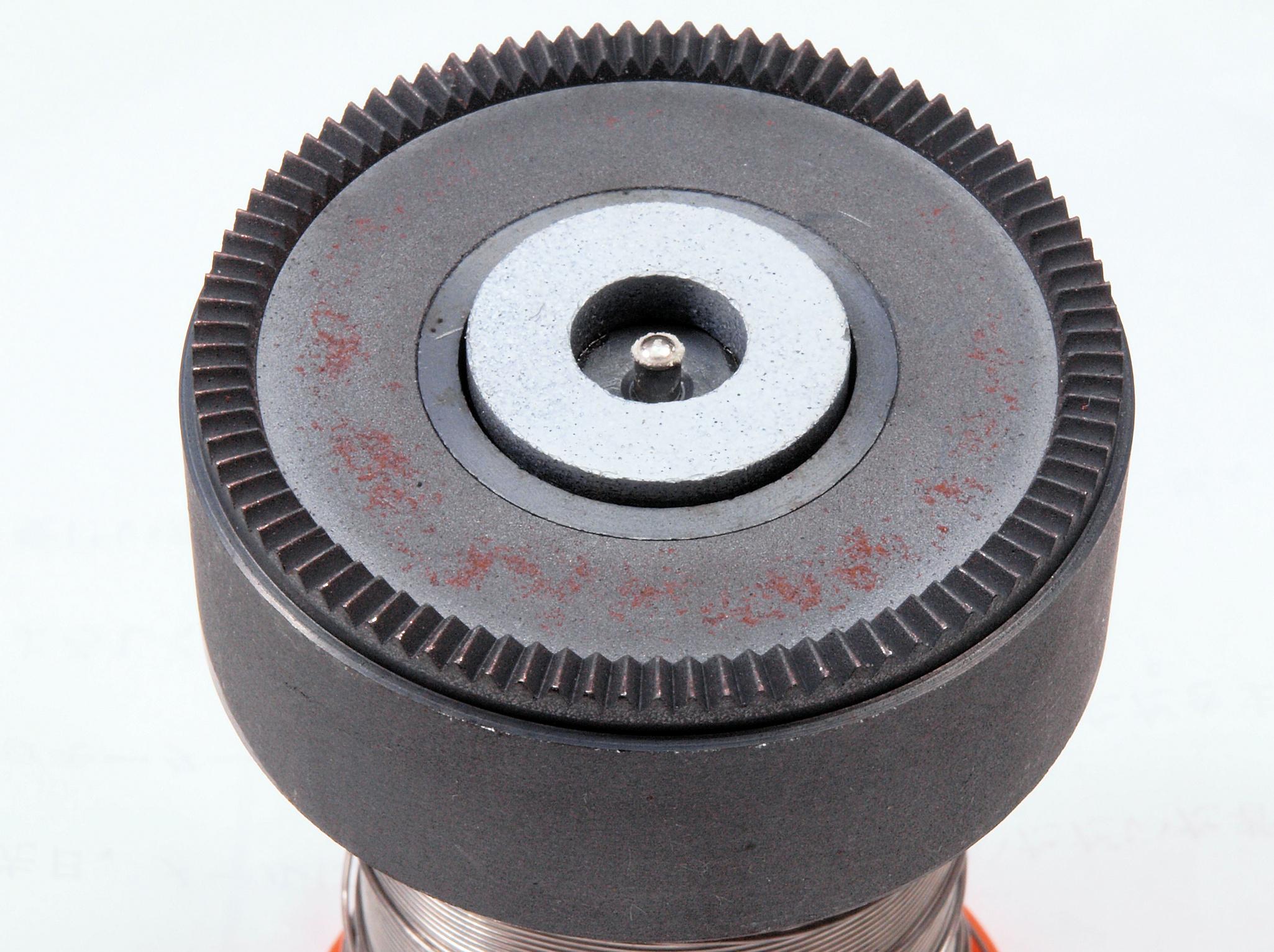 | C5F. 修理中 モーター回転子(アマチュア)軸、拡大。 オイル切れでキズ多し。 | ||||||||||||||||||||||||||||||||||||||||