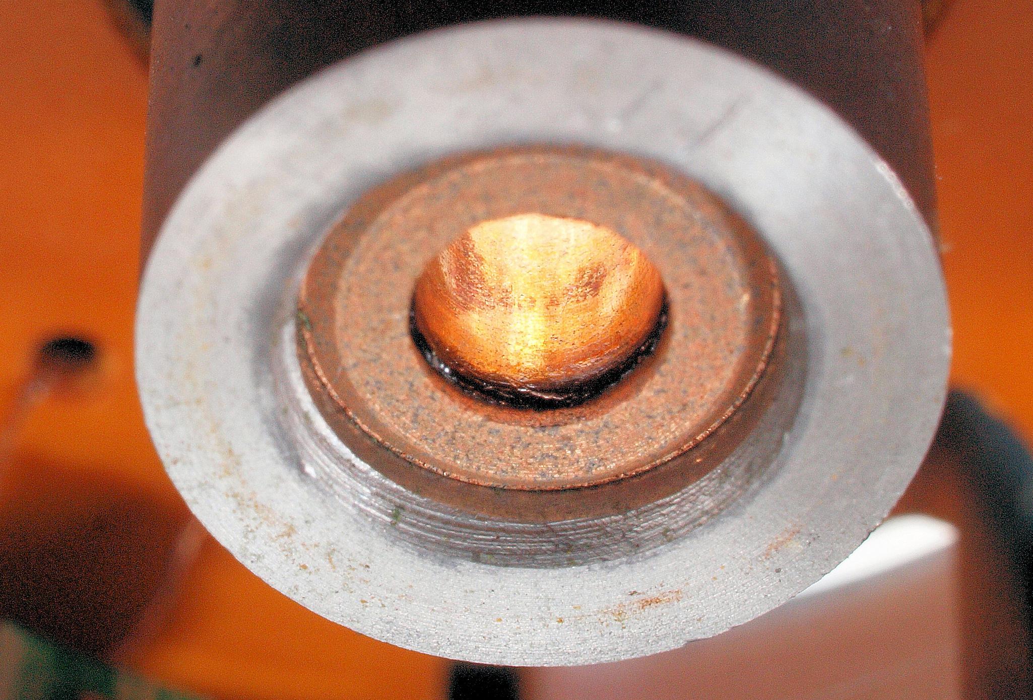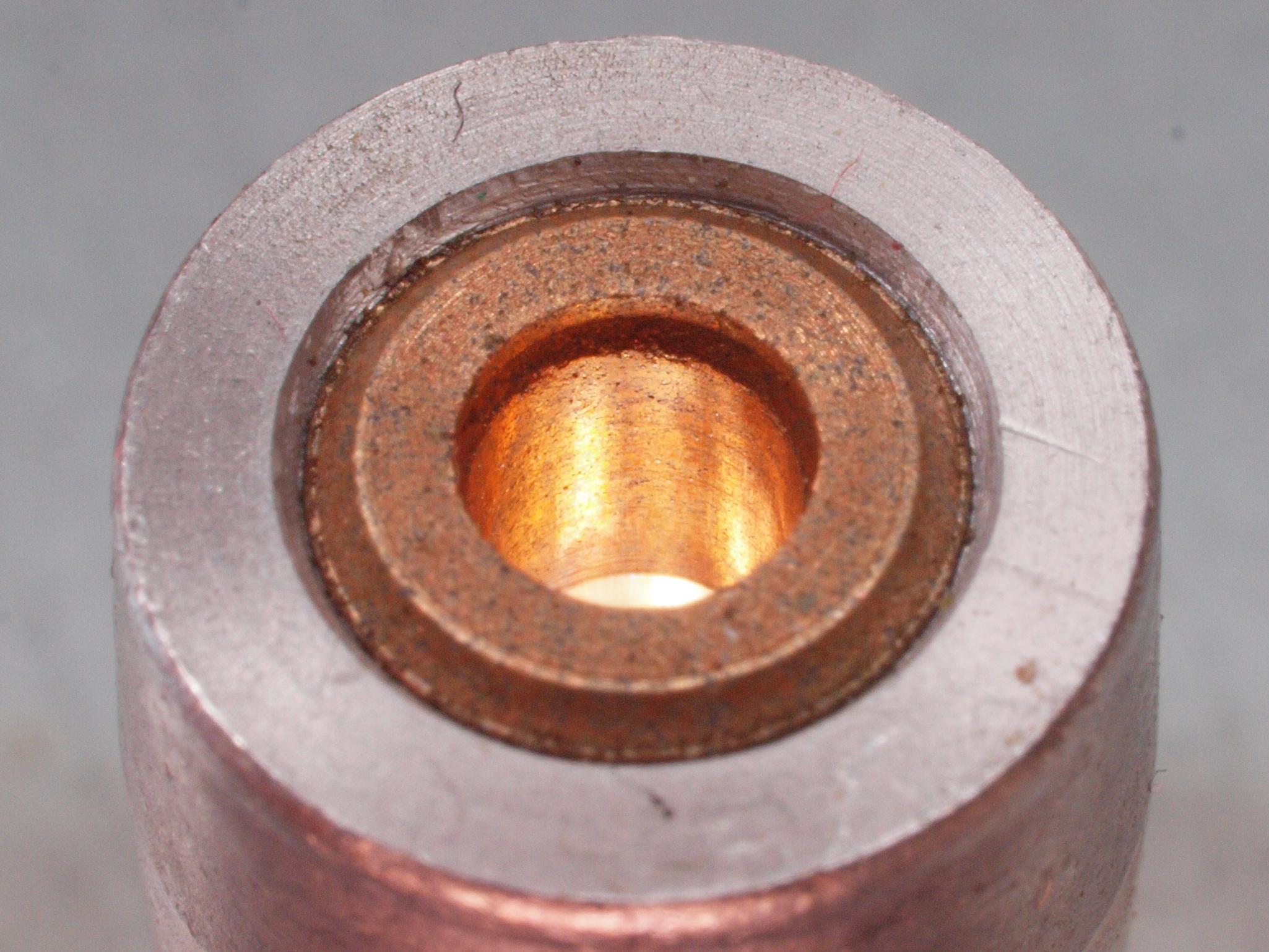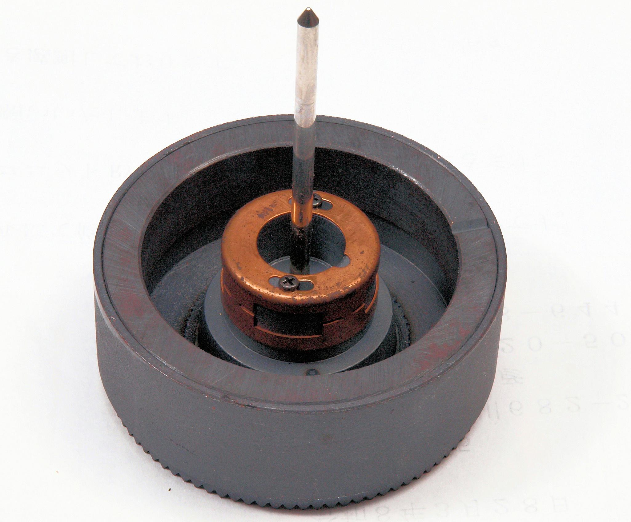 | C65. 修理中、モータ回転子上側軸受を下から見る、反対側。 熱の為、油分が黒化。 | ||||||||||||||||||||||||||||||||||||||||