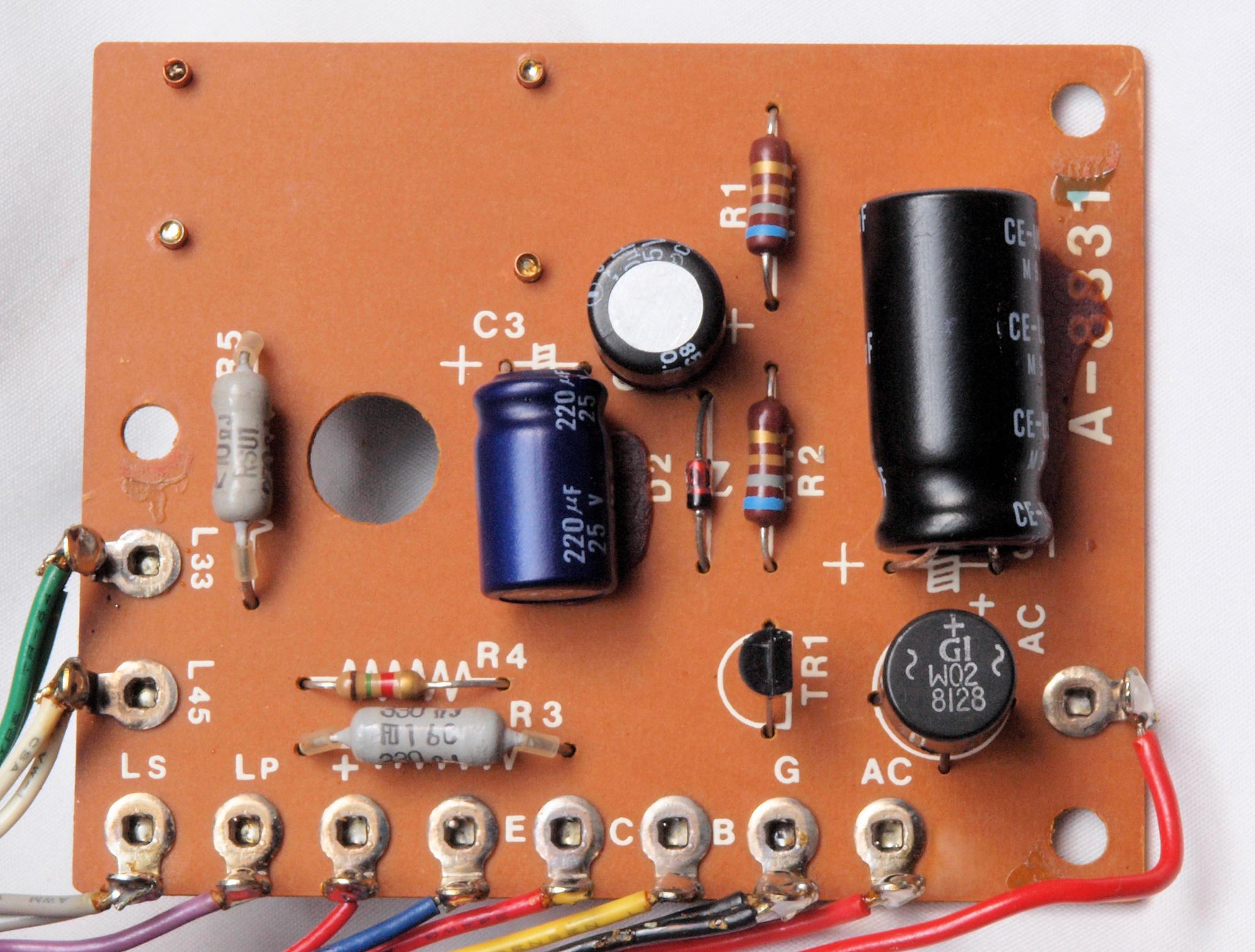 | C32. 修理後 メイン基板。 電解コンデンサー8個、半固定VR2個交換 | ||||||||||||||||||||||||||||||||||||||||