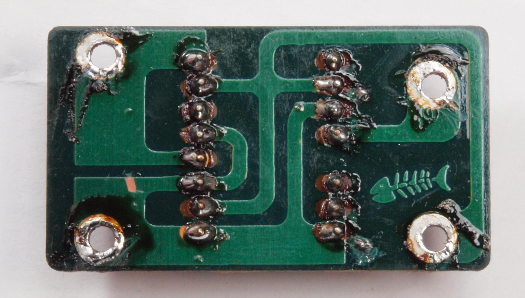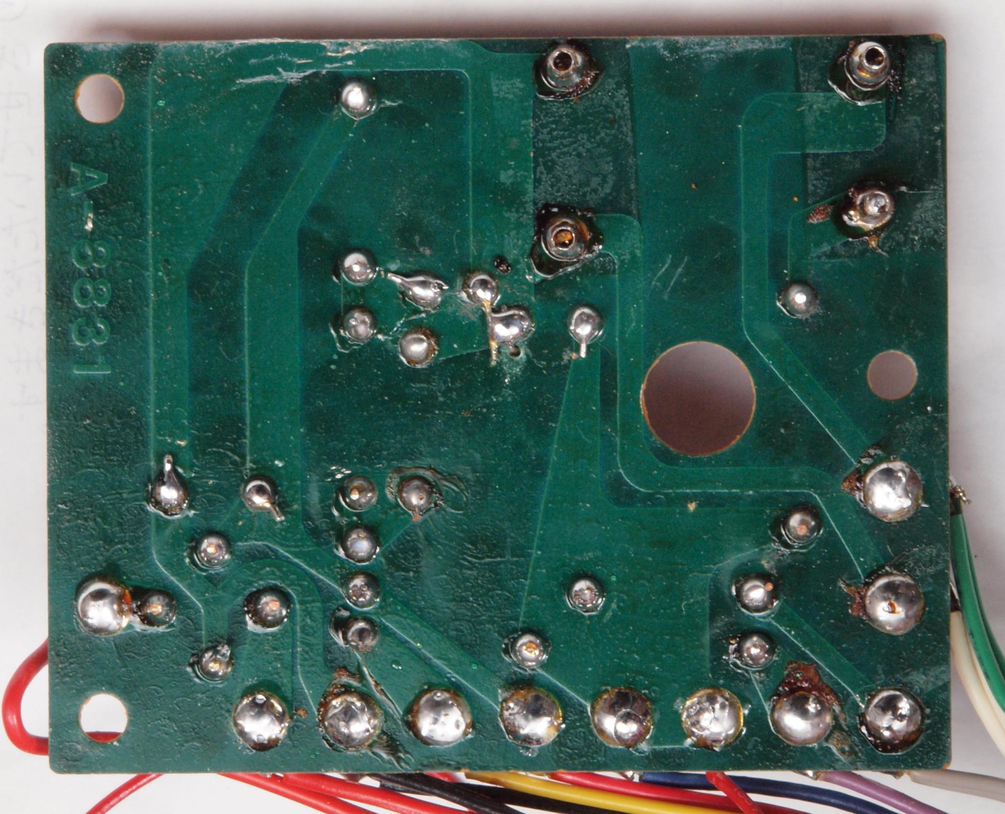 | C16. 修理(再半田)後 電源・LED表示基板裏。 半田を全部やり直す。 | ||||||||||||||||||||||||||||||||||||||||