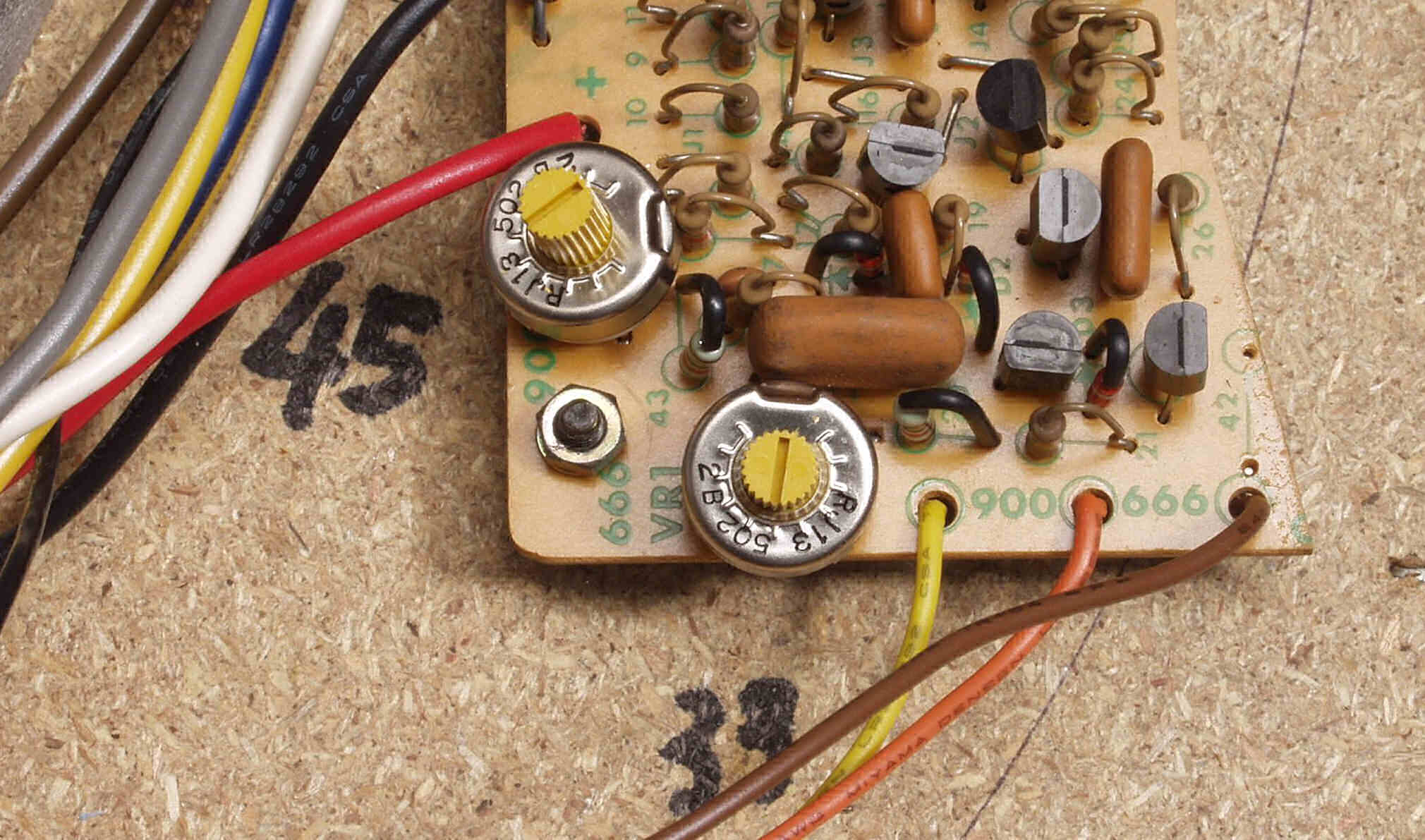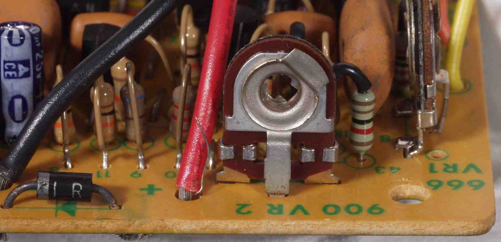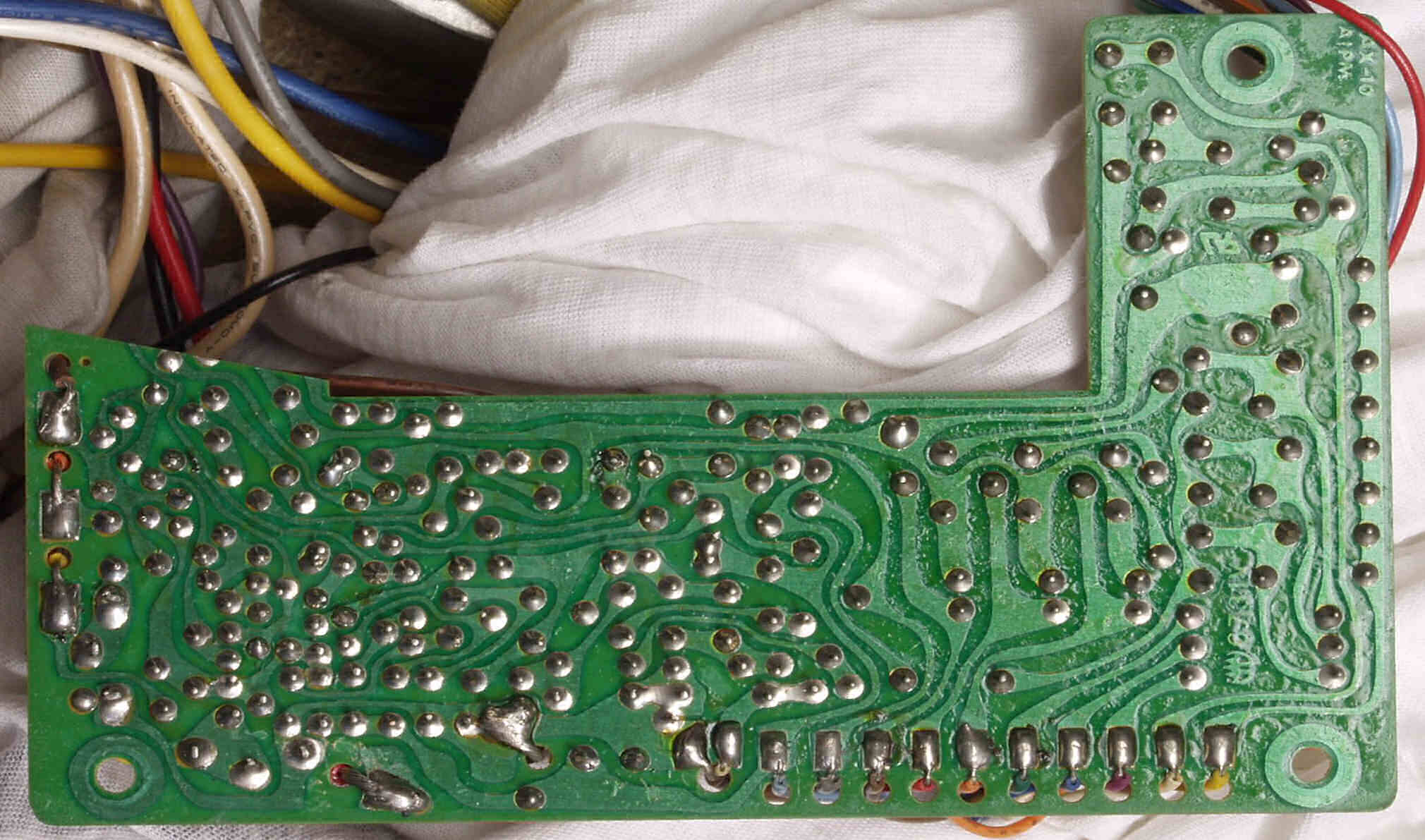 C1A1. 修理前 制御基板 配線の半田付けが雑、これがVRに当たれば!