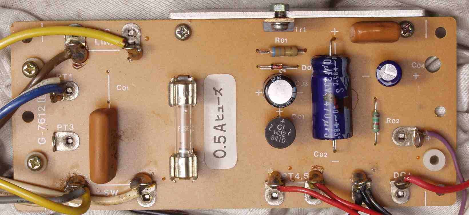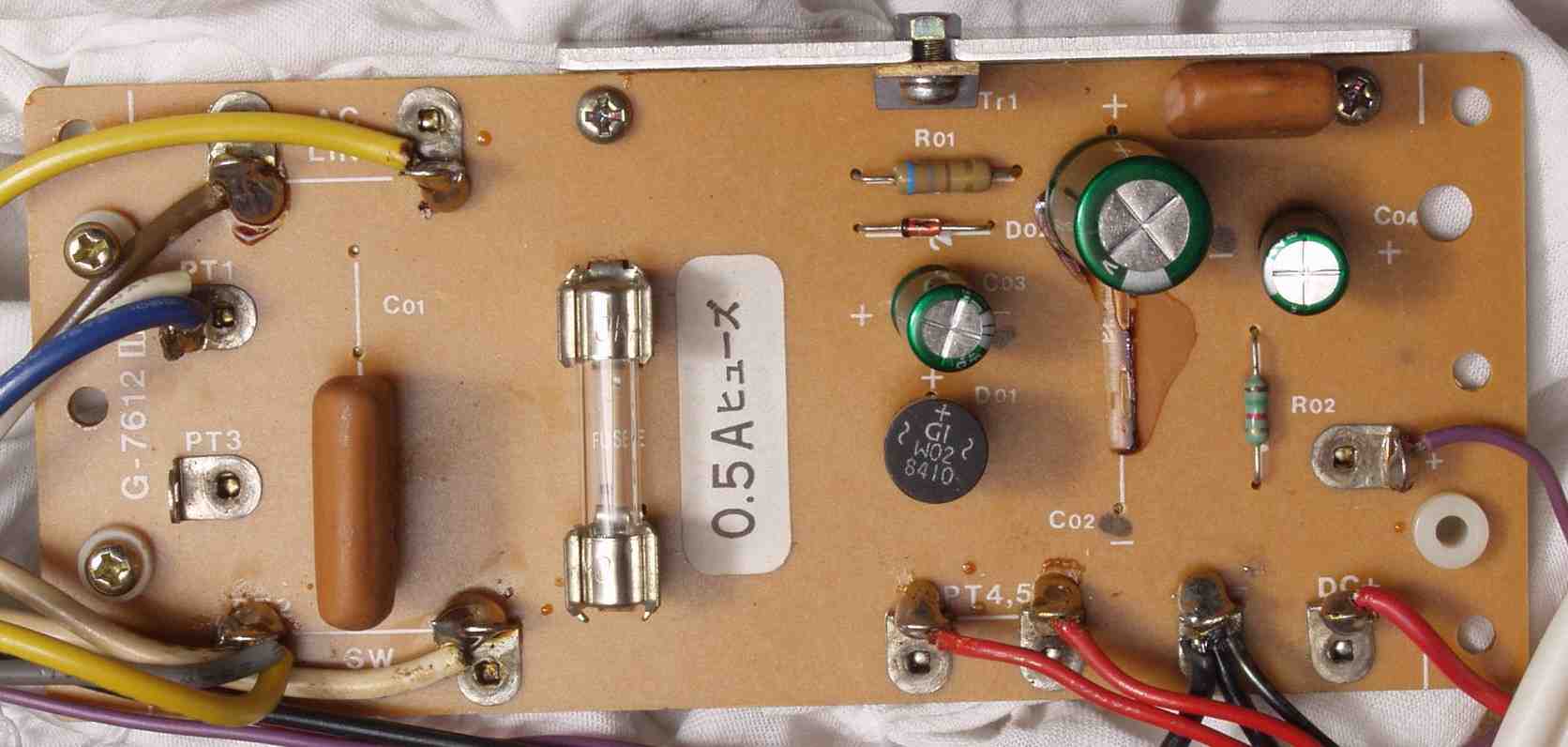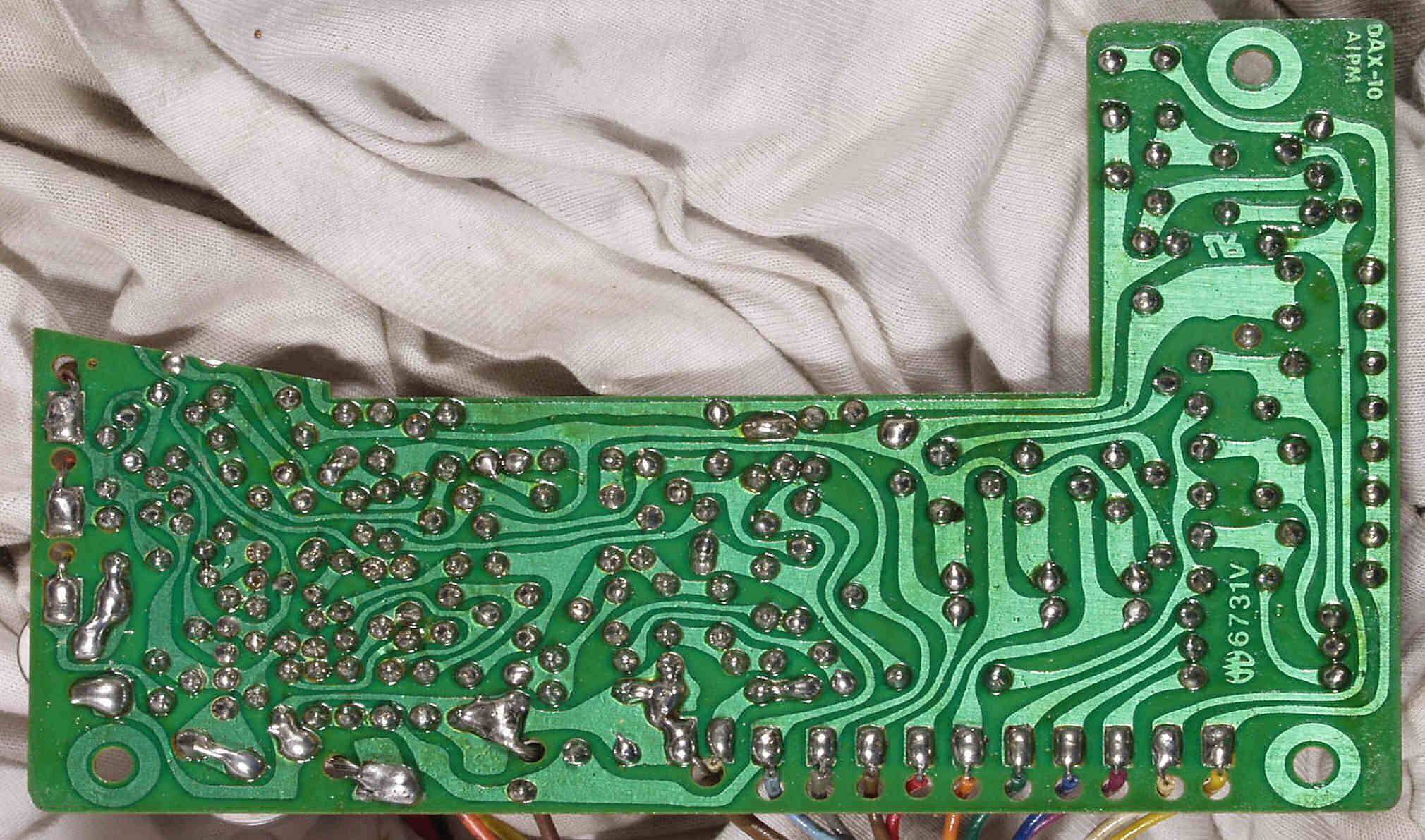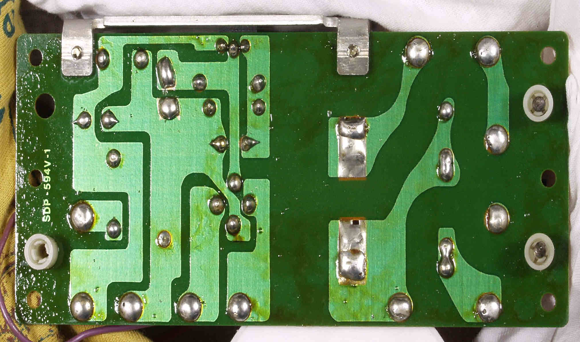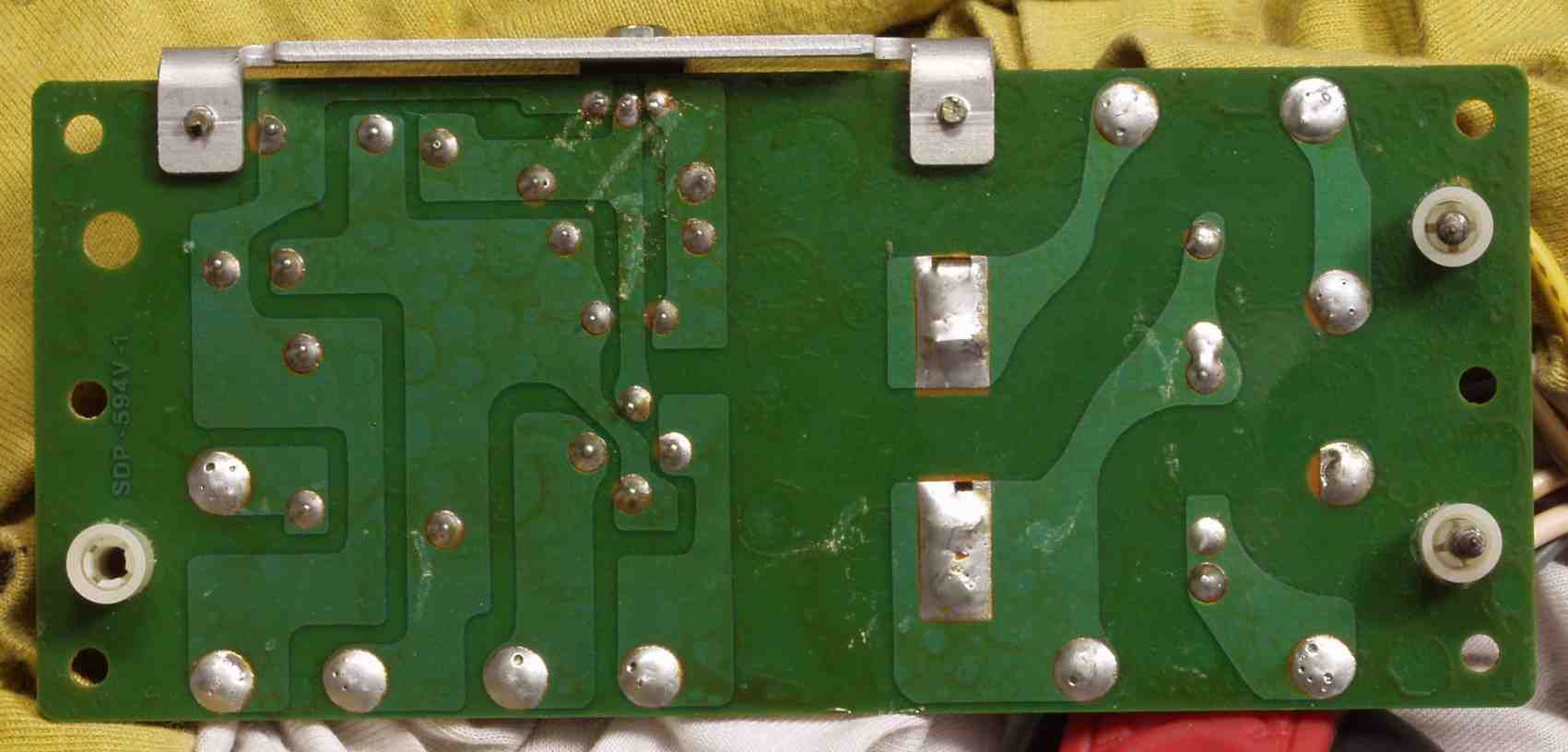 C2D. 修理(半田補正)後 電源基板裏+。余分なフラックスを落として、コート液を塗る。