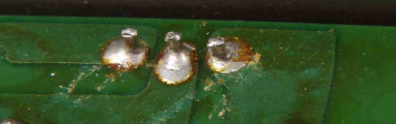 C1D. 修理(半田補正)後 制御基板裏+。余分なフラックスを落として、コート液を塗る。