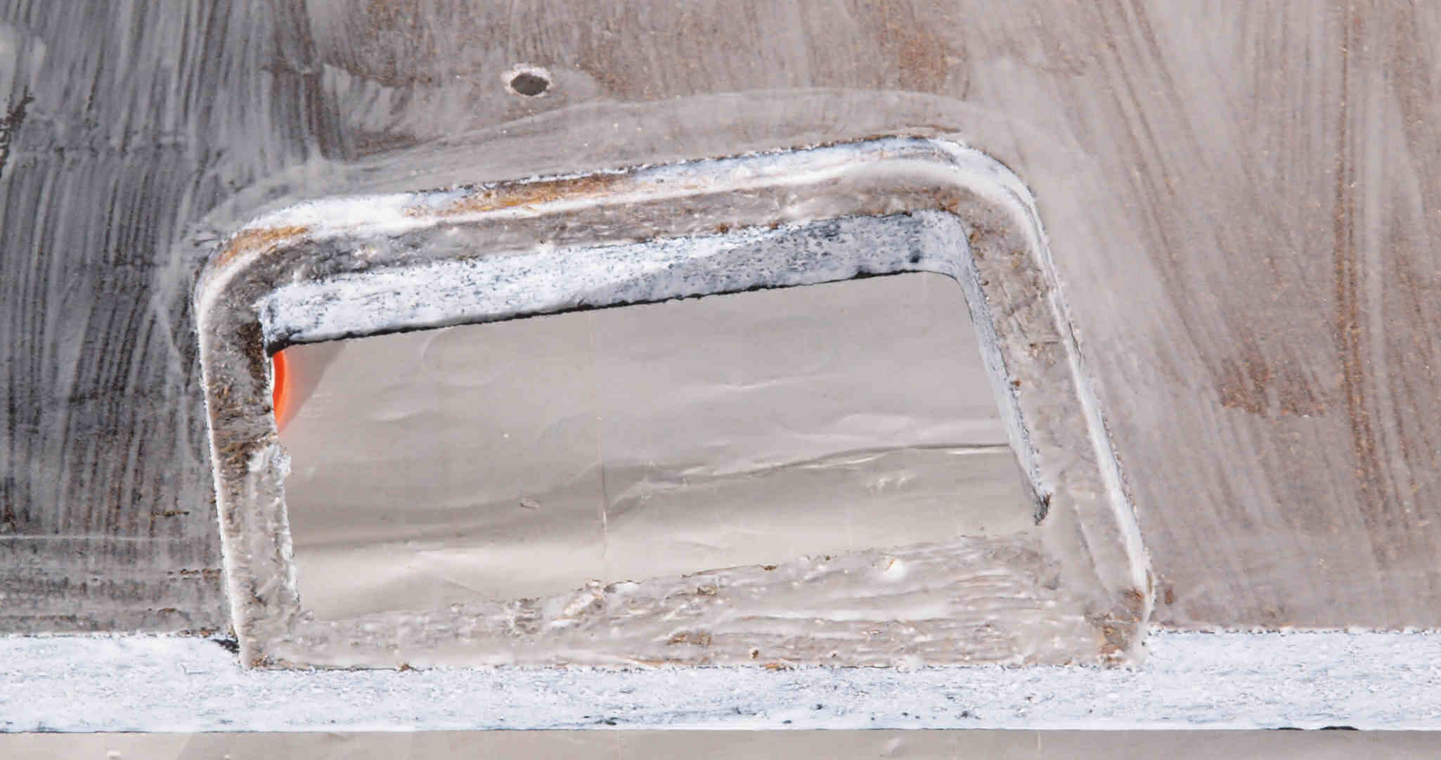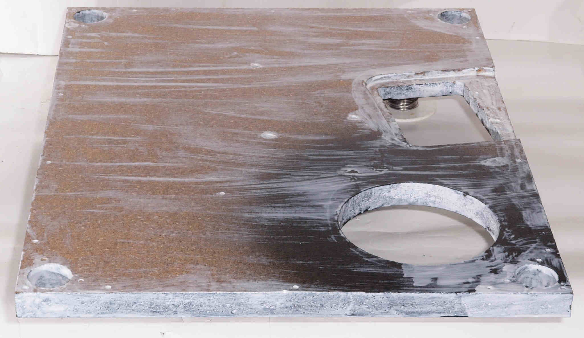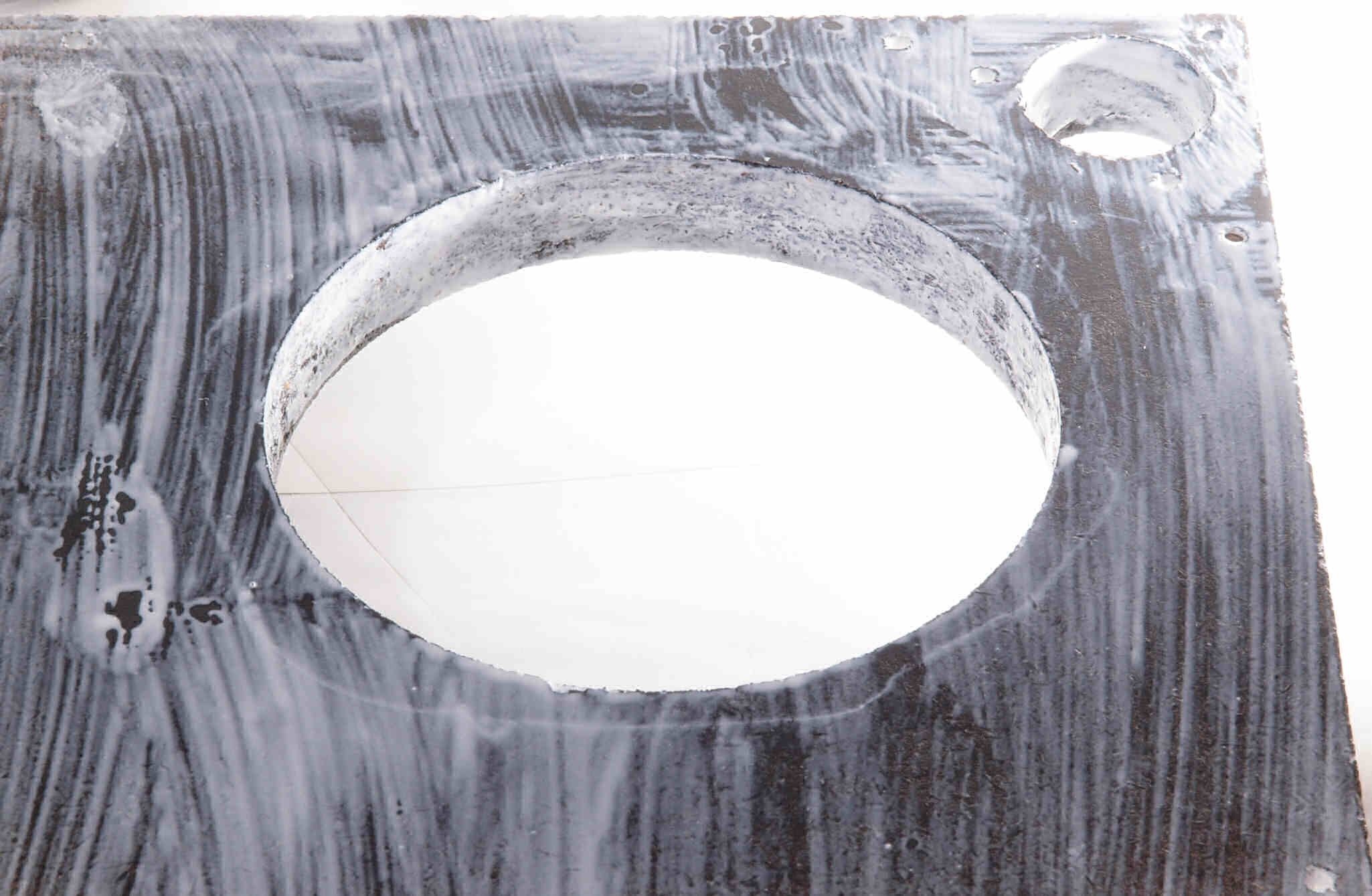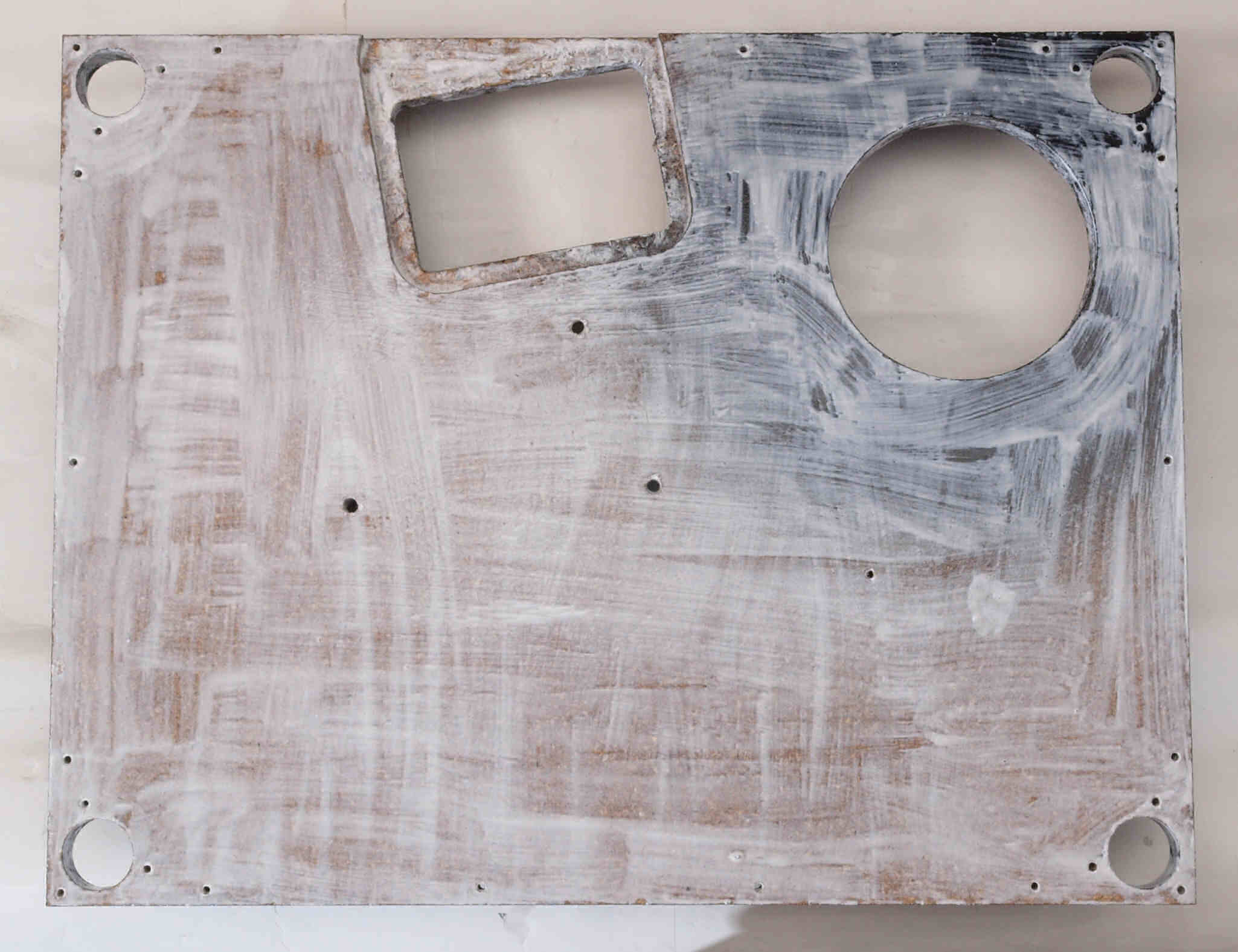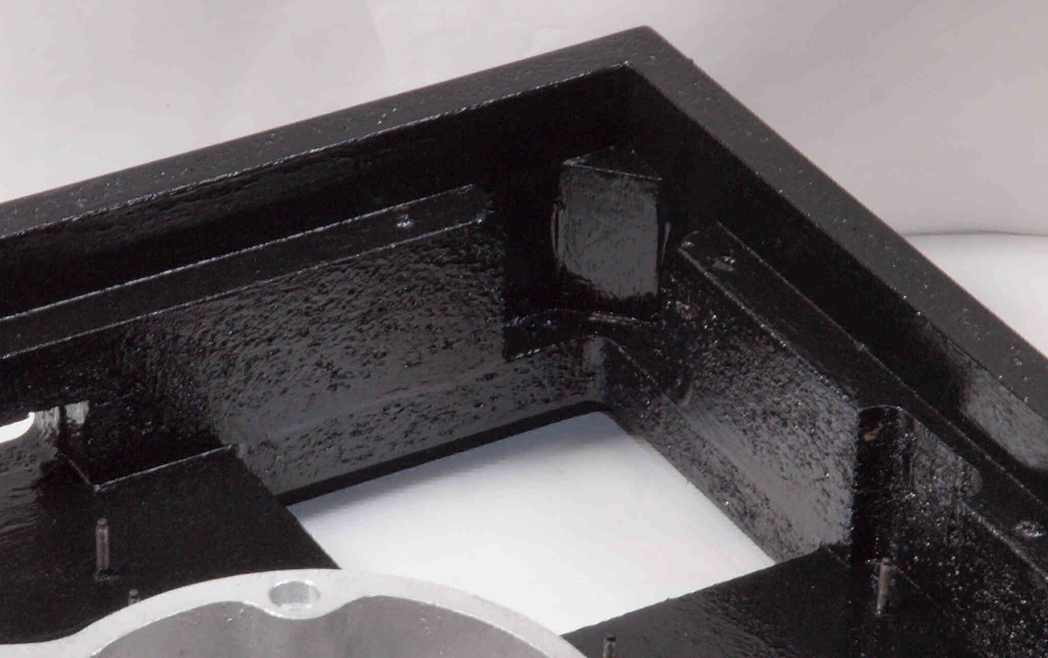 トランスカバーを取付ける所、反対側。キズを消す為と割れを防ぐのに、ペンキを塗る。
