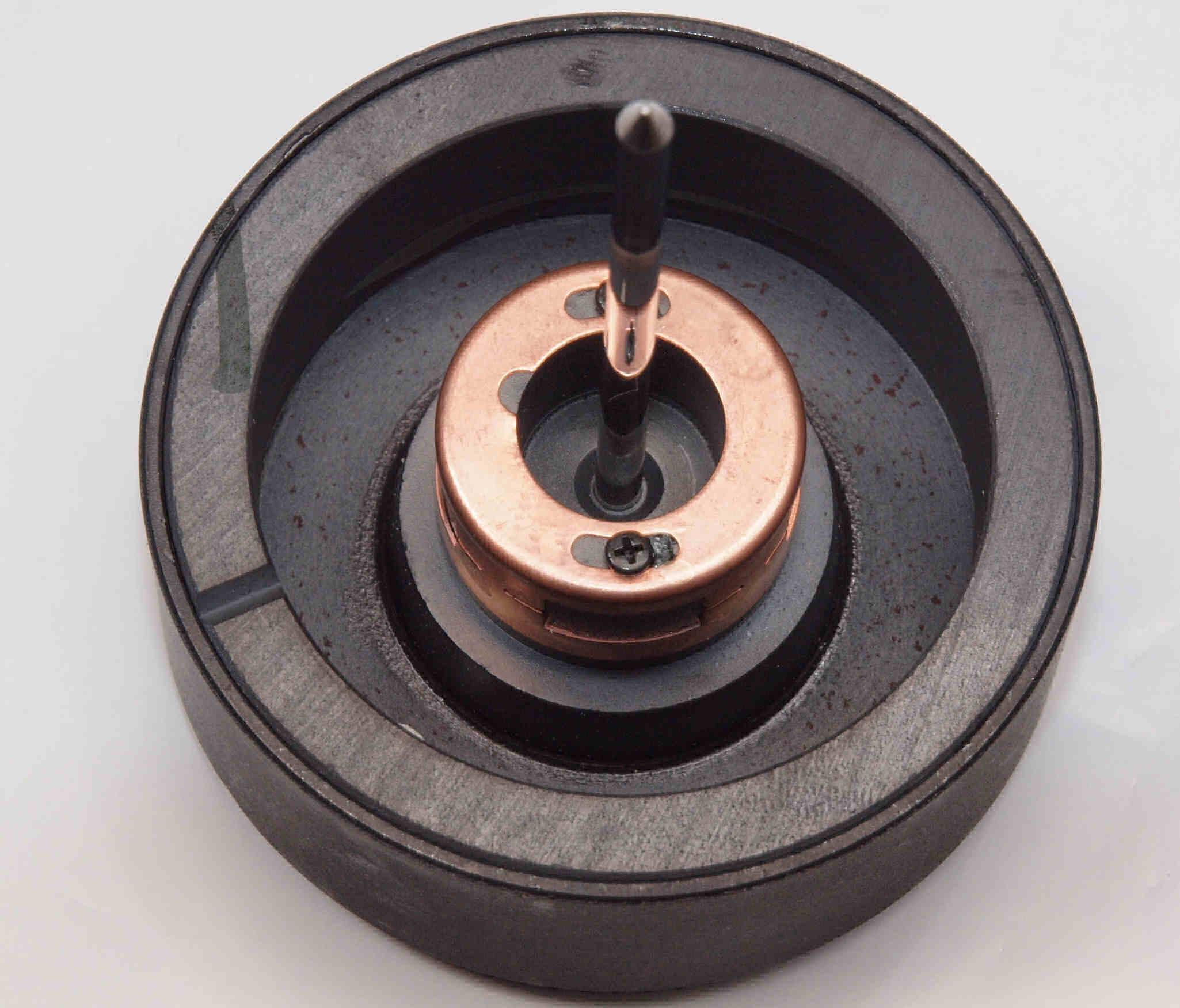 C64. 修理後 モーター回転子、軸側。 錆びを落とし、CRCを浸透する。