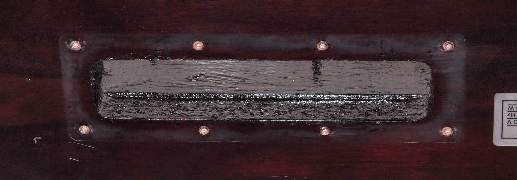 W6C. 修理(塗装)後 底板裏側、 左から。 さらに、キズを消す為と割れを防ぐのに、ペンキを塗る。
